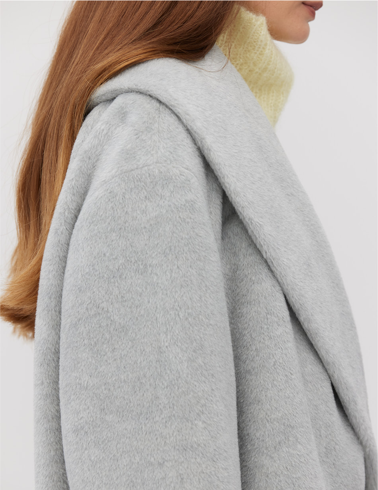 În acest sezon, introducem pentru prima dată o țesătură care combină 70% alpaca baby Suri cu 30% lână de miel virgină. Aceste două fibre prețioase, recoltate la cea mai moale calitate, creează o țesătură cu o atingere perfectă, un luciu mătăsos și o senzație excepțional de ușoară. Datorită unui finisaj inovator, am creat paltoane Suri în nuanțe strălucitoare și strălucitoare - de la roz pudrat la bej decolorat și gri pal.