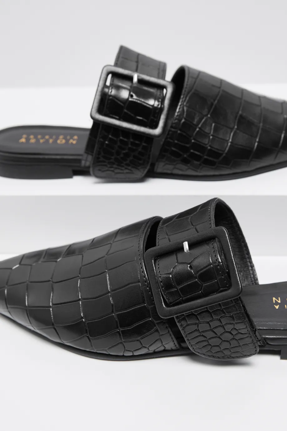 Saboți din piele naturală cu curea reglabilă