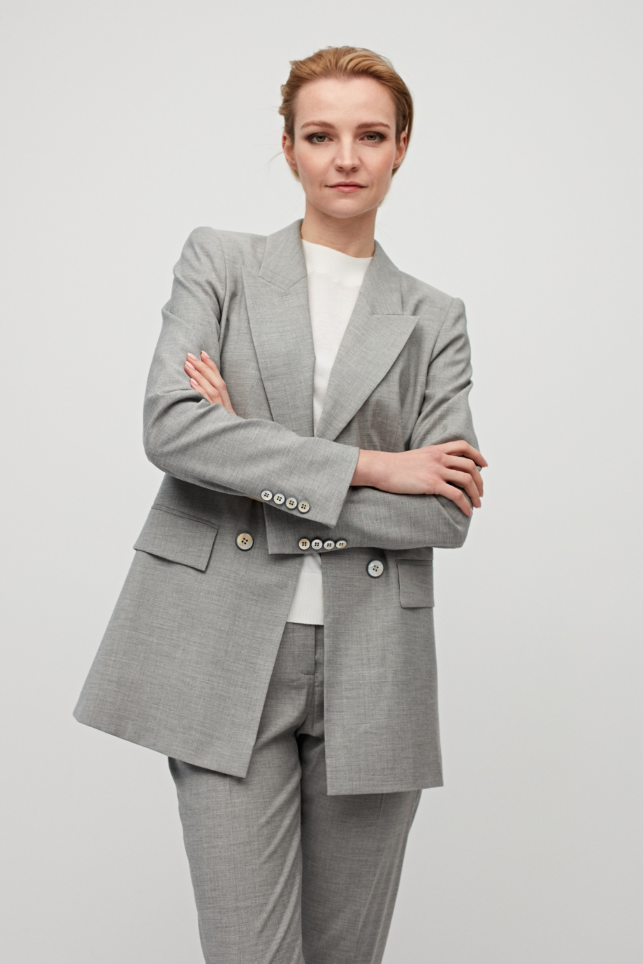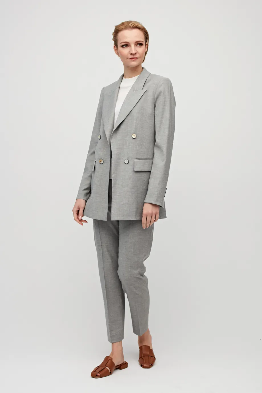 Sacou gri din lână, cu două rânduri de nasturi, pentru costum
