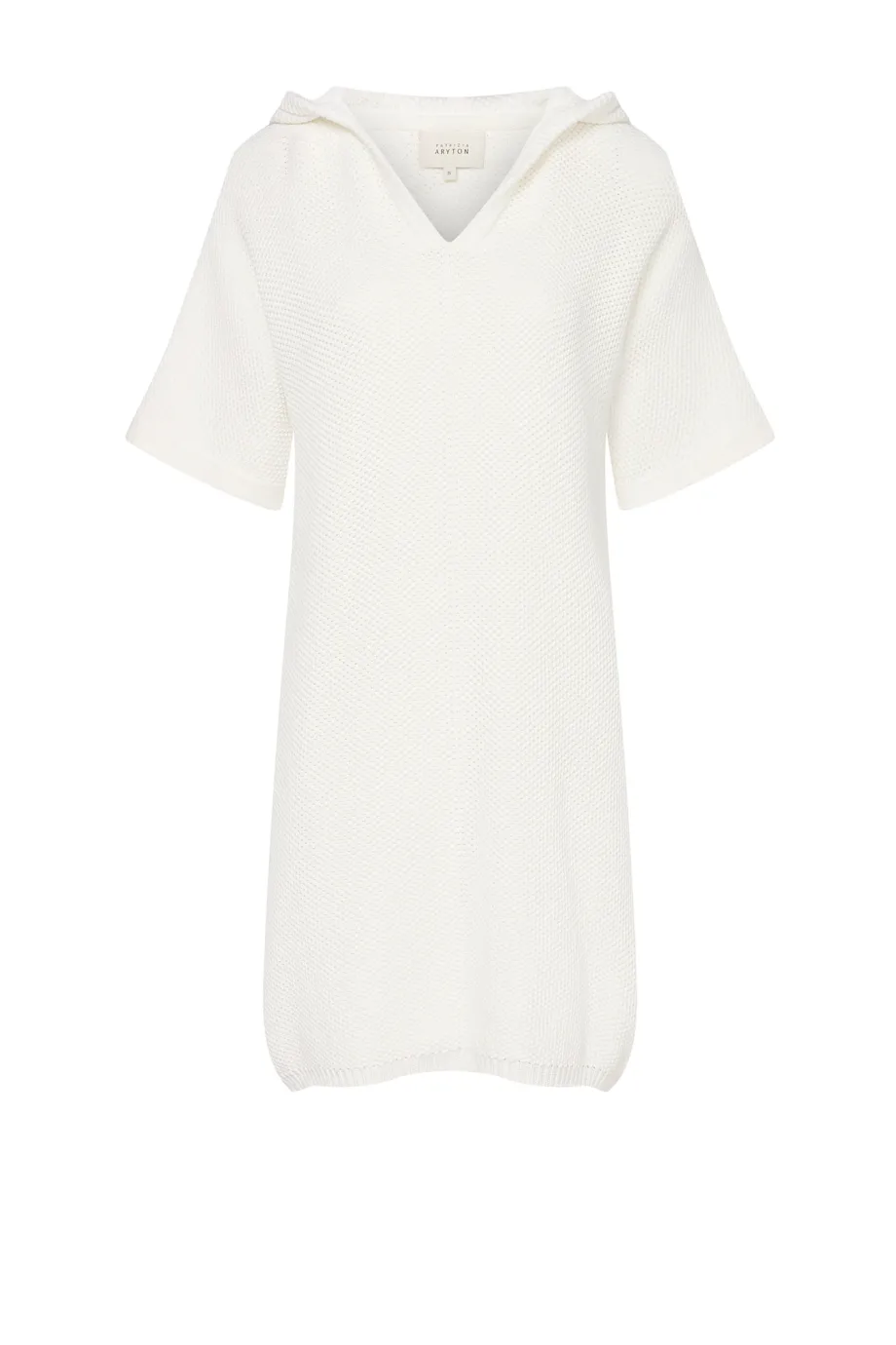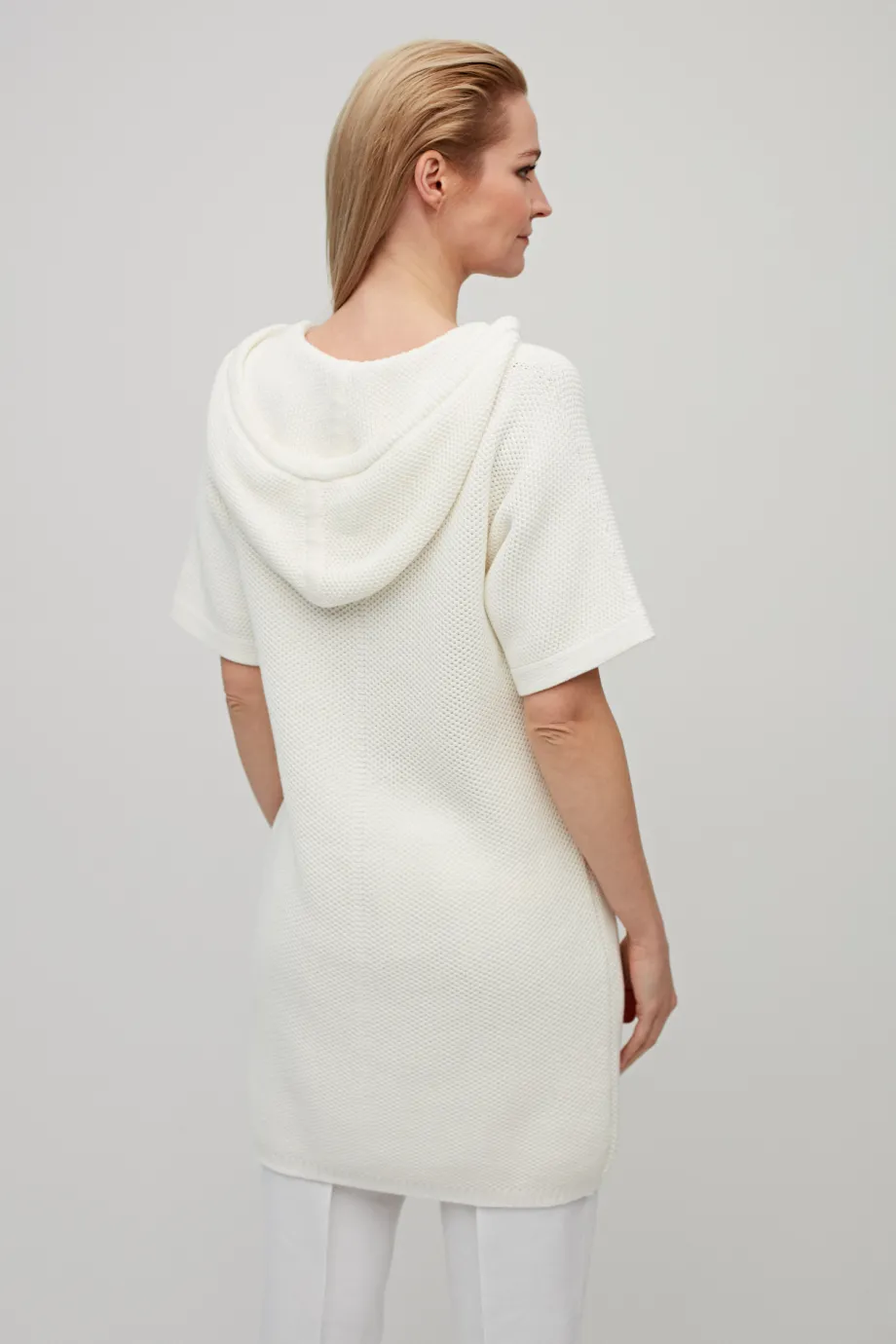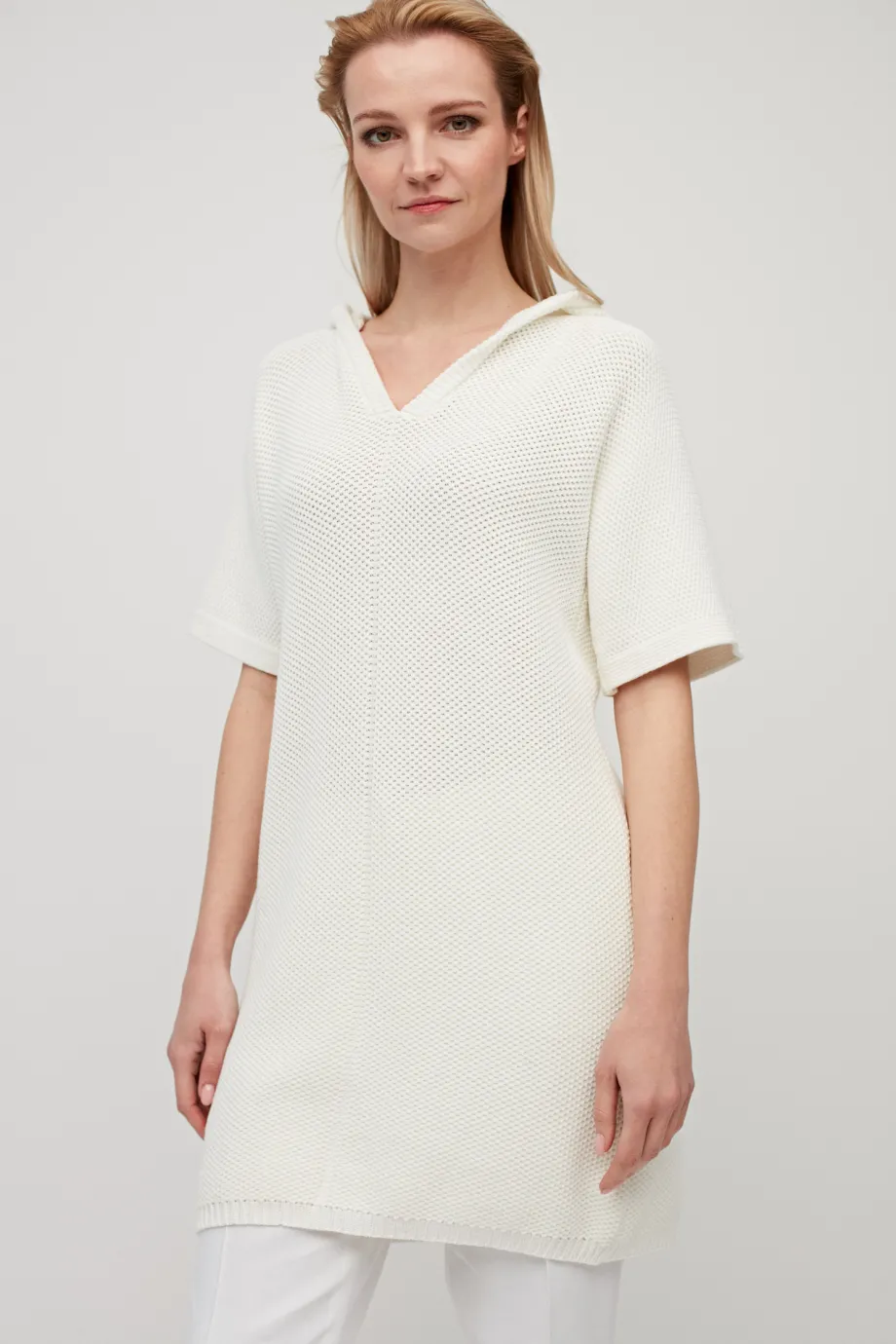 Tunică albă tricotată cu glugă
