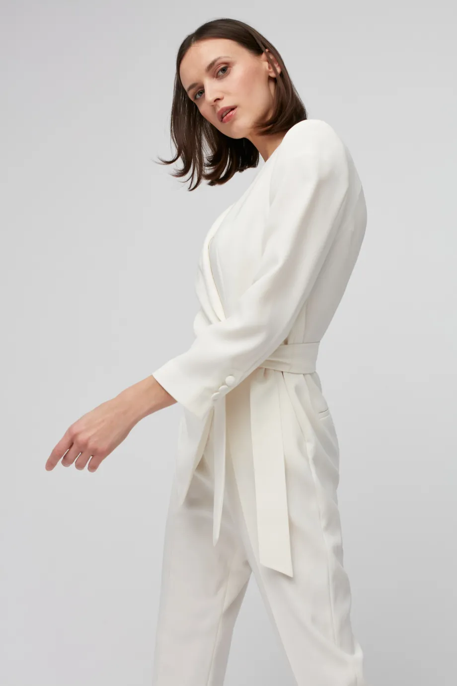 Cauți ținuta ideală pentru o ocazie specială? Această salopetă albă elegantă este esența stilului pentru femeile care apreciază calitatea înaltă.