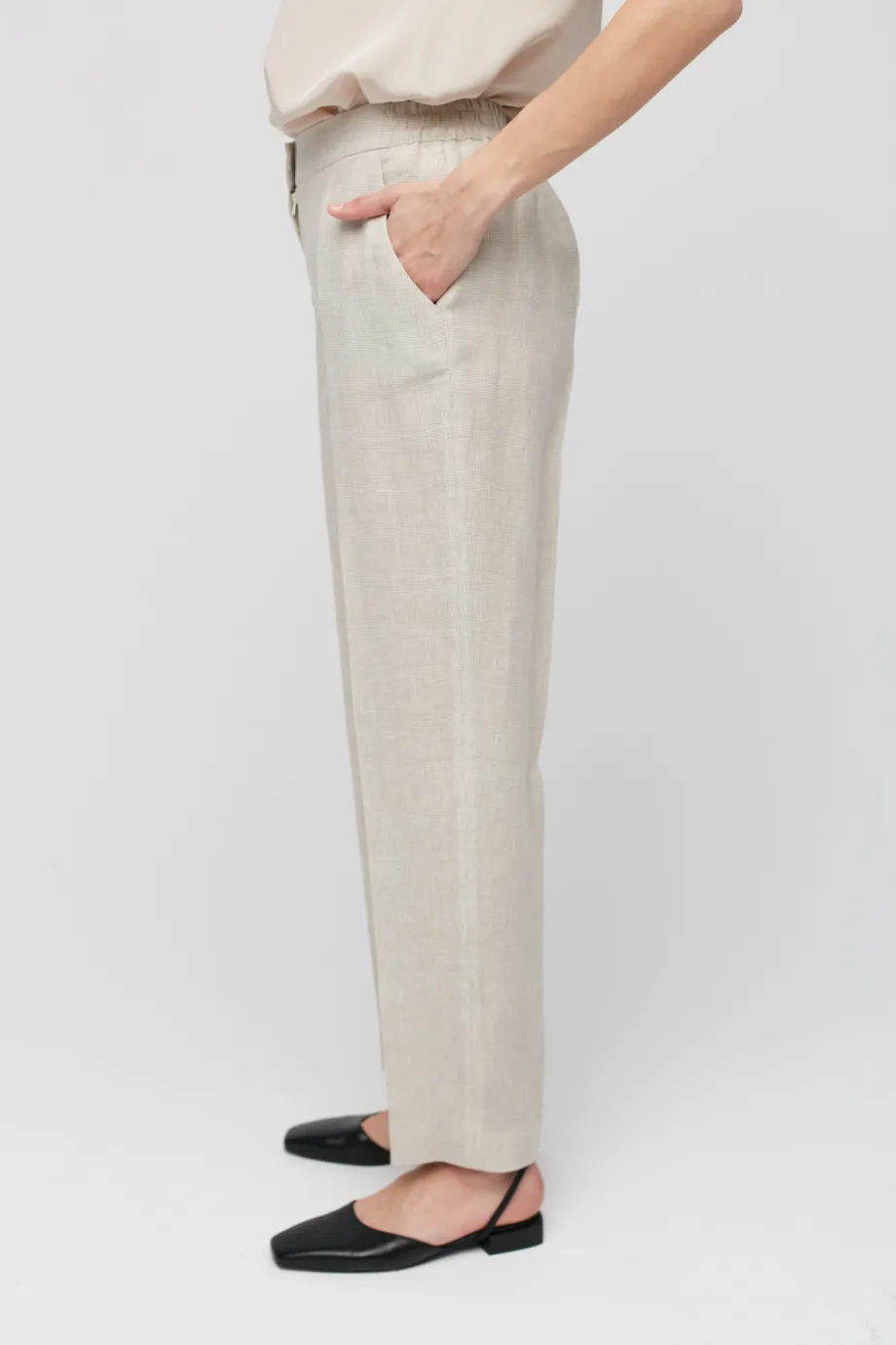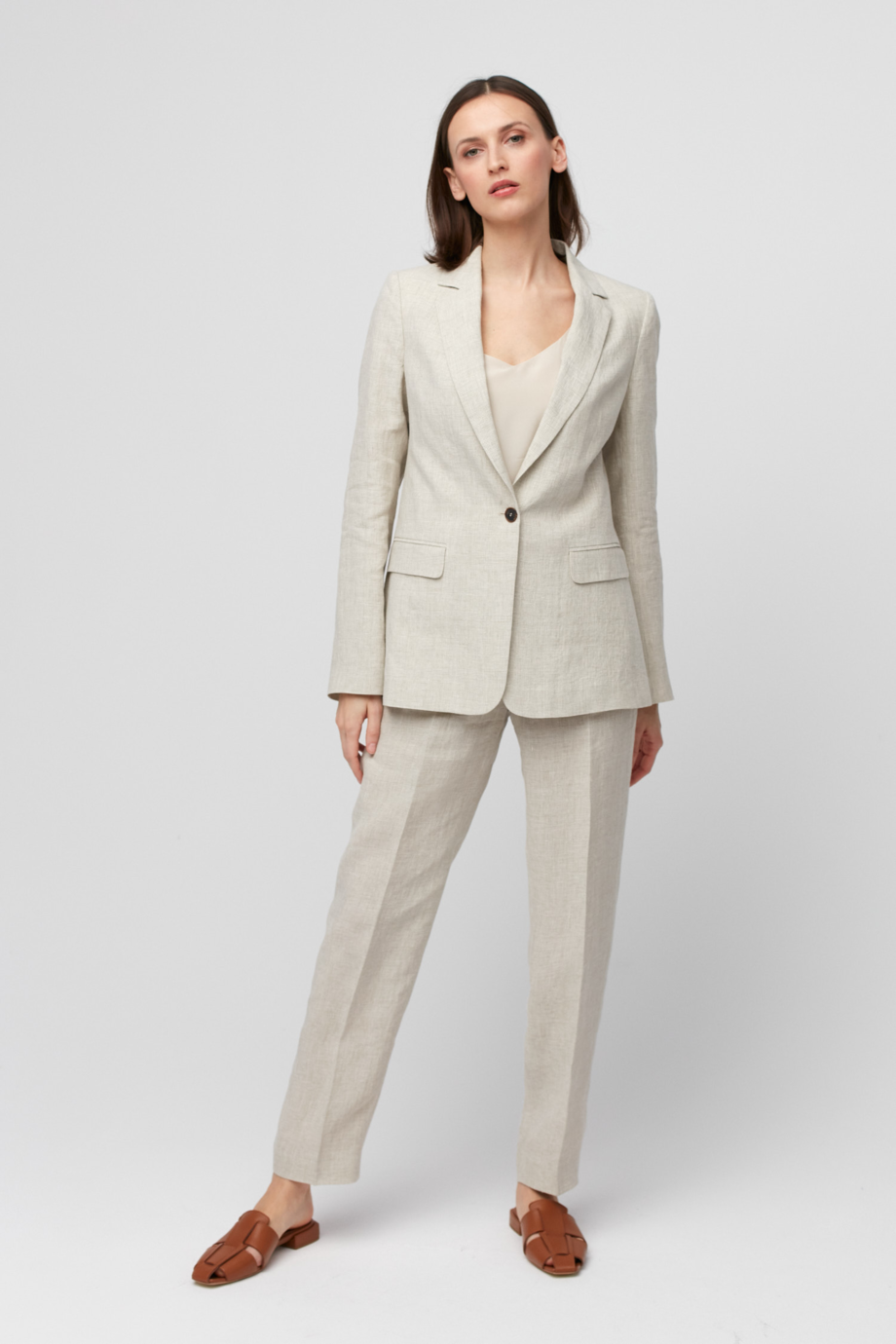 Acești pantaloni de in pentru femei se potrivesc perfect și cu orice bluză simplă, fie că este confecționată din același material sau din bumbac, mătase sau viscoză.