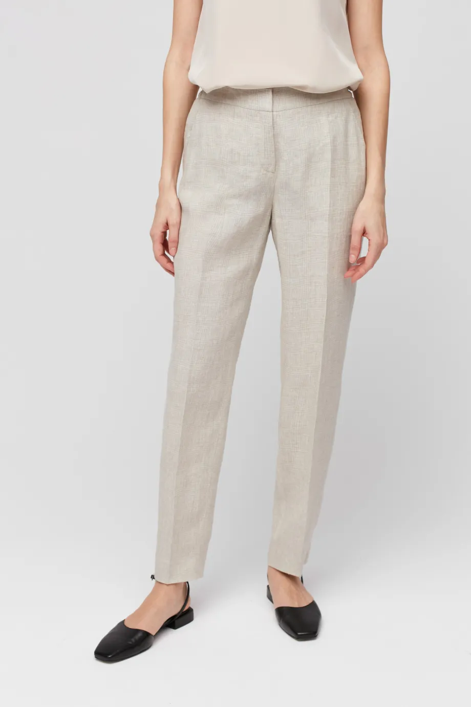Pantalonii din in Patrizia Aryton, cu un desen discret, sunt o opțiune ideală pentru femeile care își doresc o piesă elegantă și confortabilă pentru vară.