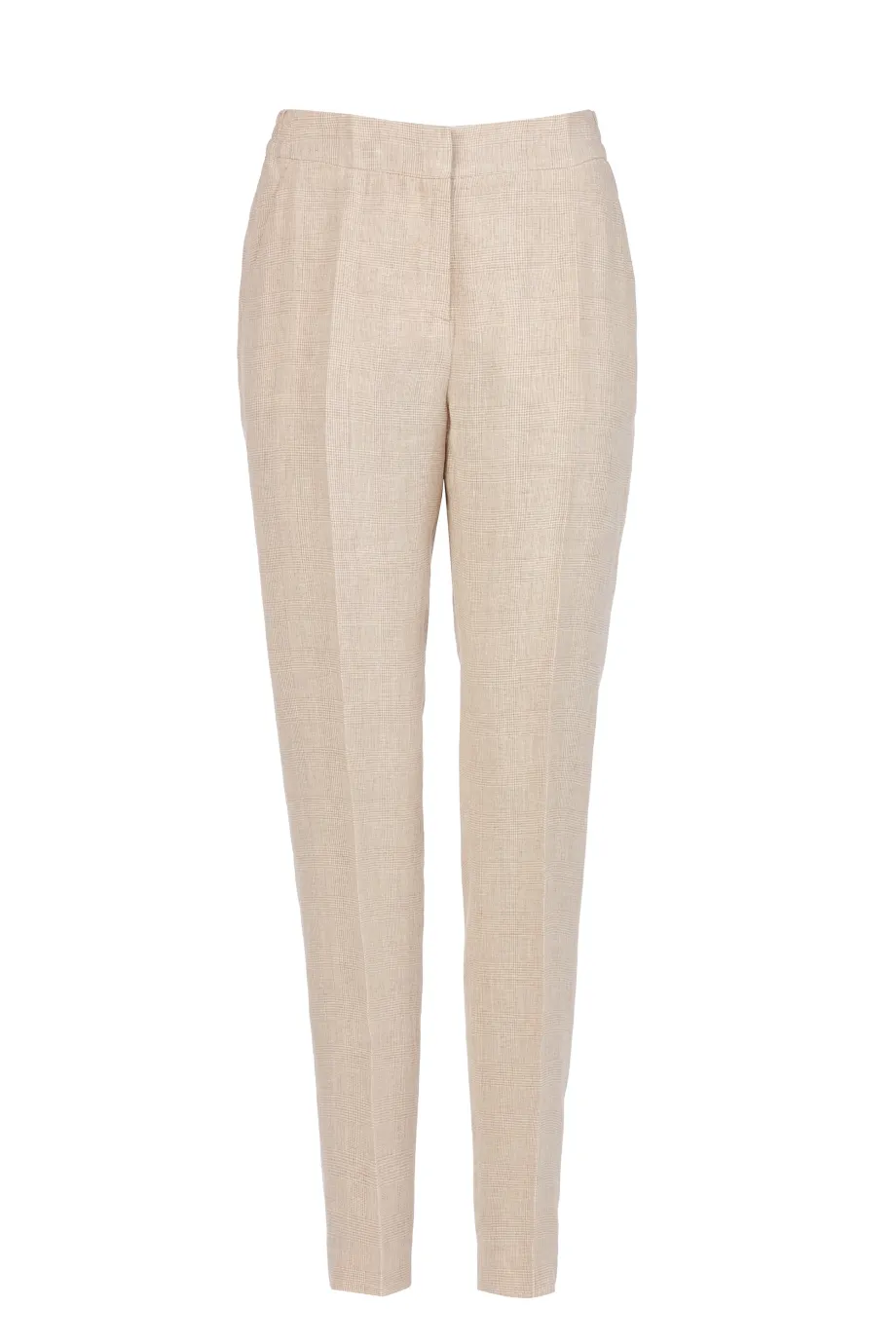 Pantaloni eleganți din in, în carouri, cu talie elastică.
