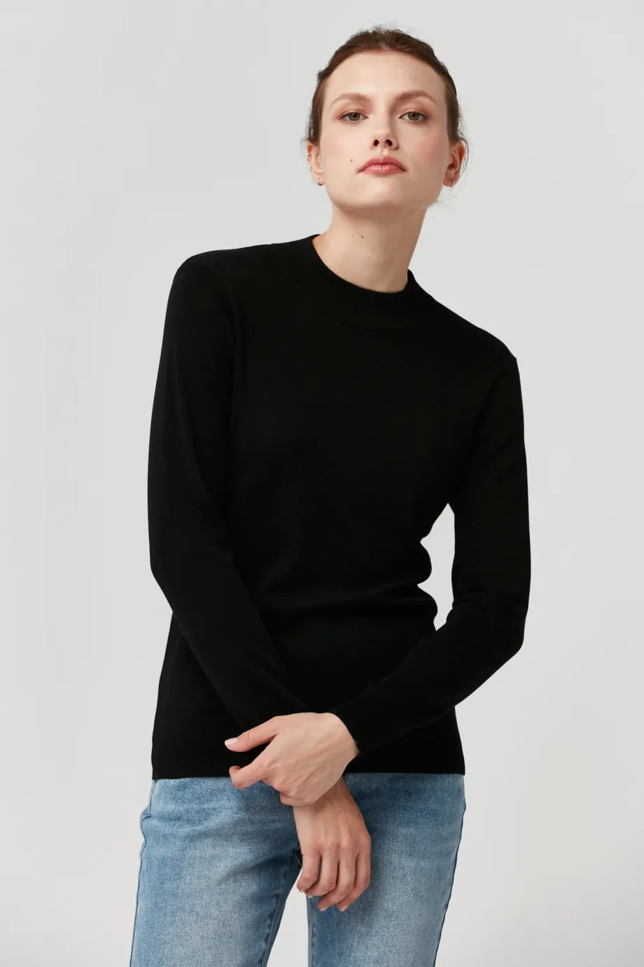 Bluză Molly din mătase, neagră, cu guler înalt