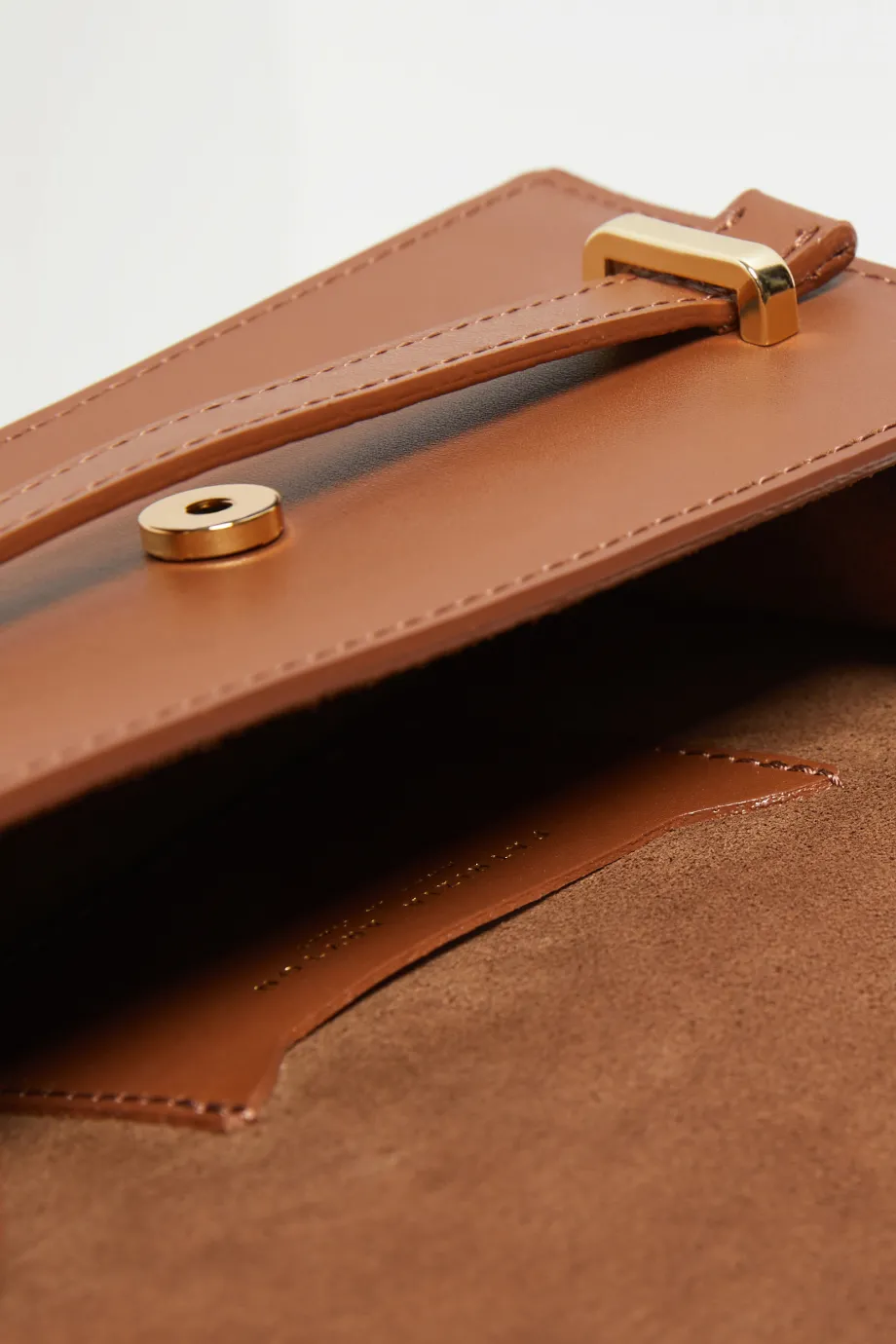 Geanta este finisată la interior cu piele întoarsă, într-o nuanță naturală