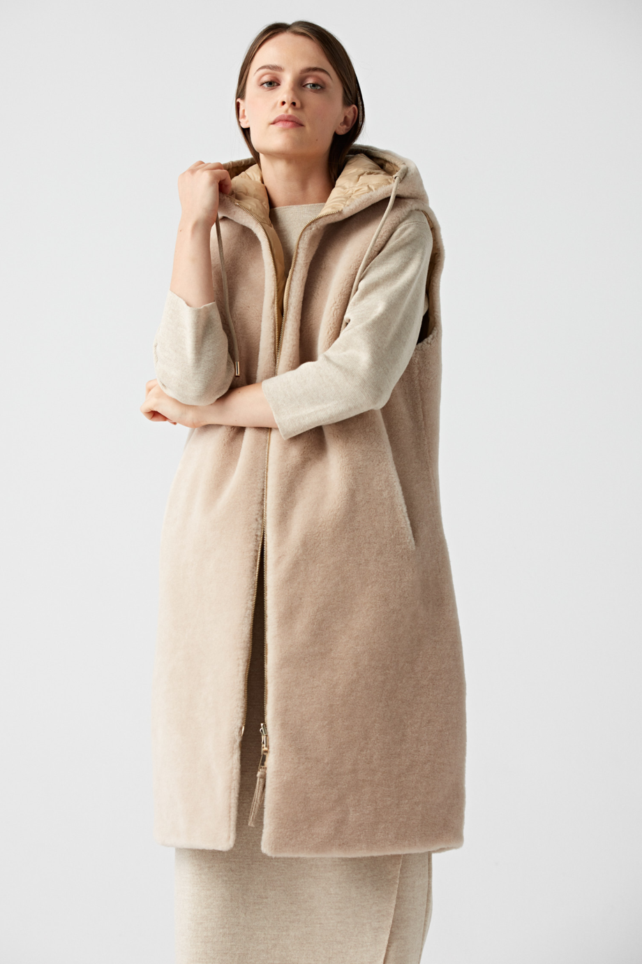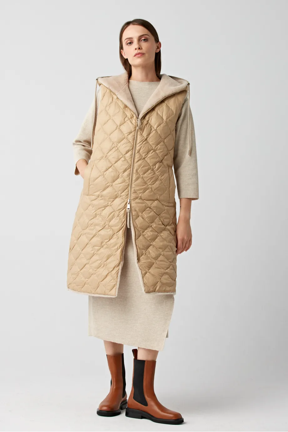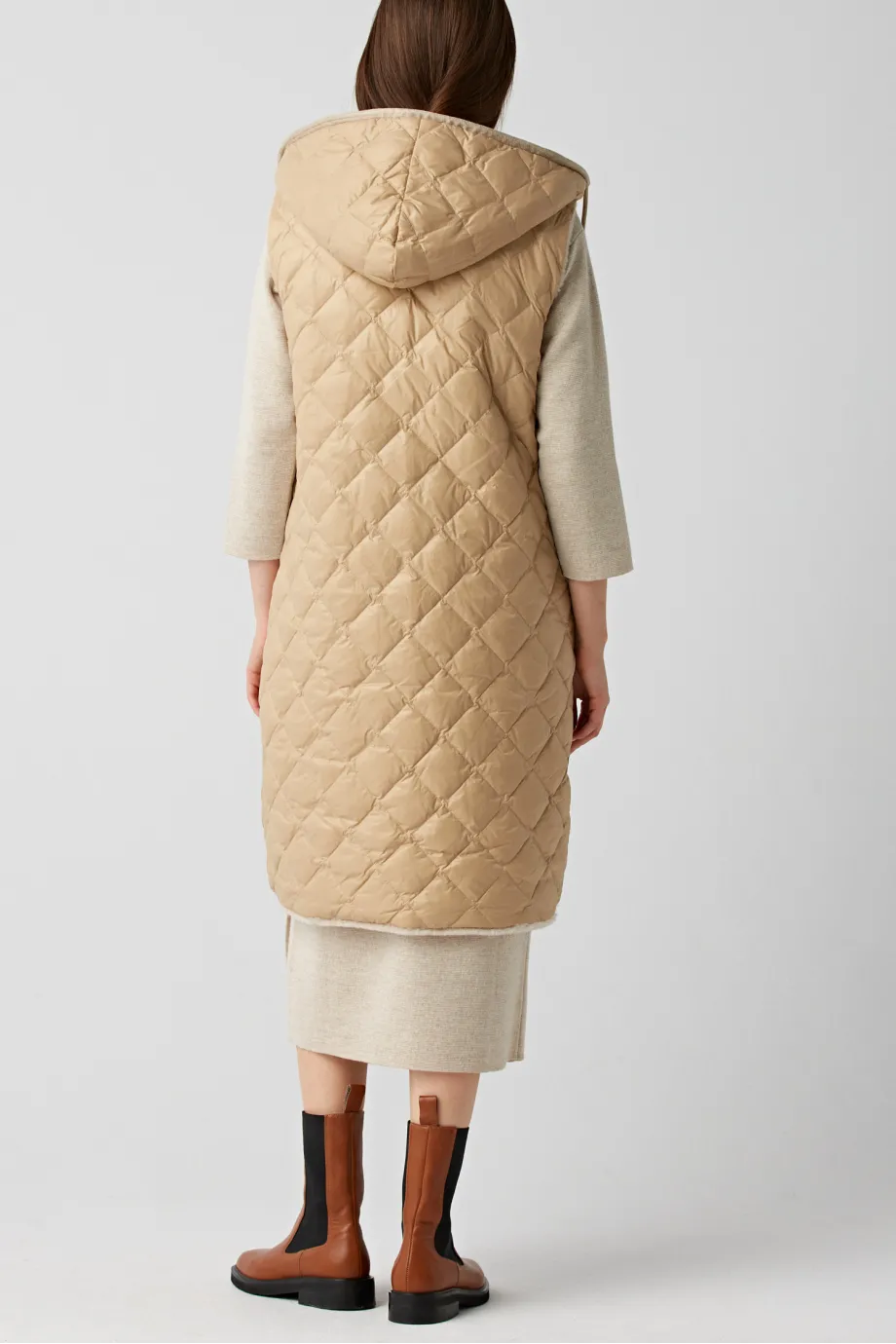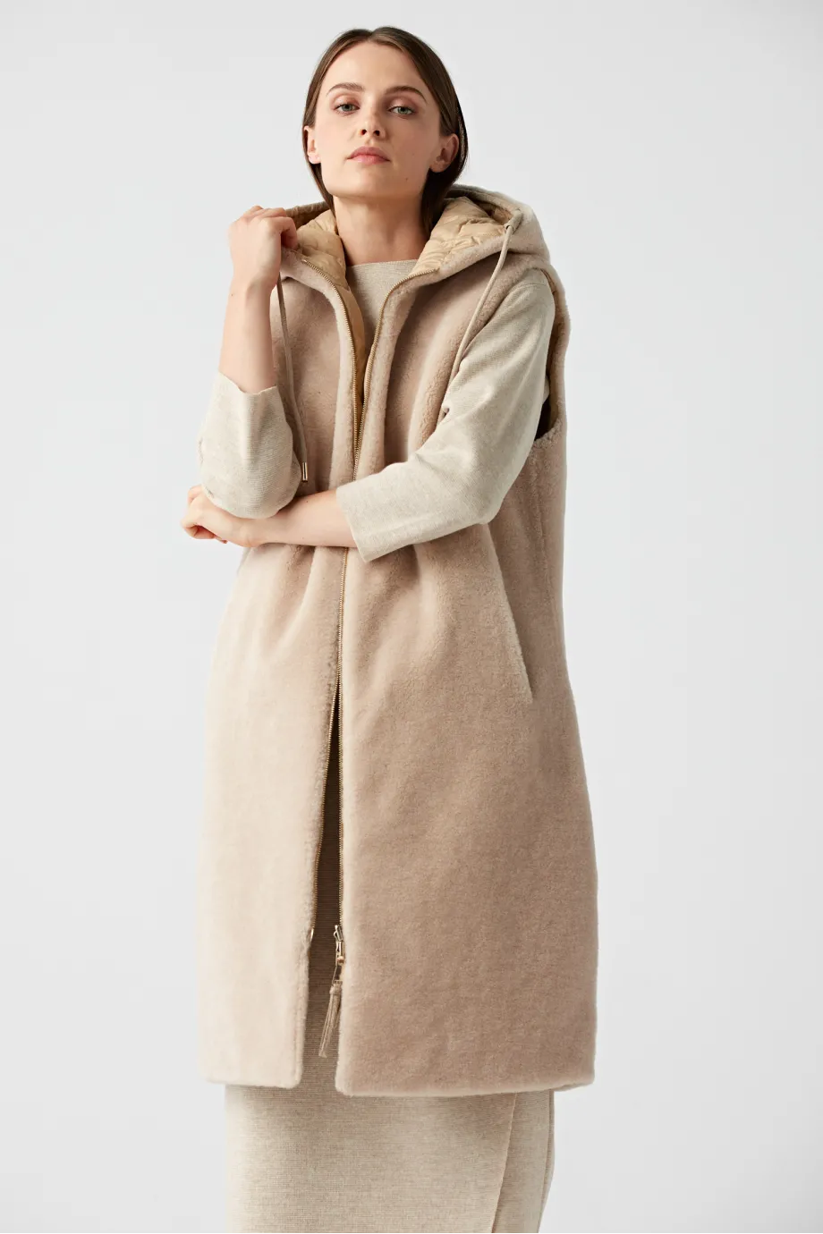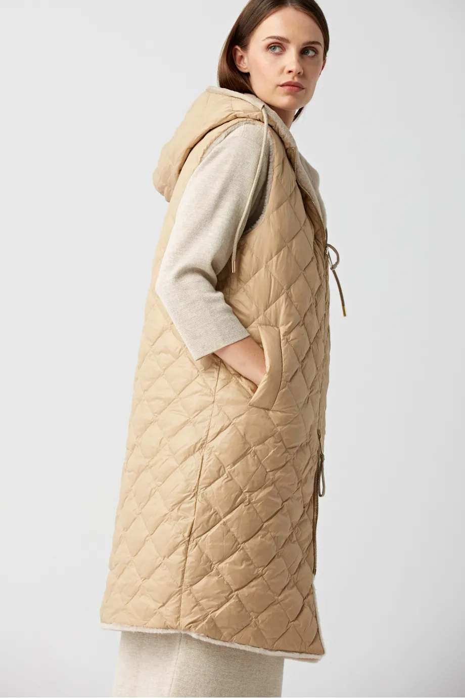 Vestă reversibilă cu glugă reglabilă și buzunare