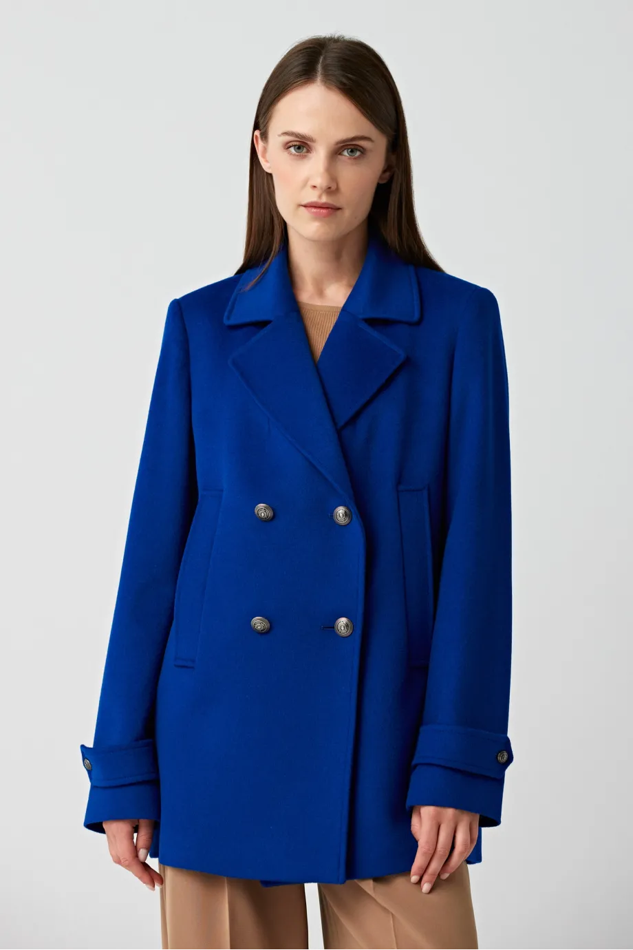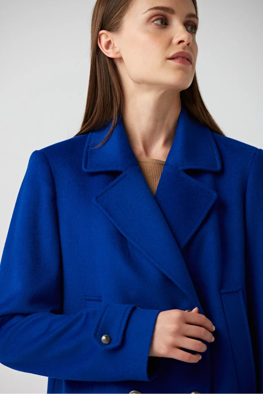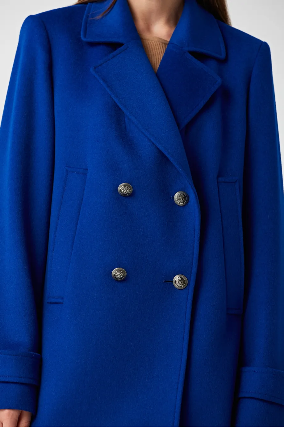 Palton Clara din lână cobalt, cu două rânduri de nasturi