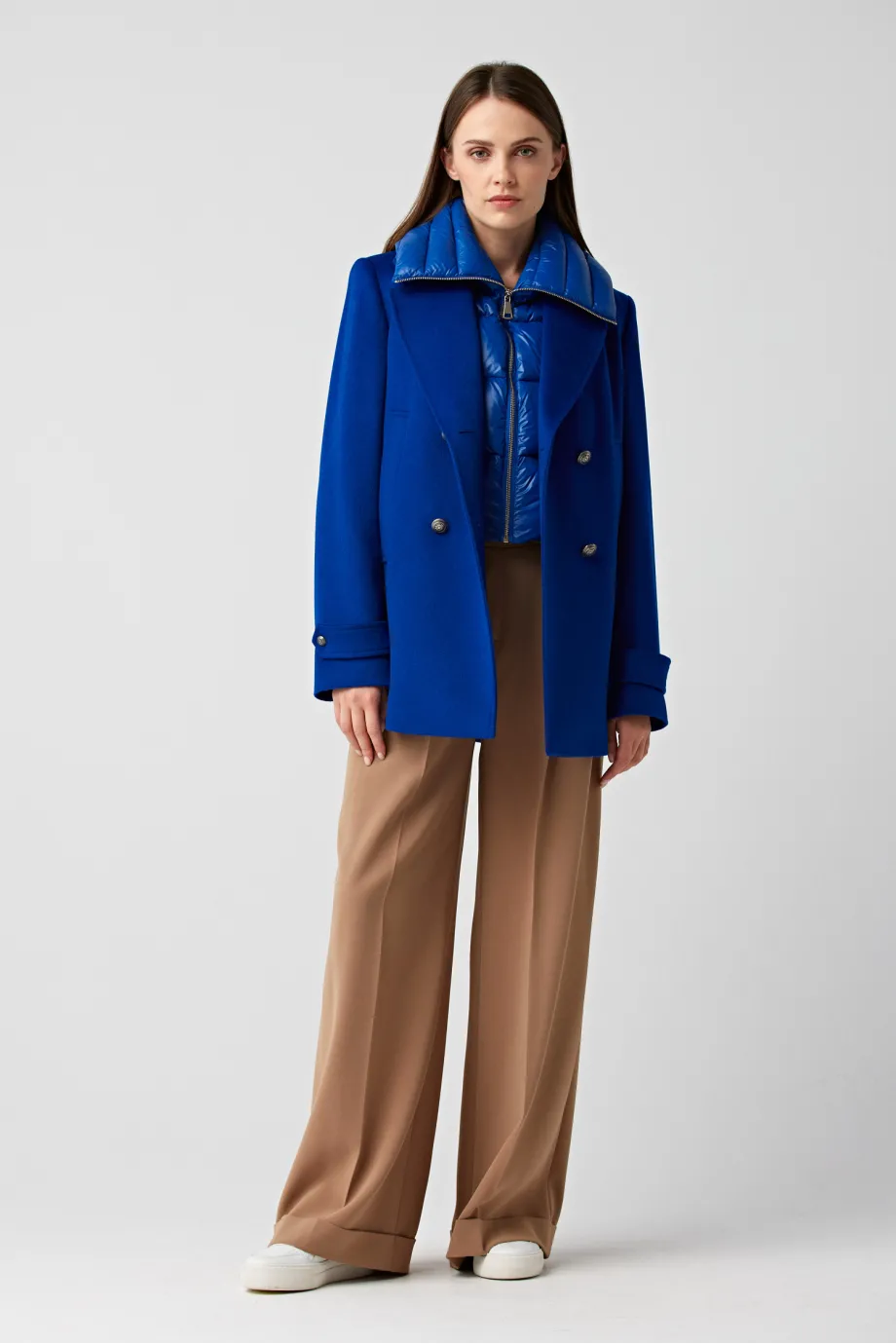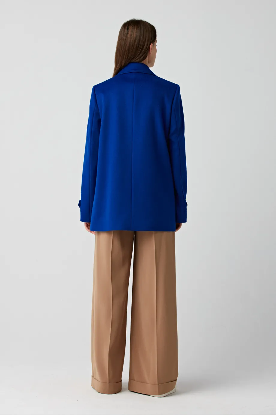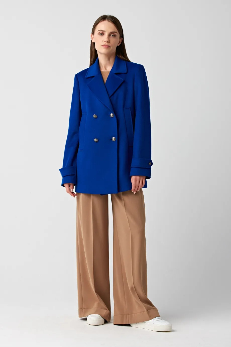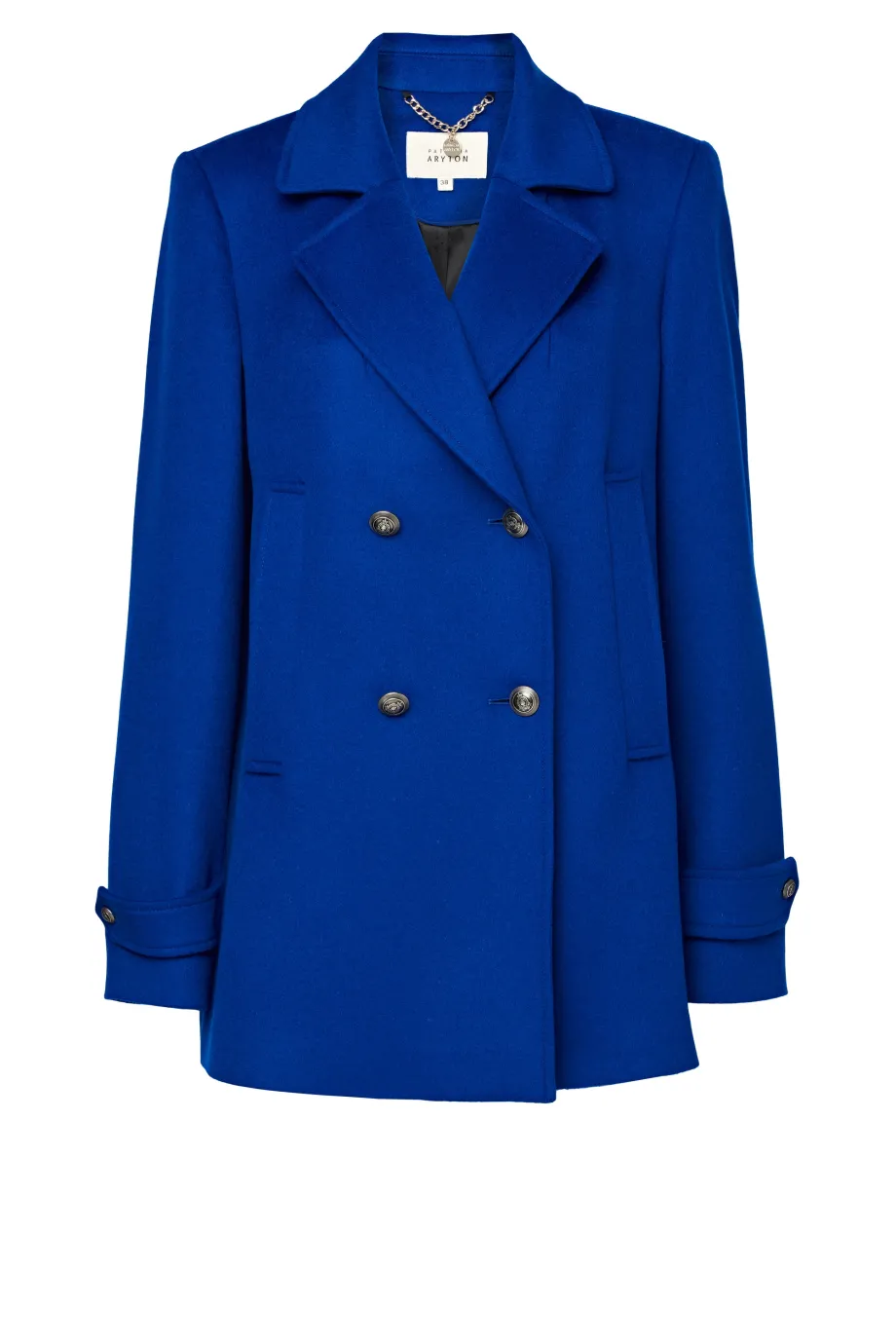 Palton Clara din lână cobalt, cu două rânduri de nasturi