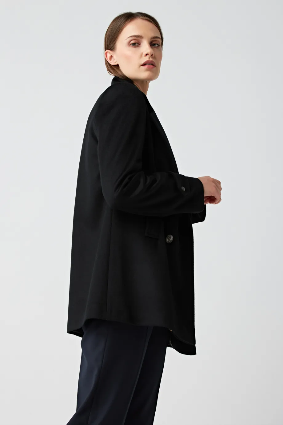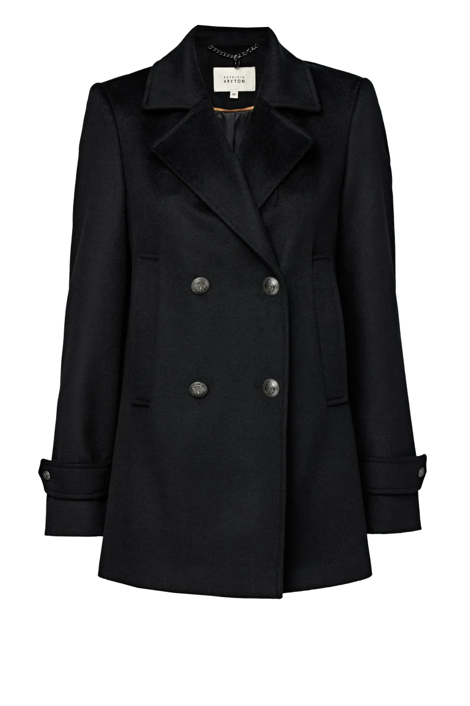 Palton Clara neagră din lână, cu două rânduri de nasturi