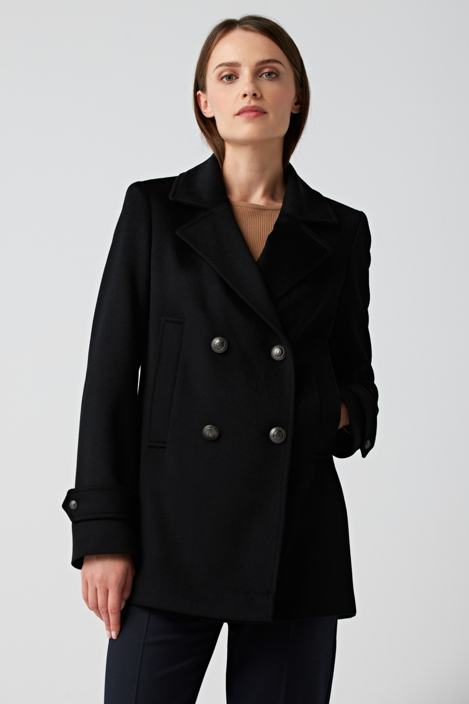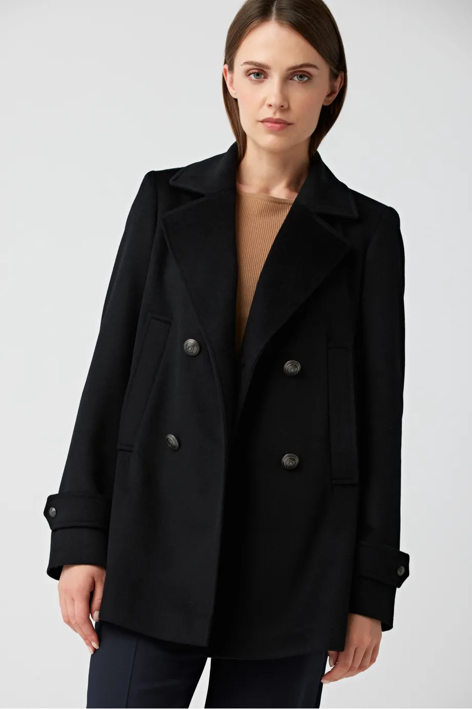 O haină bine aleasă completează o ținută elegantă. Paltonul neagru din lână este un element constant al garderobei persoanelor care doresc să-și evidențieze imaginea impecabilă și profesională. Clara este un model tipic de haină marină în variantă feminină, purtat de multe femei în locul sacoului. Contrar aparențelor, acest model este potrivit nu doar pentru ținute business, ci și pentru creații cocktail și smart casual. Descoperă toate avantajele pe care le oferă paltonul din lână cu două rânduri de nasturi Patrizia Aryton.
