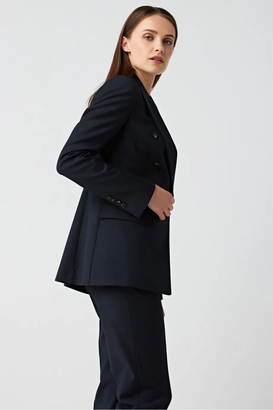 Ținutele formale au propriile reguli, însă chiar și într-o apariție oficială poți impresiona prin feminitate, stil și clasă. Sacoul de damă din lână, cu două rânduri de nasturi, în nuanță albastru royal închis, reprezintă pentru multe femei un element indispensabil al stilizărilor business și al aparițiilor elegante.