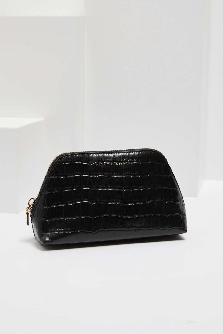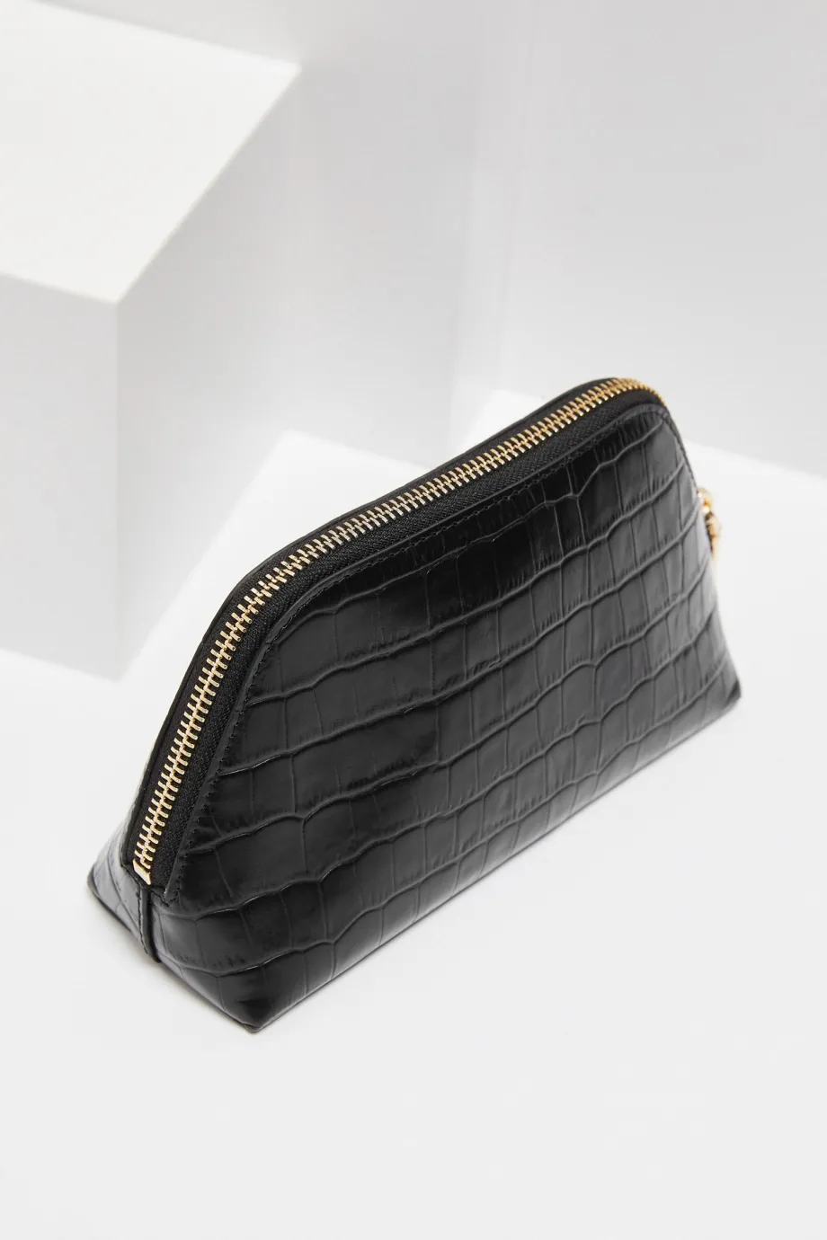 Geantă cosmetică din piele neagră croco