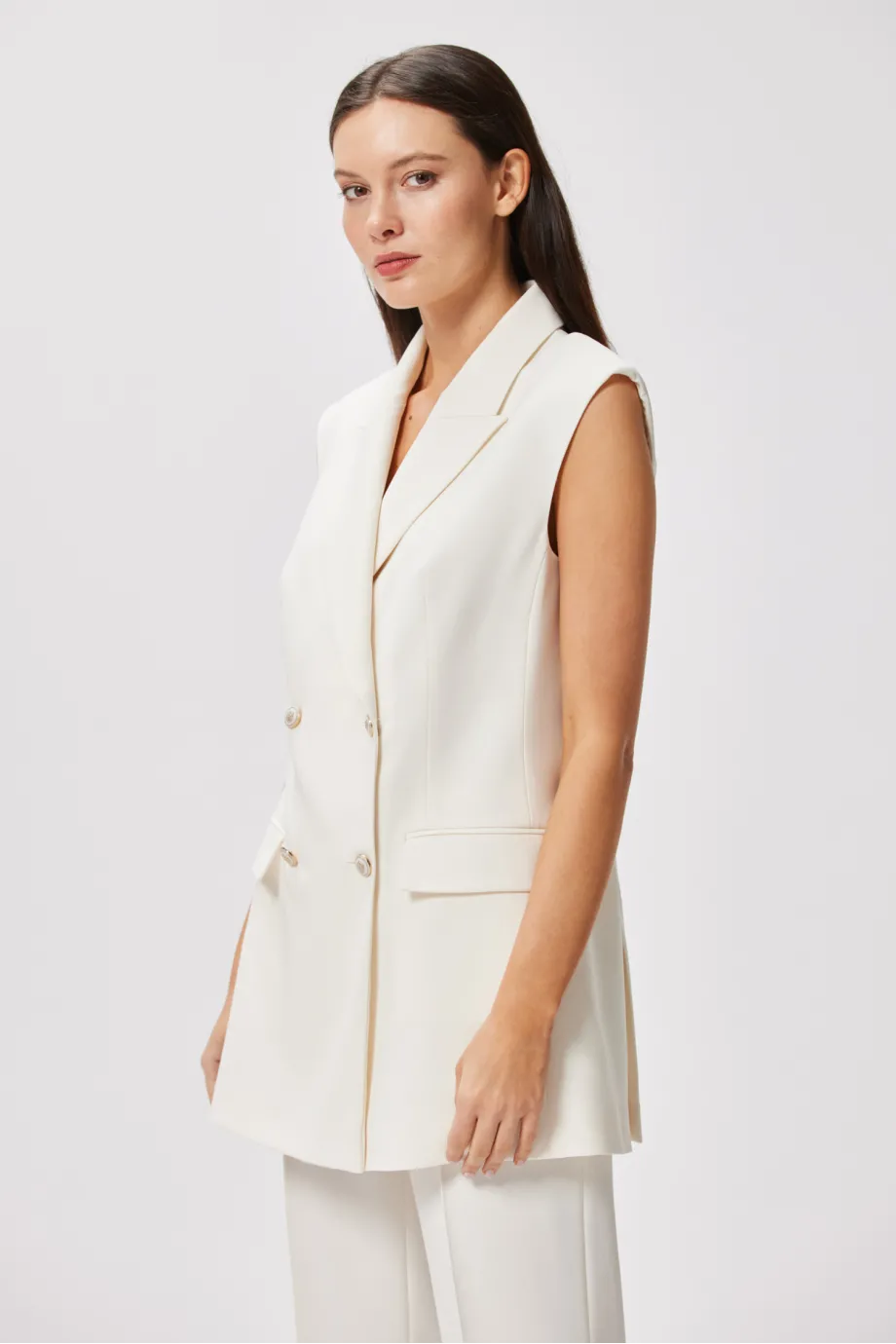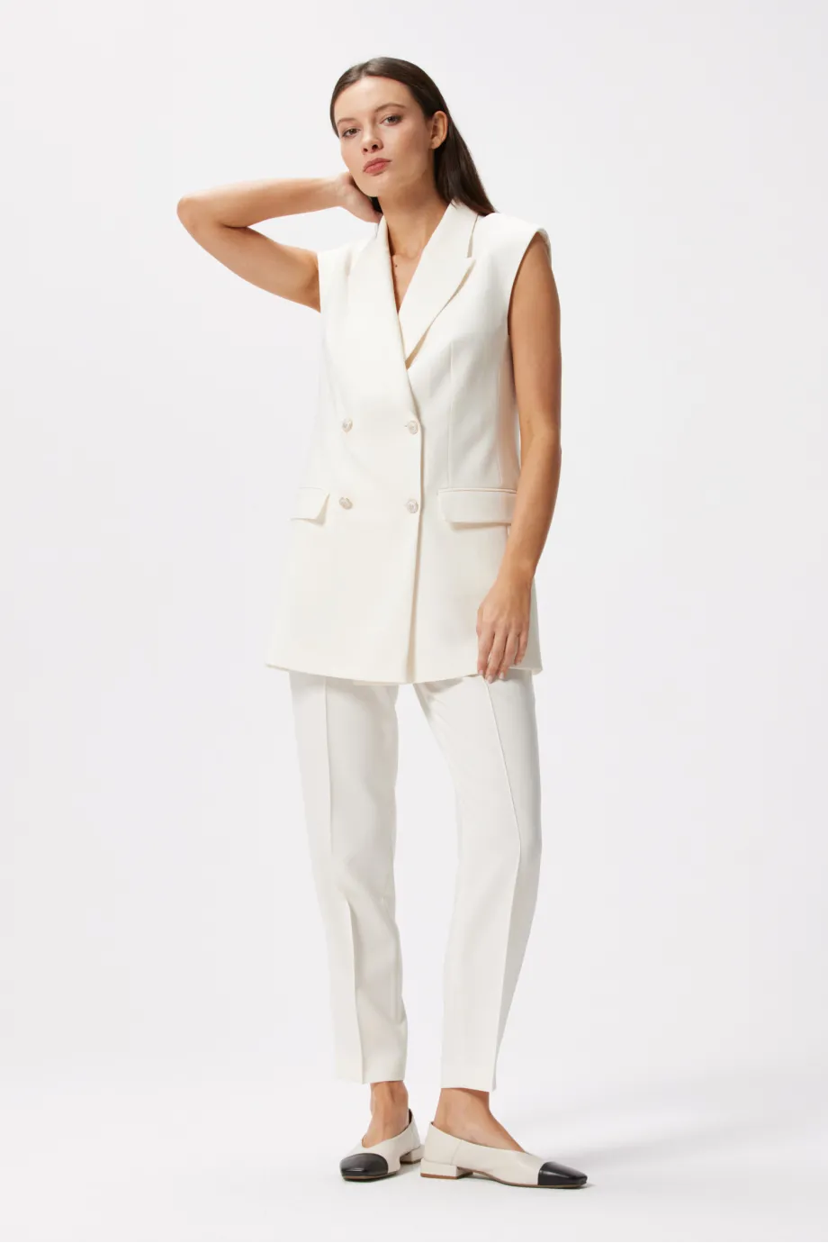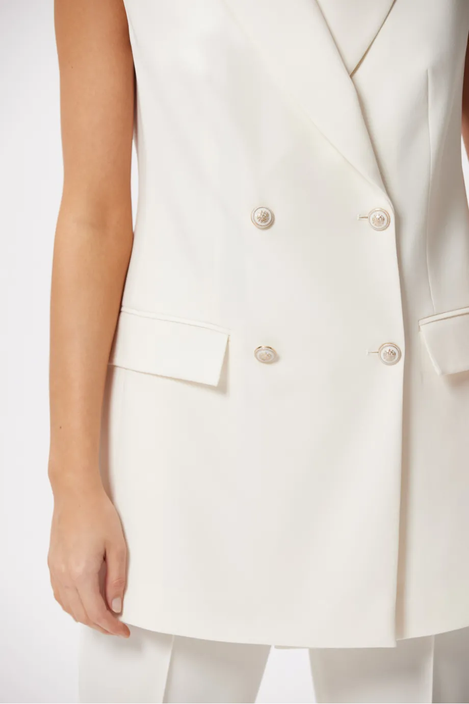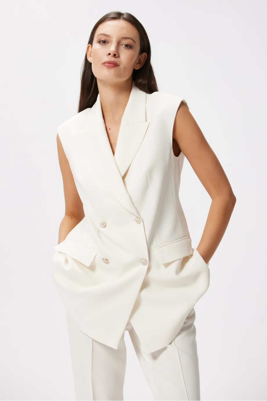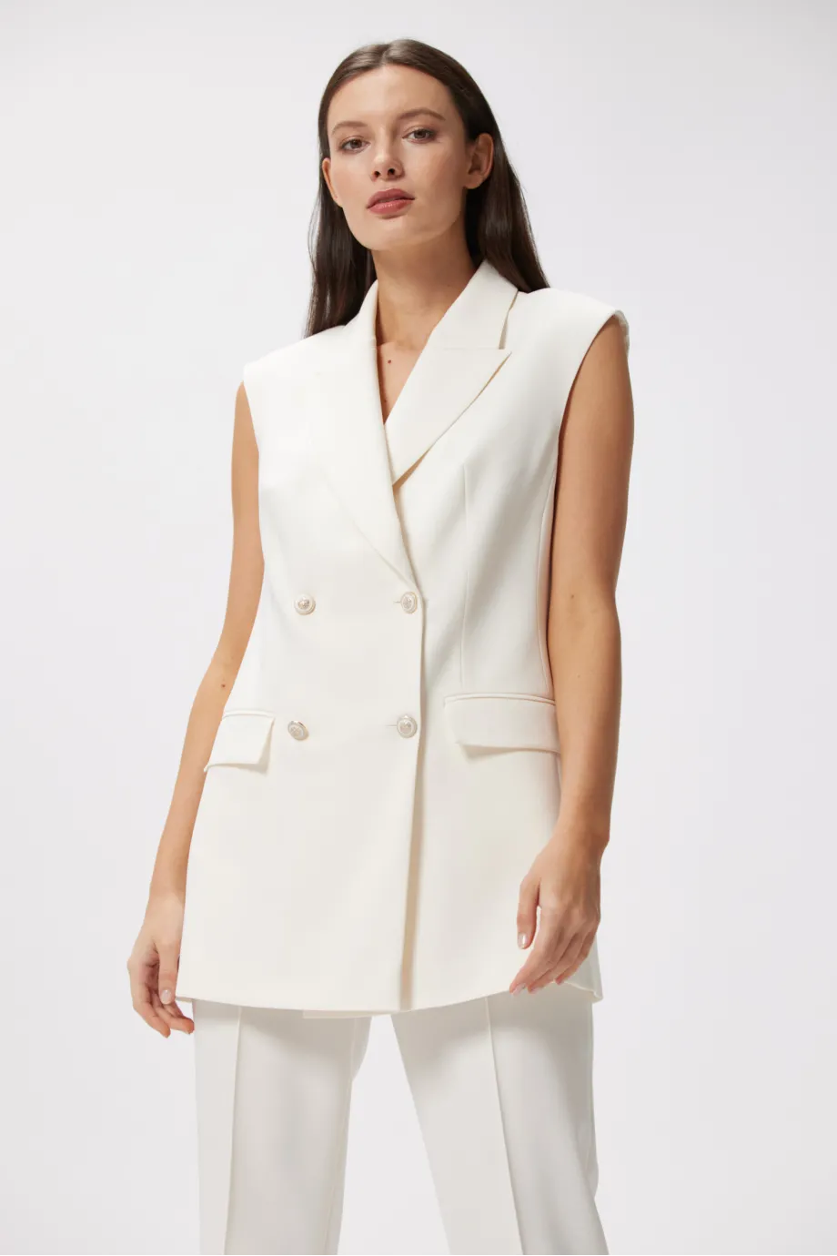 Ce poți purta vara la birou în locul unui sacou? Propunerea noastră este vesta albă elegantă pentru femei Patrizia Aryton, pe care o poți purta peste o cămașă elegantă, o rochie subțire, un top din mătase, un tricou tricotat cu mânecă lungă sau chiar singură. Modelul face parte din Office Style și este dedicat ținutelor business. Cu toate acestea, se va potrivi perfect și ca element al stilizărilor cocktail, alese, de exemplu, pentru evenimente de familie sau întâlniri sociale.