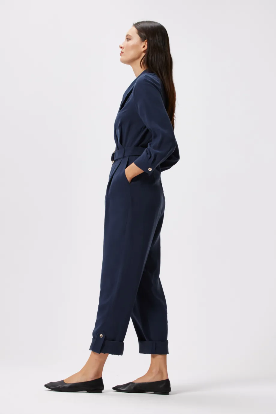 Salopeta elegantă poate înlocui o rochie de banchet sau de nuntă, iar în anumite situații chiar și un costum business. Totul ține de croiala atent gândită, care în acest model a fost realizată cu deosebită grijă. Salopeta din vâscoză Patrizia Aryton, din colecția Smart Casual, este expresia stilului gentlewoman într-o interpretare sensuală, rafinată și delicată.