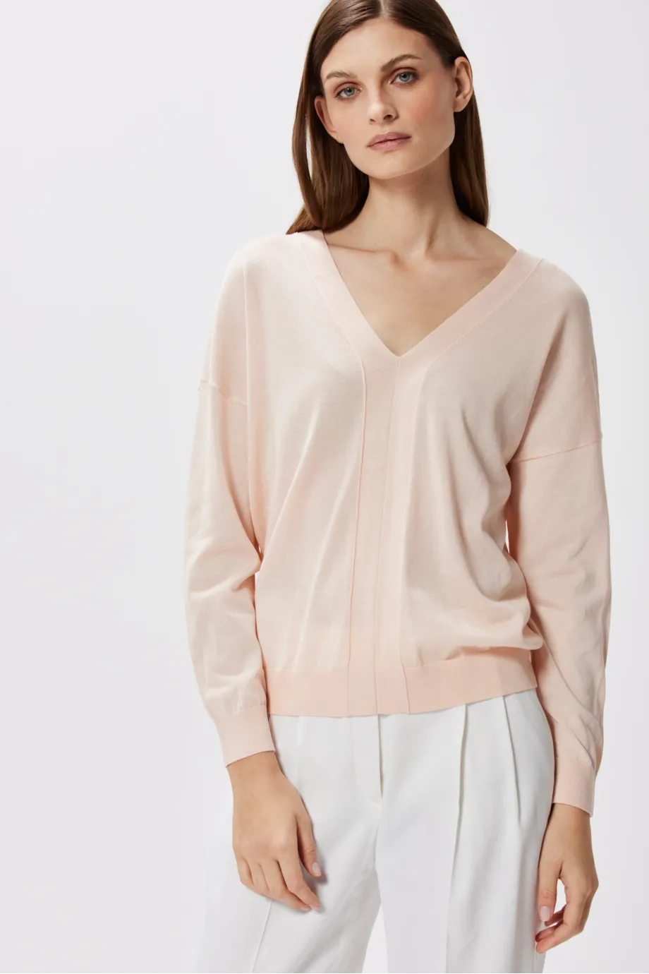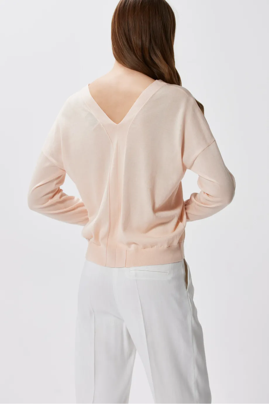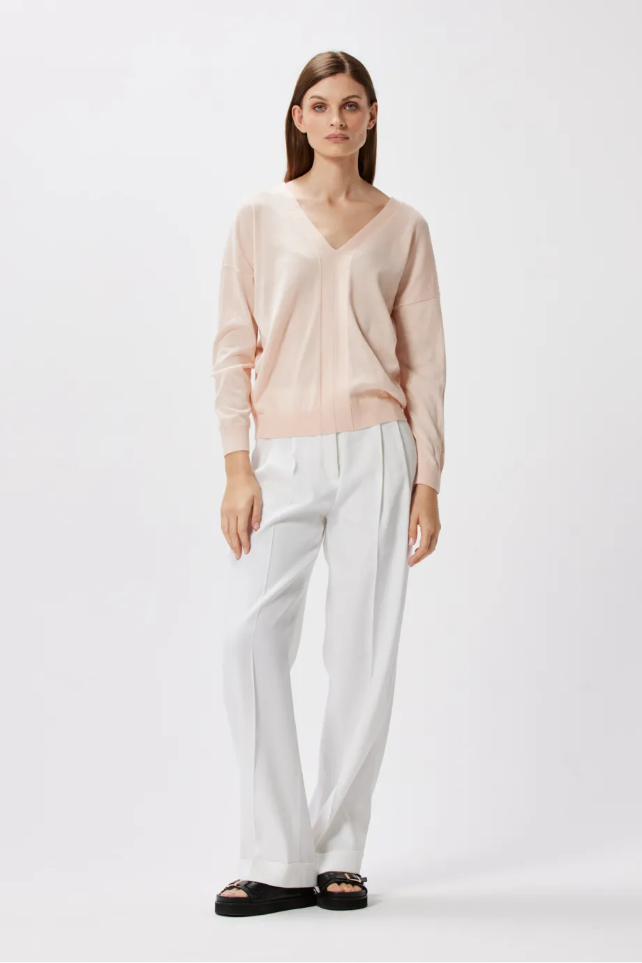 Cauți baza perfectă pentru ținutele tale business? Vrei să te simți sigură pe tine și confortabil, evidențiindu-ți în același timp eleganța și rafinamentul? Alege bluza noastră elegantă cu decolteu în V, realizată 100% din bumbac de cea mai înaltă calitate. Croiala lejeră oferă libertate de mișcare, iar materialul moale asigură confort pe tot parcursul zilei. Este o piesă elegantă, ideală pentru combinații cu pantaloni tip țigaretă, fuste creion sau pantaloni clasici de costum. O poți purta simplu sau completată cu un sacou ori o jachetă.