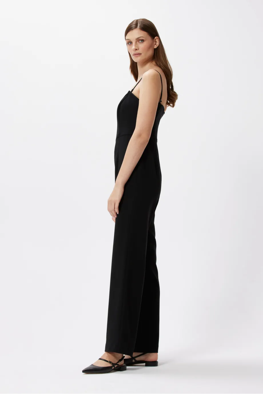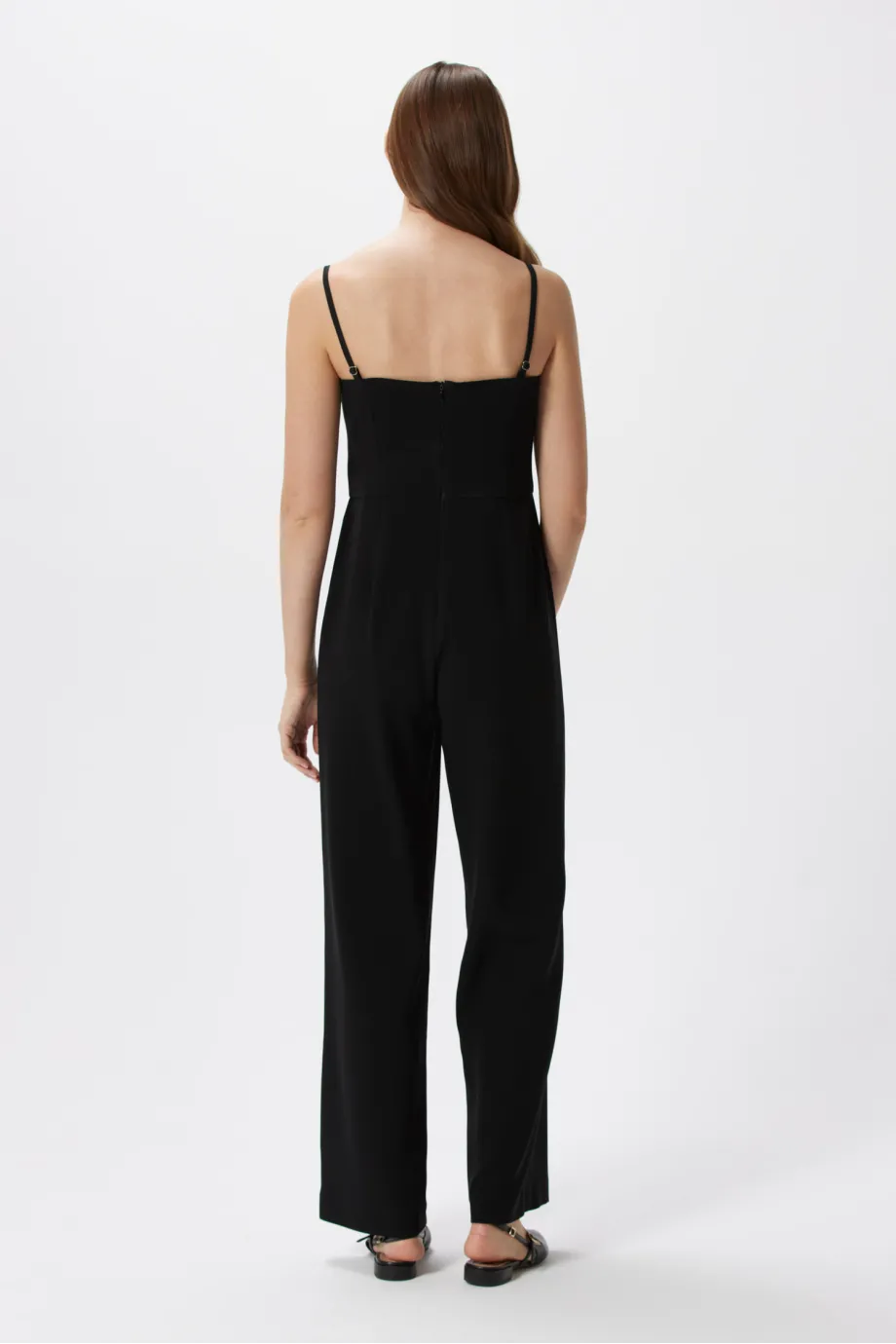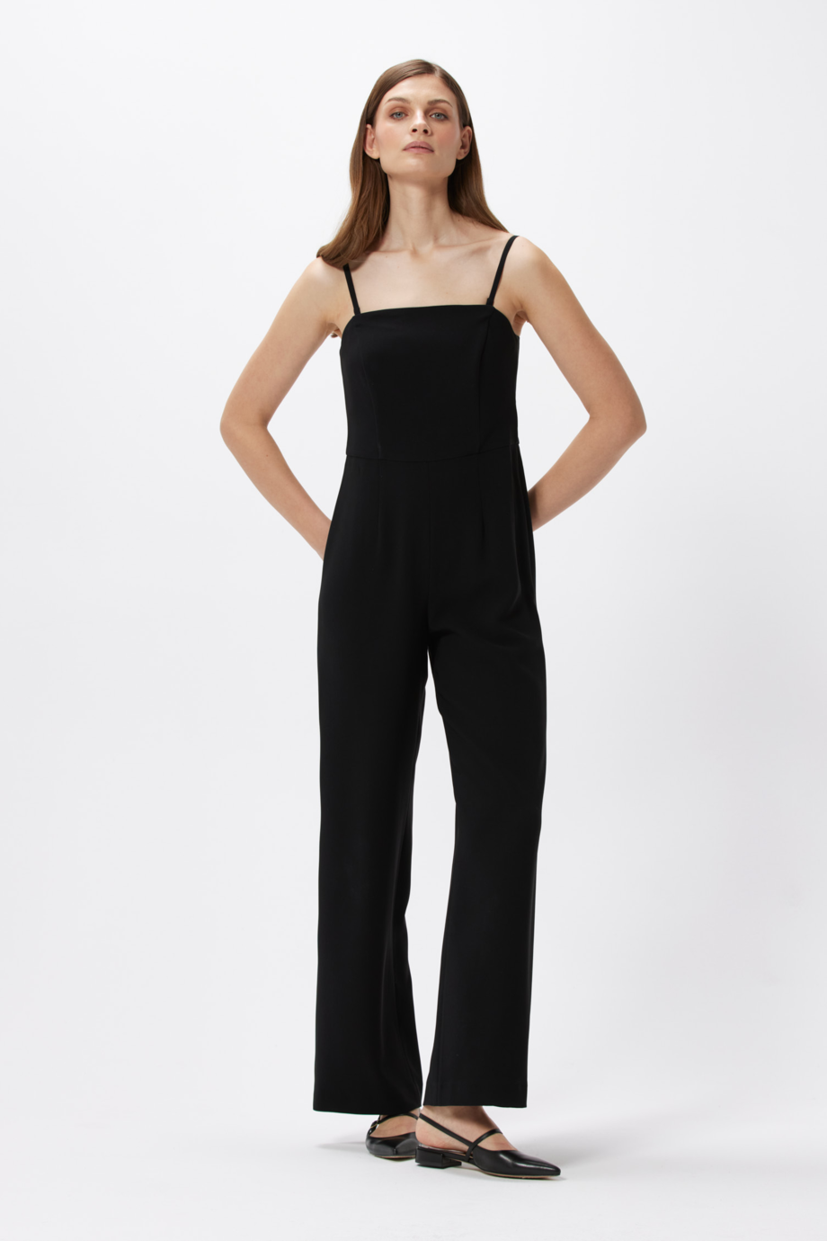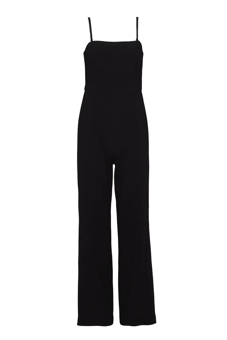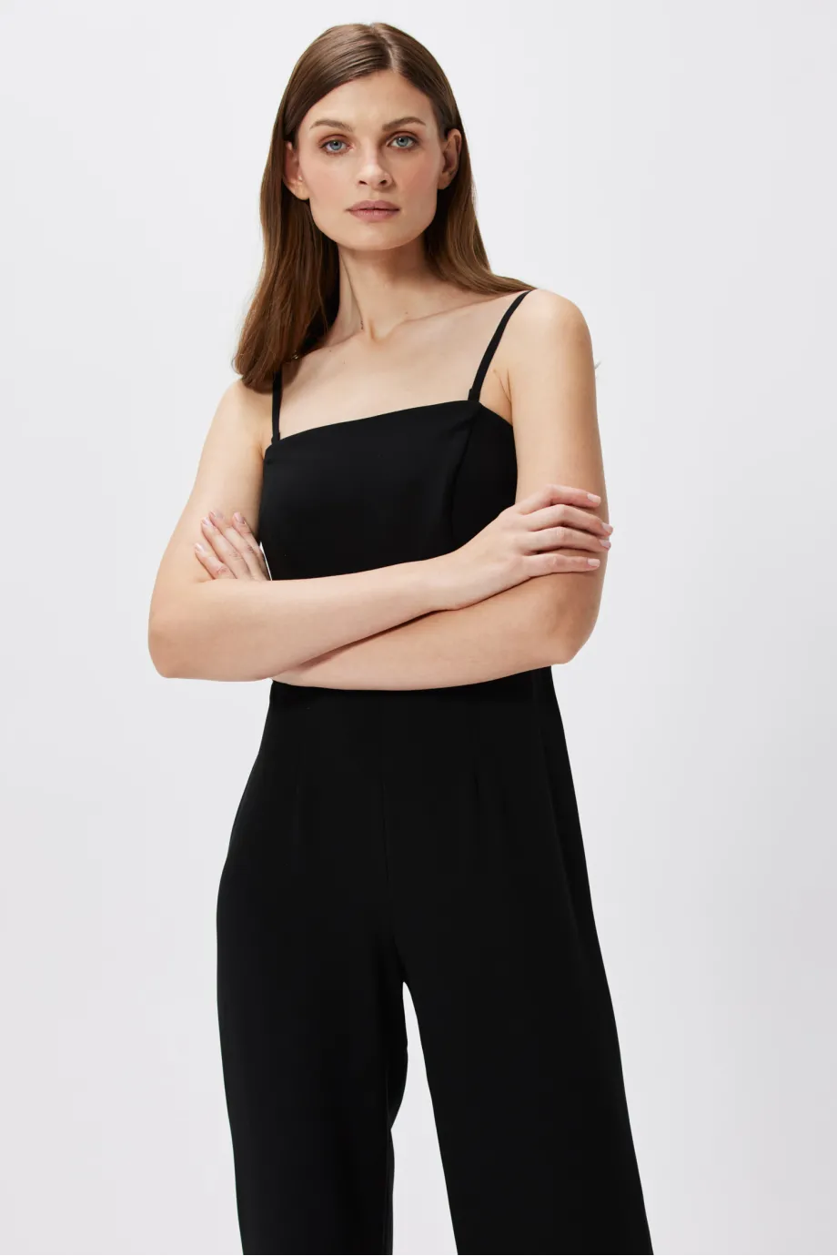 Salopetă neagră cu pantalon larg și bretele subțiri