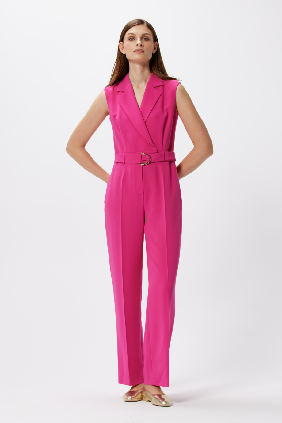 Salopetă elegantă, roz cu pantalon larg