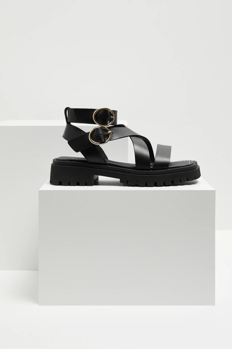 Sandale negre din piele naturală