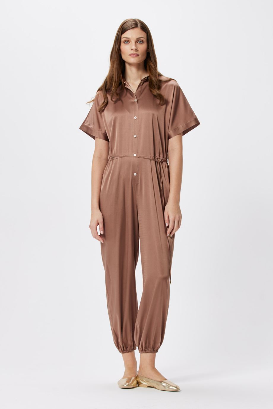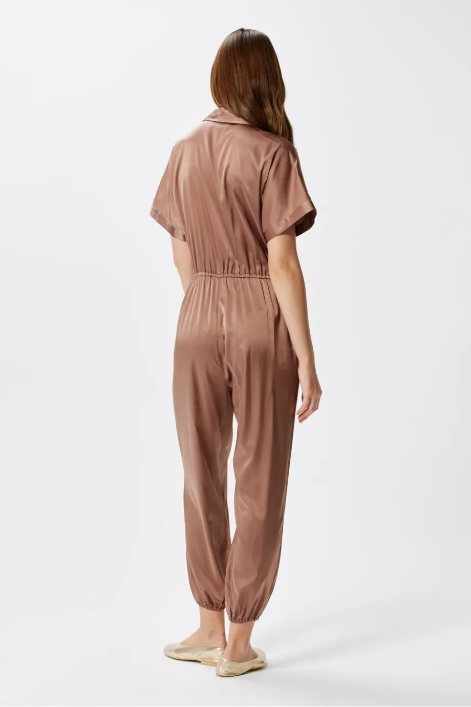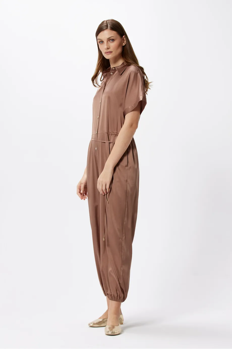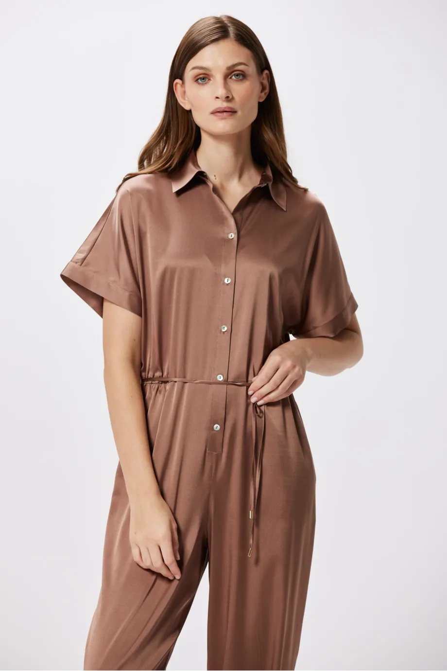 Salopetă elegantă din mătase, maro