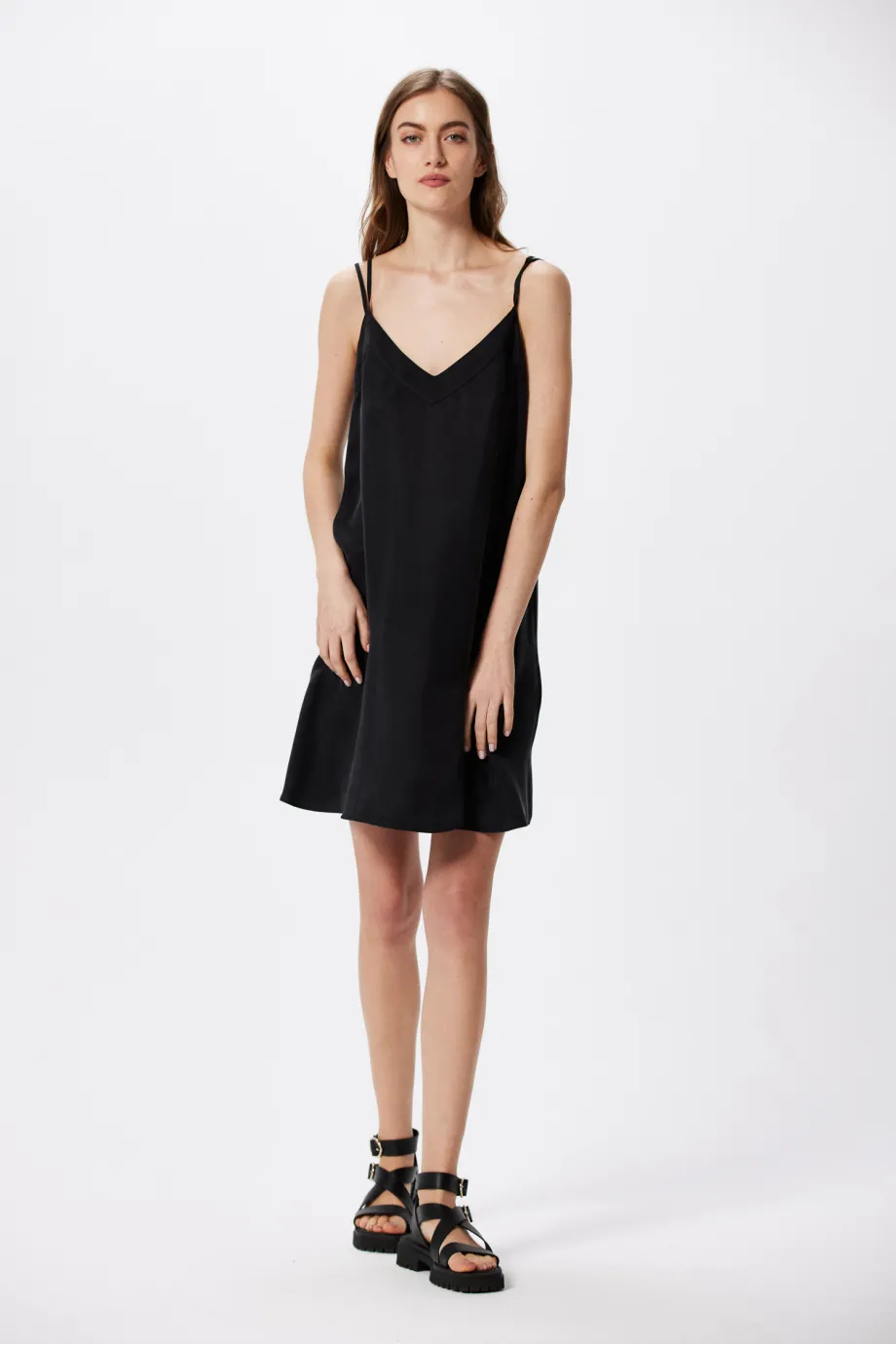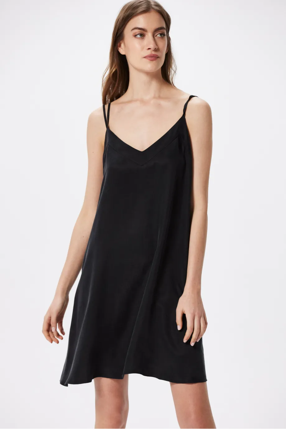Capsula Altro din care provine această rochie neagră de vară cu bretele subțiri este inspirată de amintirile de călătorie și de momentele petrecute de relaxare în cele mai frumoase colțuri ale lumii. Deși croiala și culoarea sugerează stilul de seară, va fi perfectă și ca bază pentru ținute de plajă sau pentru o escapadă urbană de vară. Descoperă toate posibilitățile de stilizare în spiritul celor mai tari tendințe ale acestui sezon!