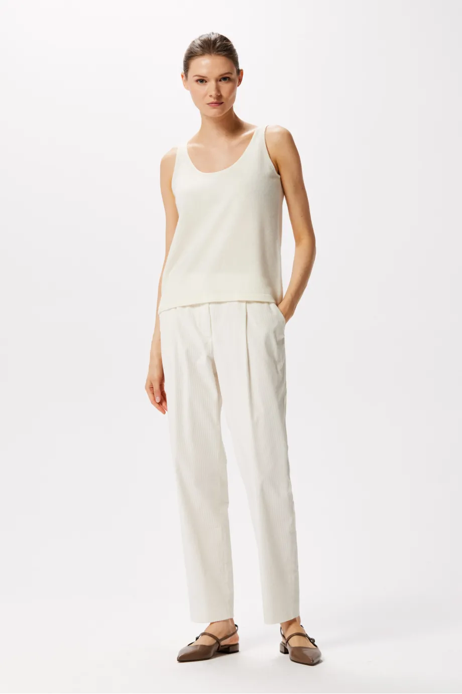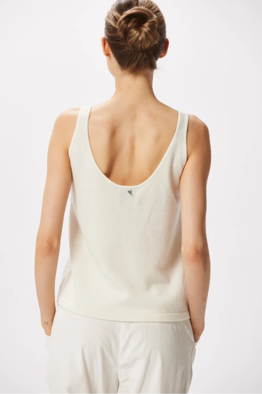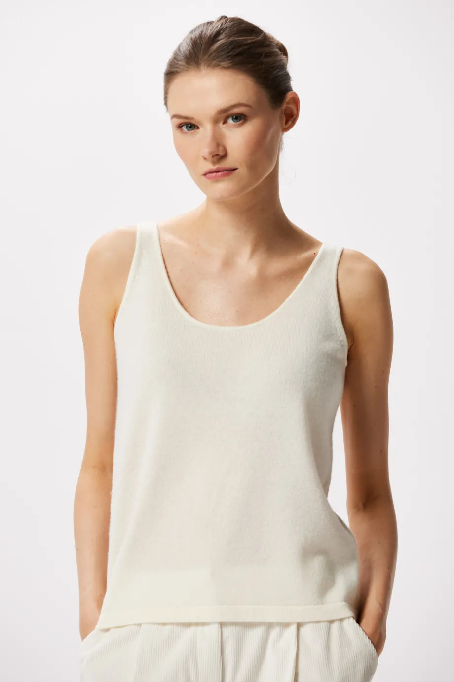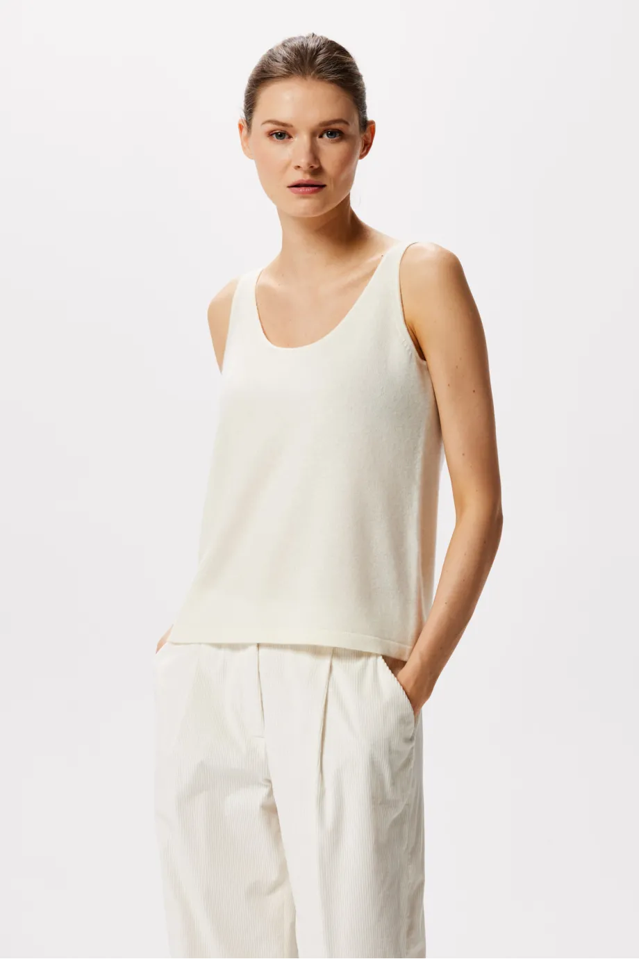 Top alb din cașmir și lână merinos