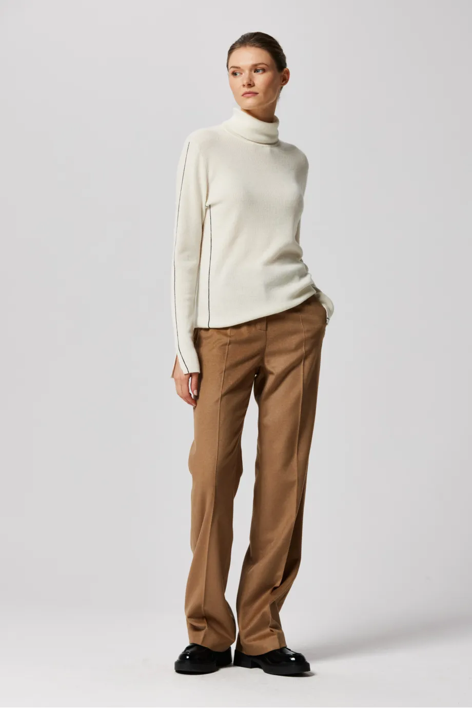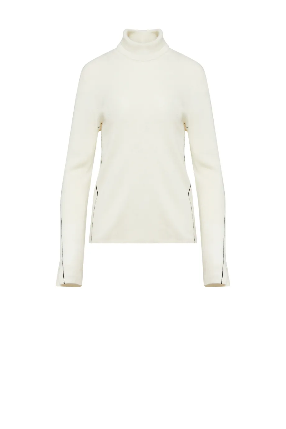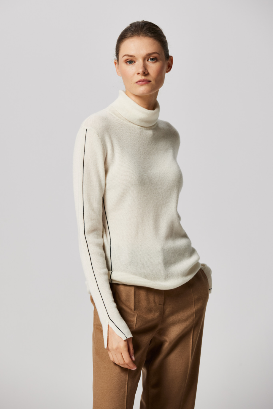 Pulover cu guler înalt din mătase şi caşmir, alb