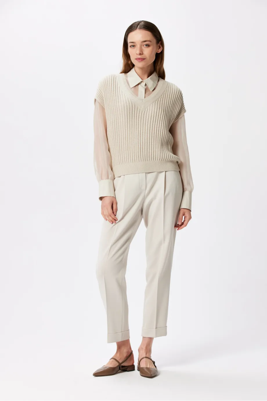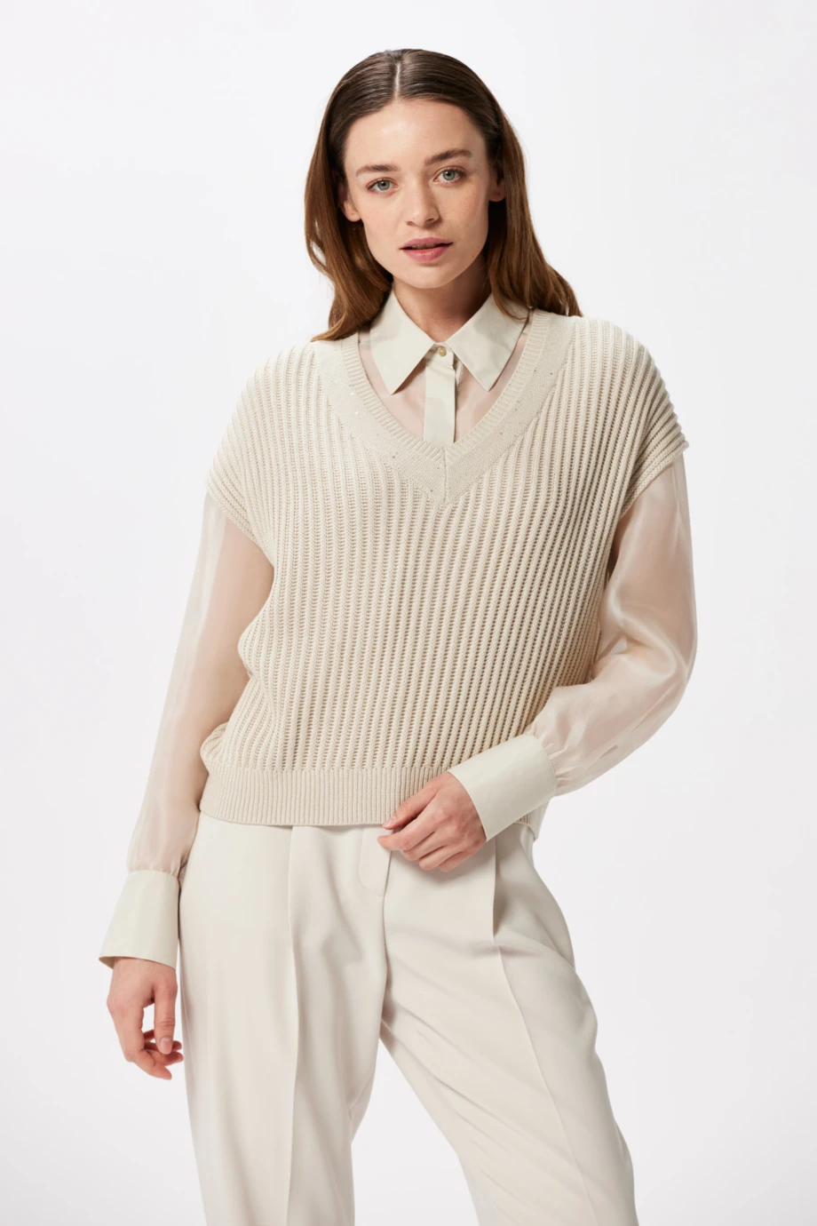 Bluză tricotată lejeră din mătase, decolteu în V tip vestă