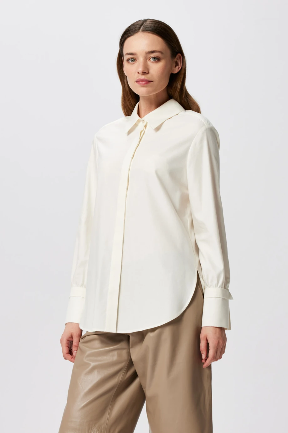 O reinterpretare rafinată a cămășii clasice, realizată din materiale premium, ideală pentru ținute sofisticate cu accente feminine subtile.Dacă sunteți în căutarea unei piese sofisticate al cărei atractivitate constă în croiala șic cu detalii feminine, nuanța flatantă și calitatea inegalabilă a țesăturilor, încercați noua noastră achiziție, cămașa crem din mătase și lână de la Patrizia Aryton.