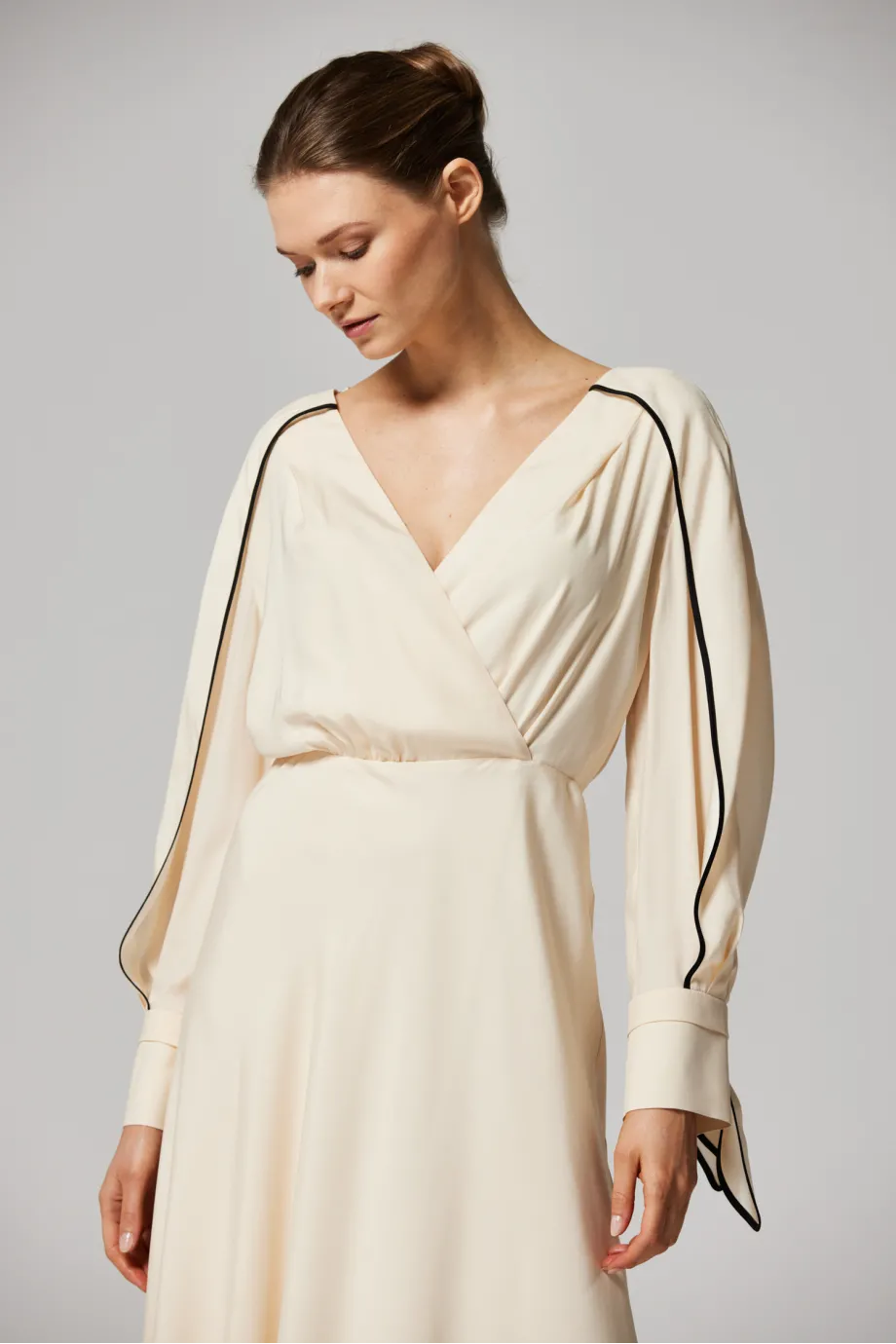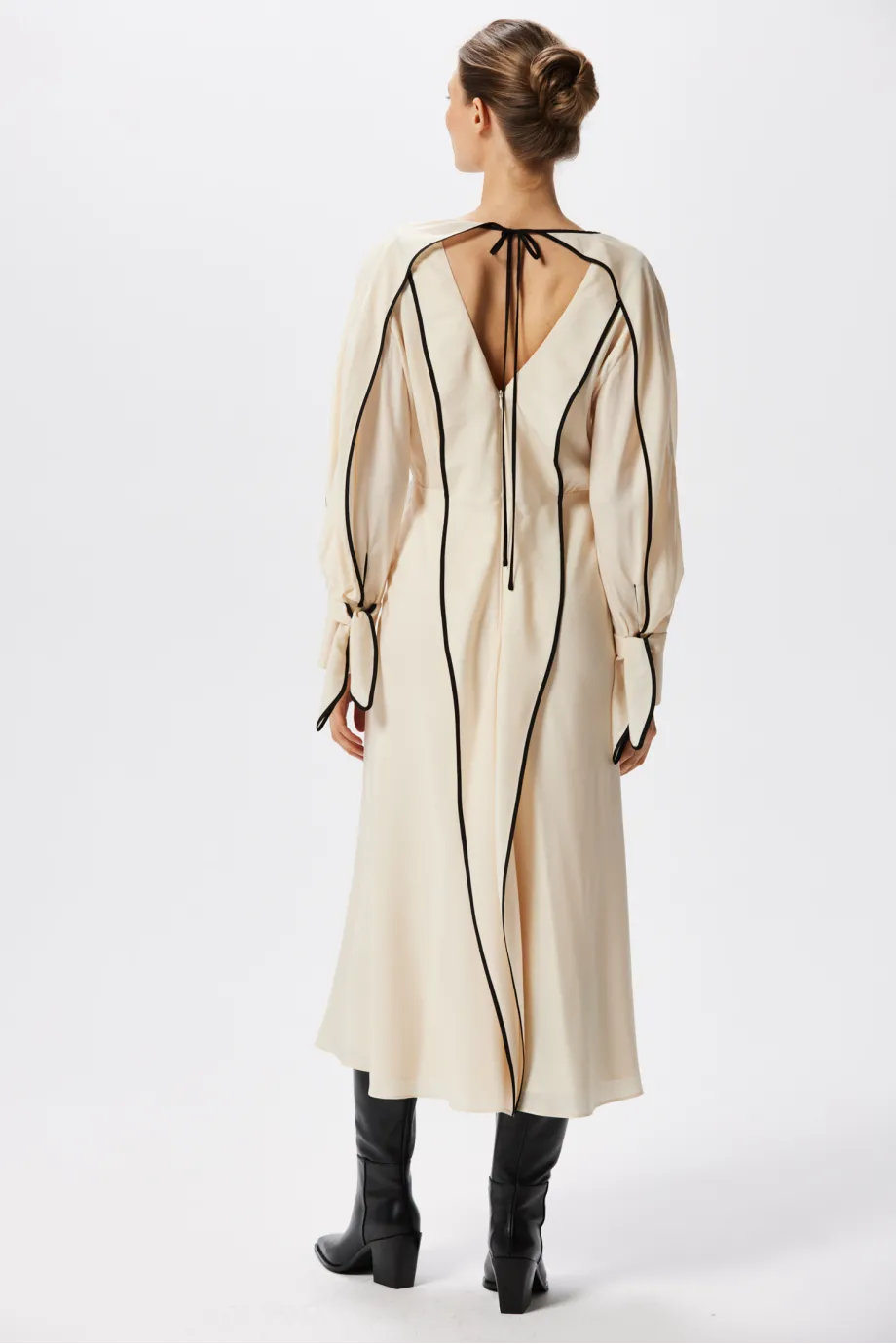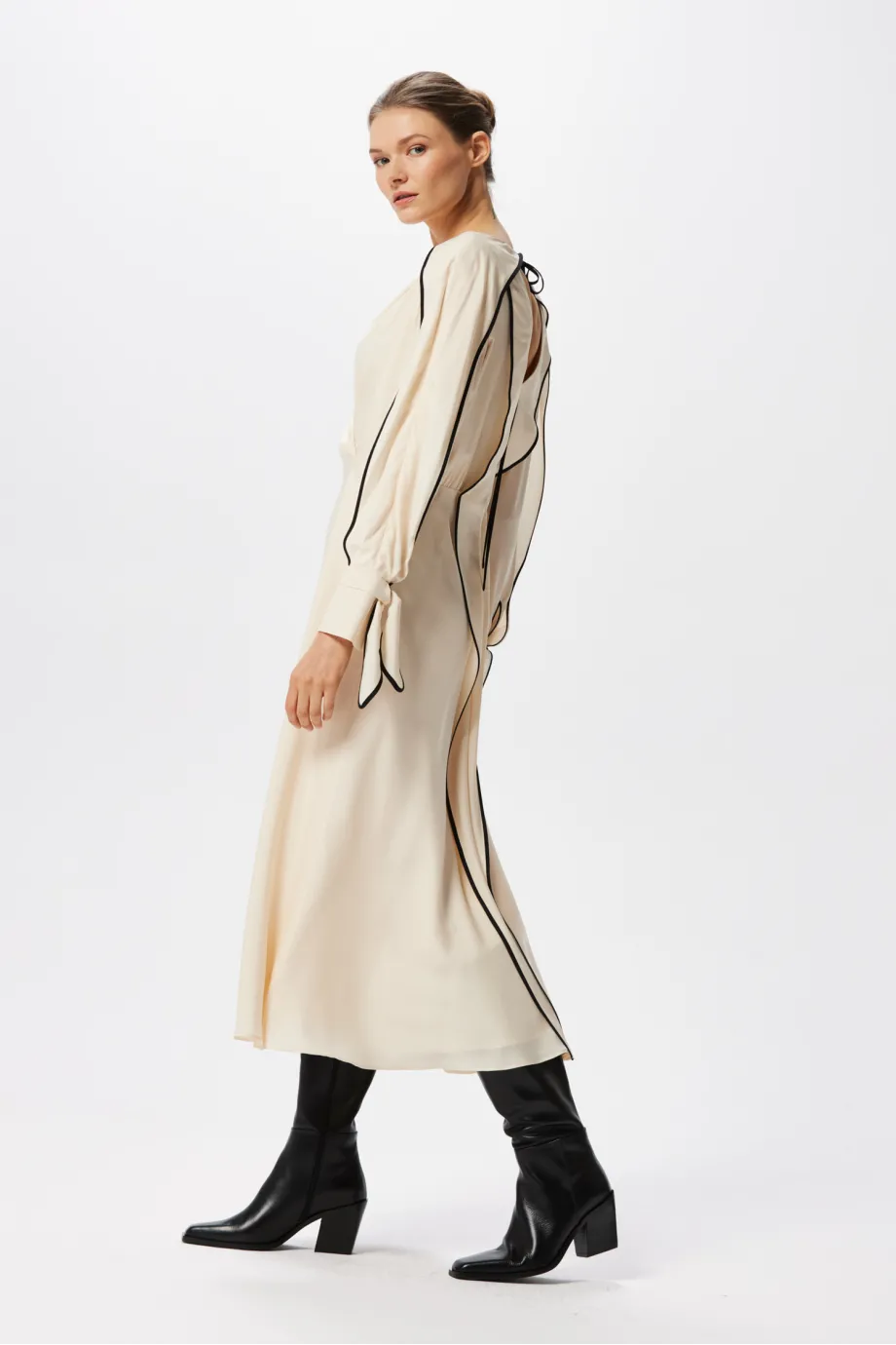 Rochie din mătase cu paspoal negru