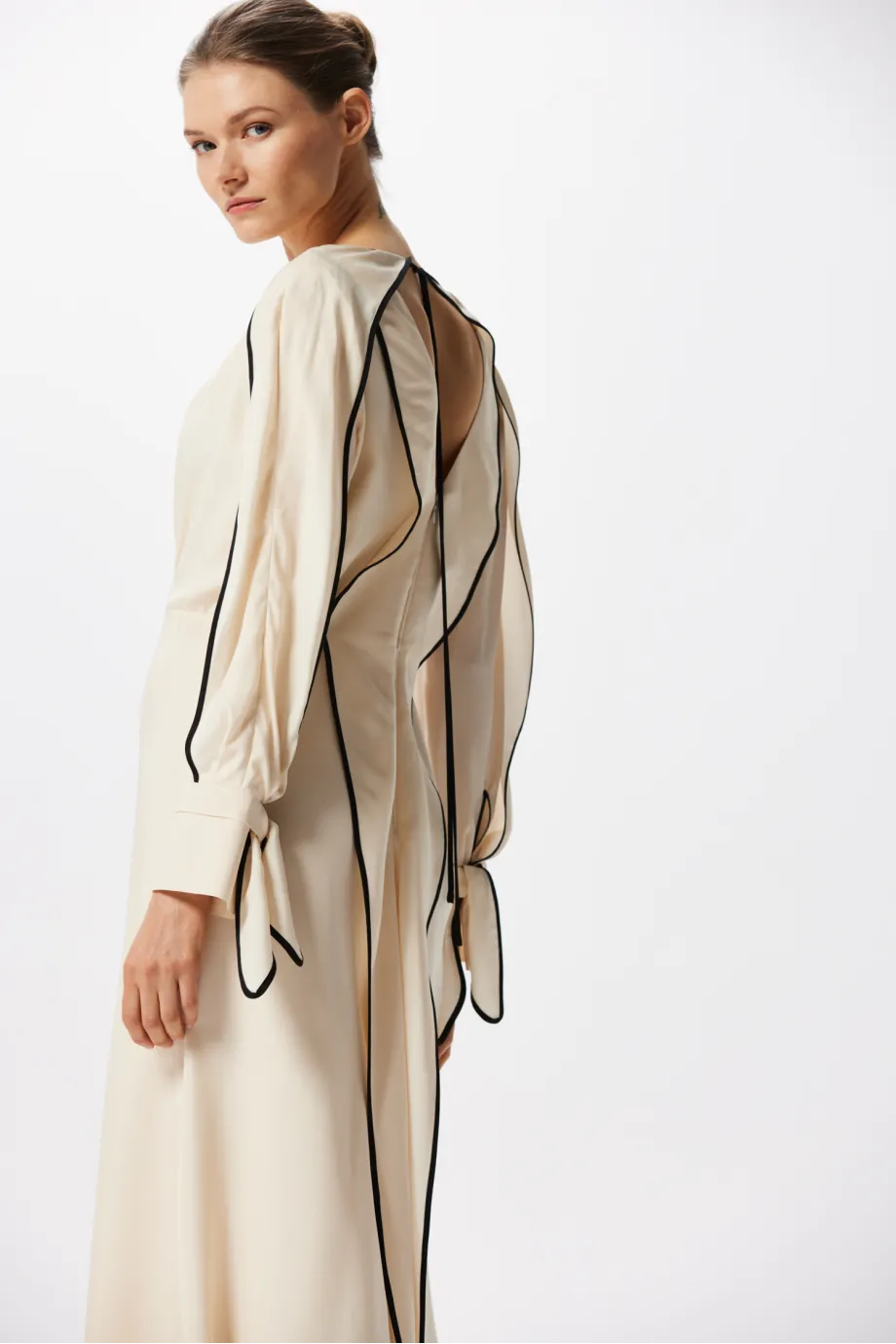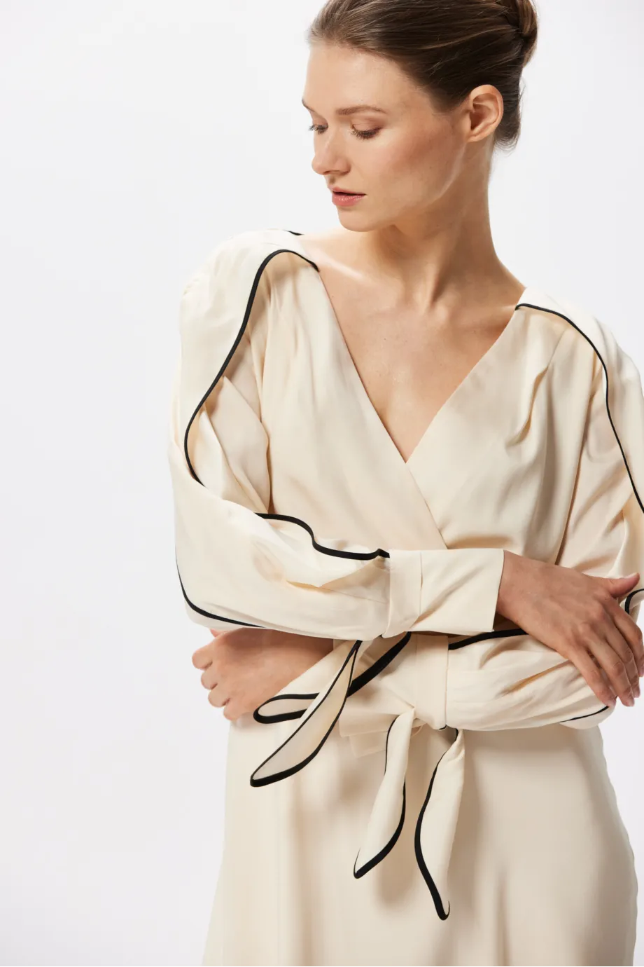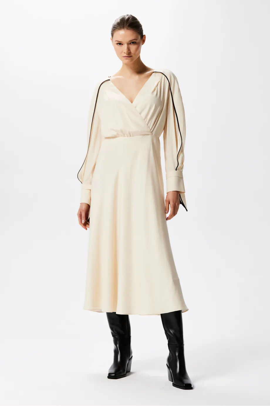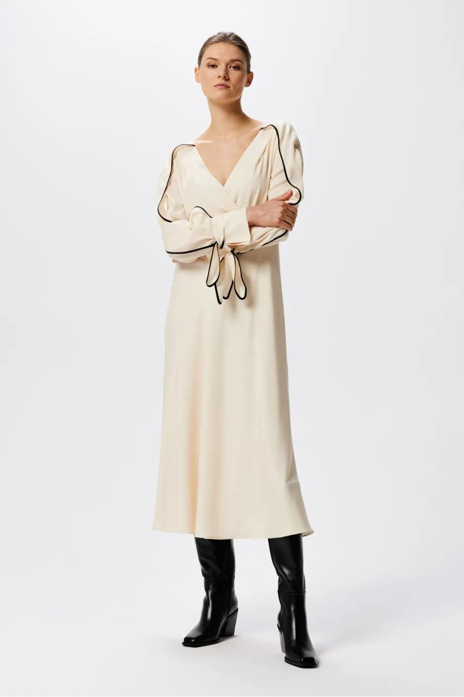 Rochie din mătase cu paspoal negru