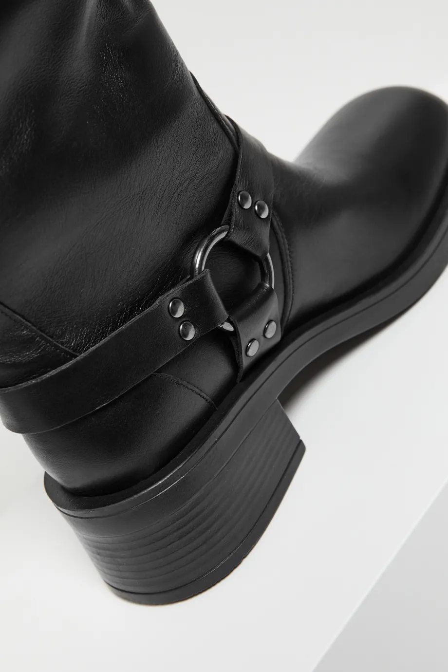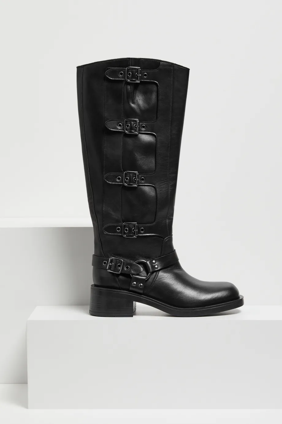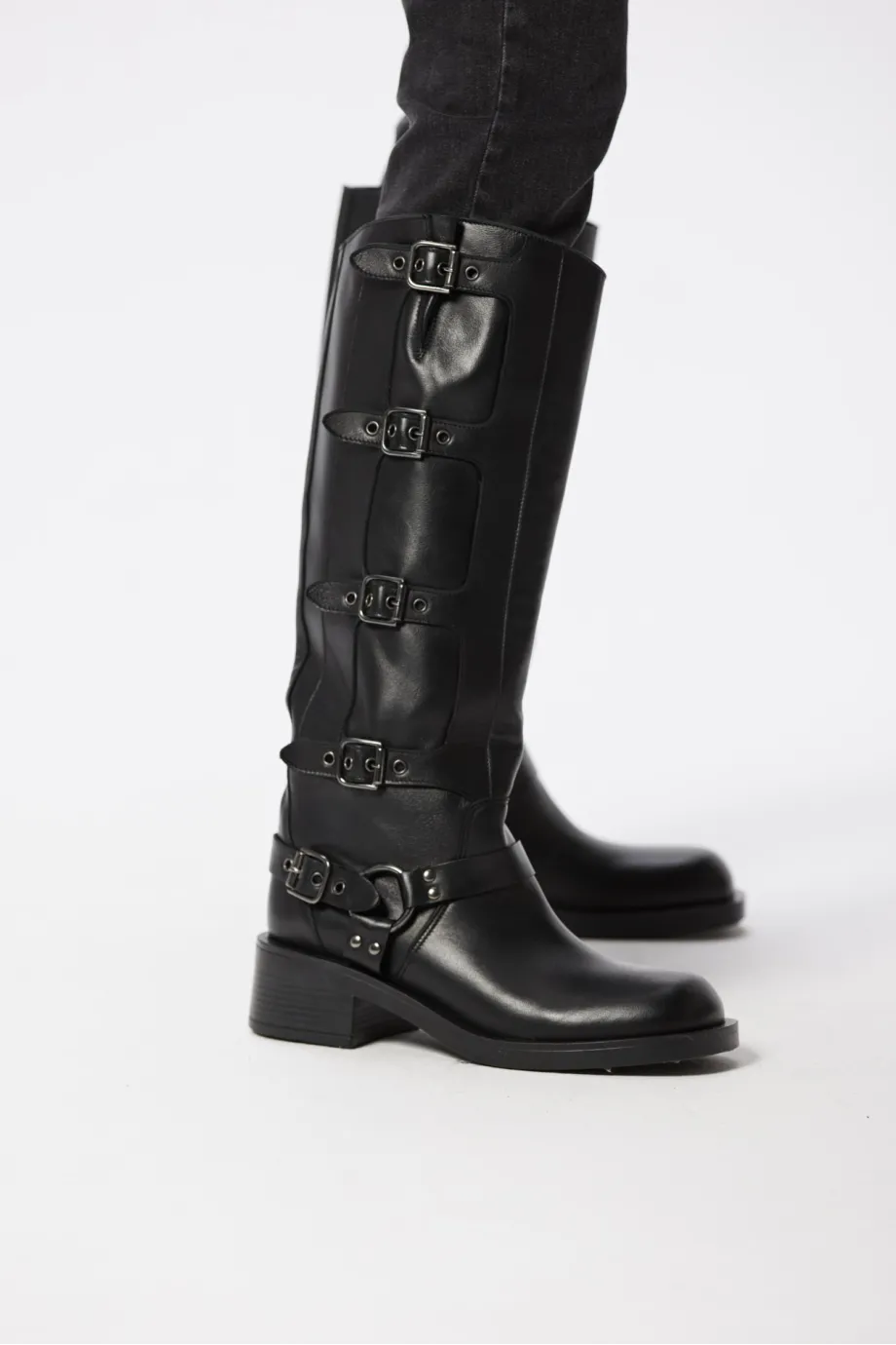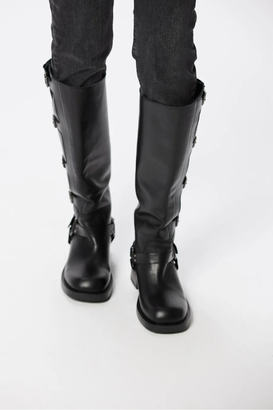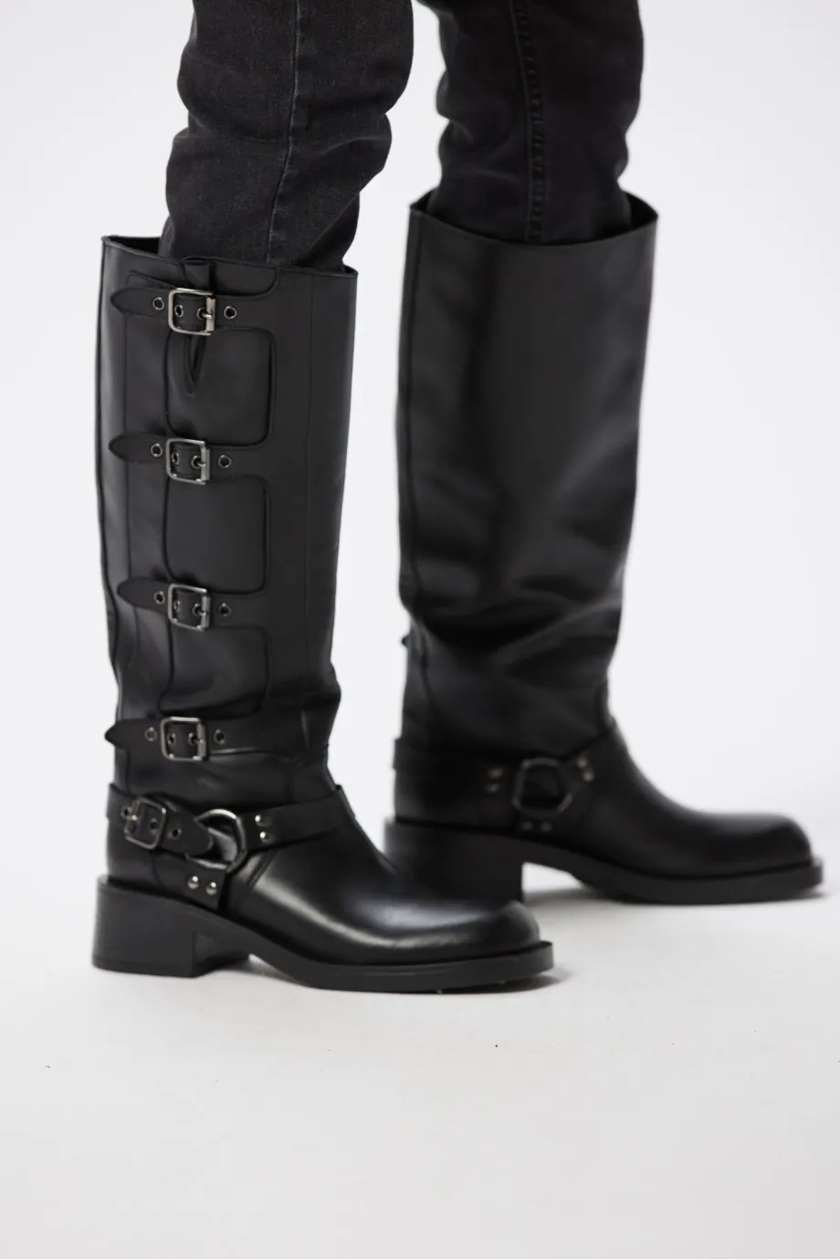 Cizme din piele naturală cu catarame, negre