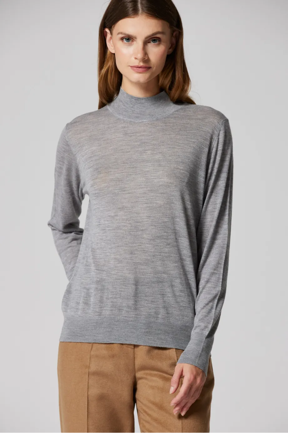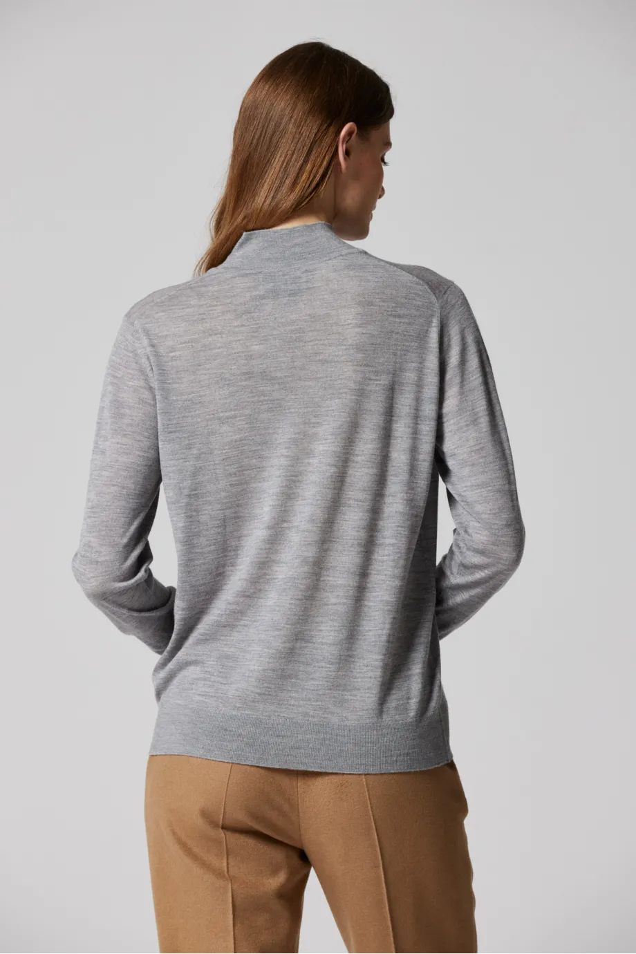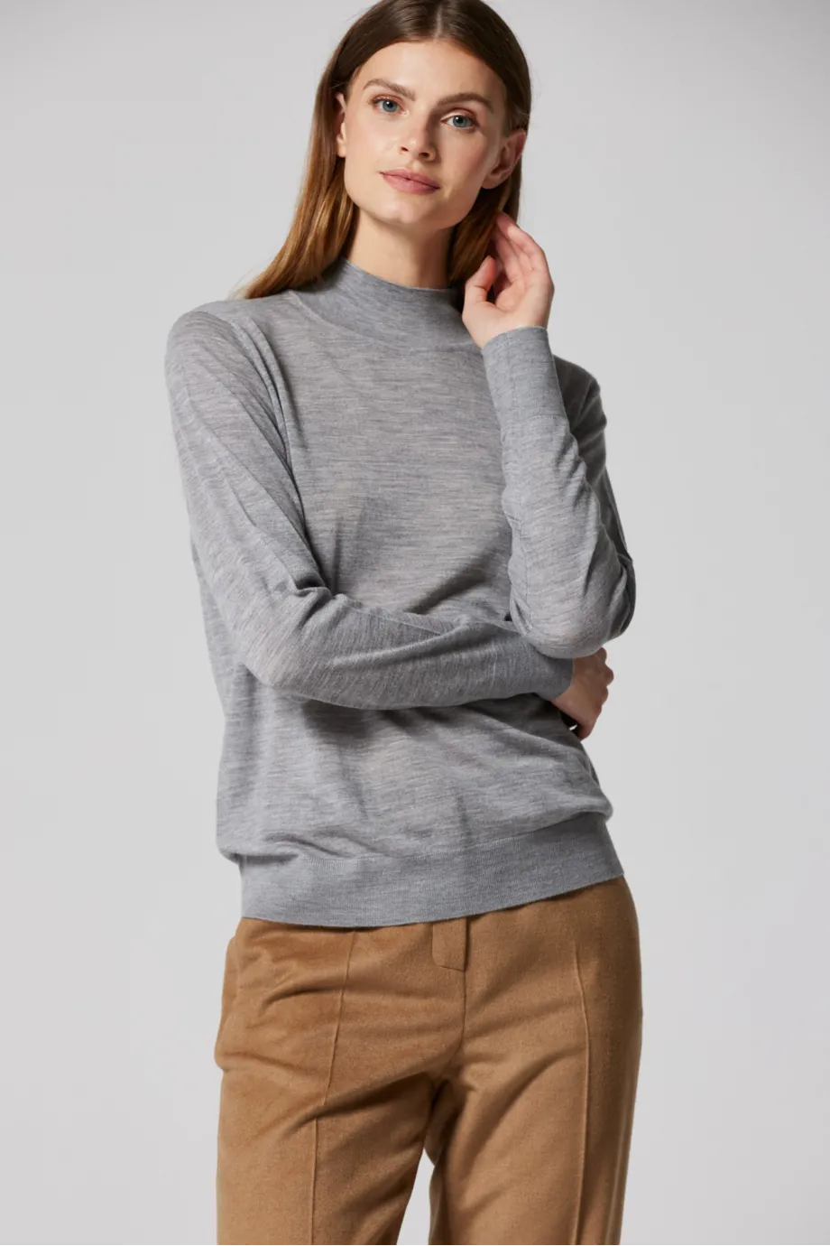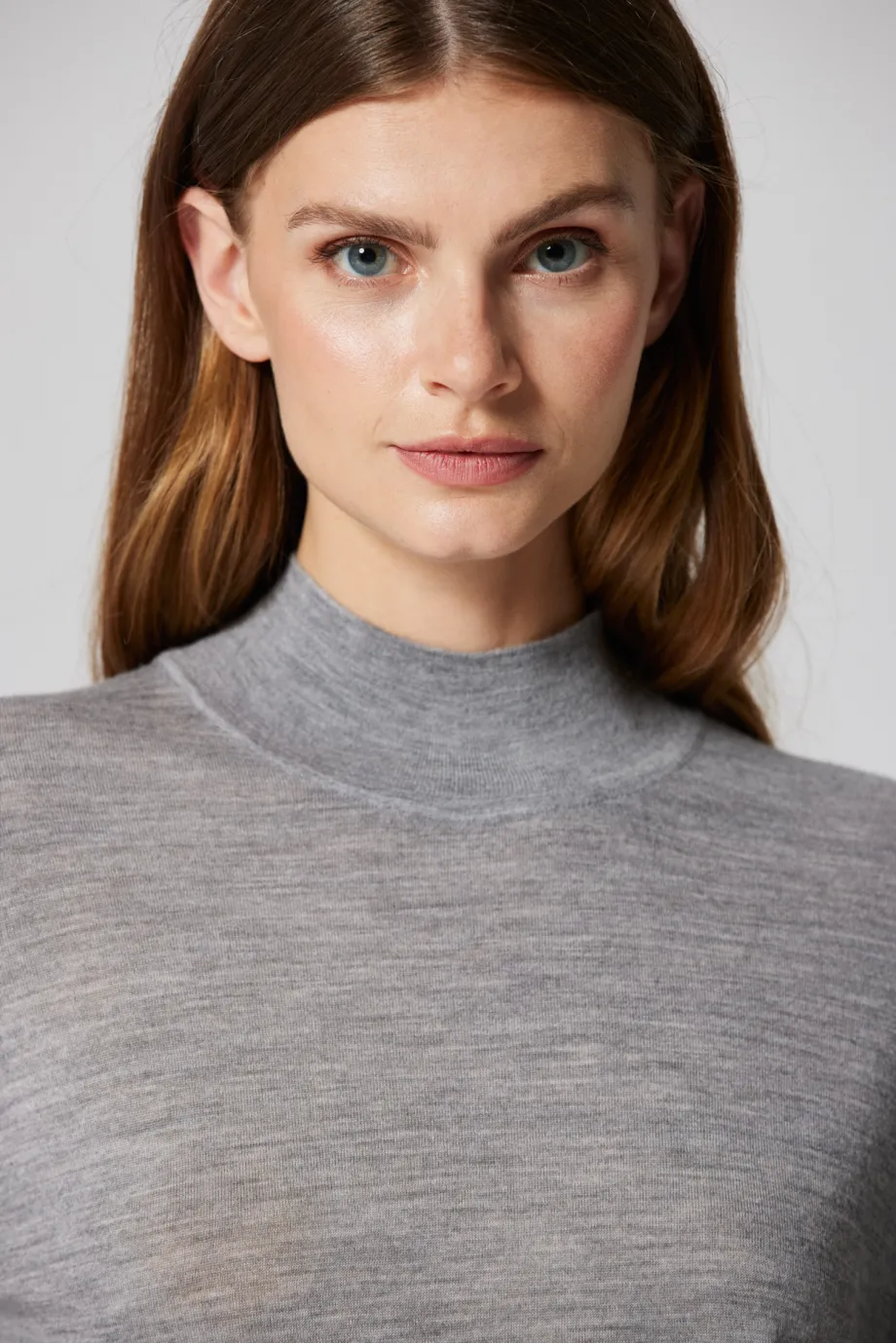 Bluză Julia cu guler semi-înalt din lână merinos, gri