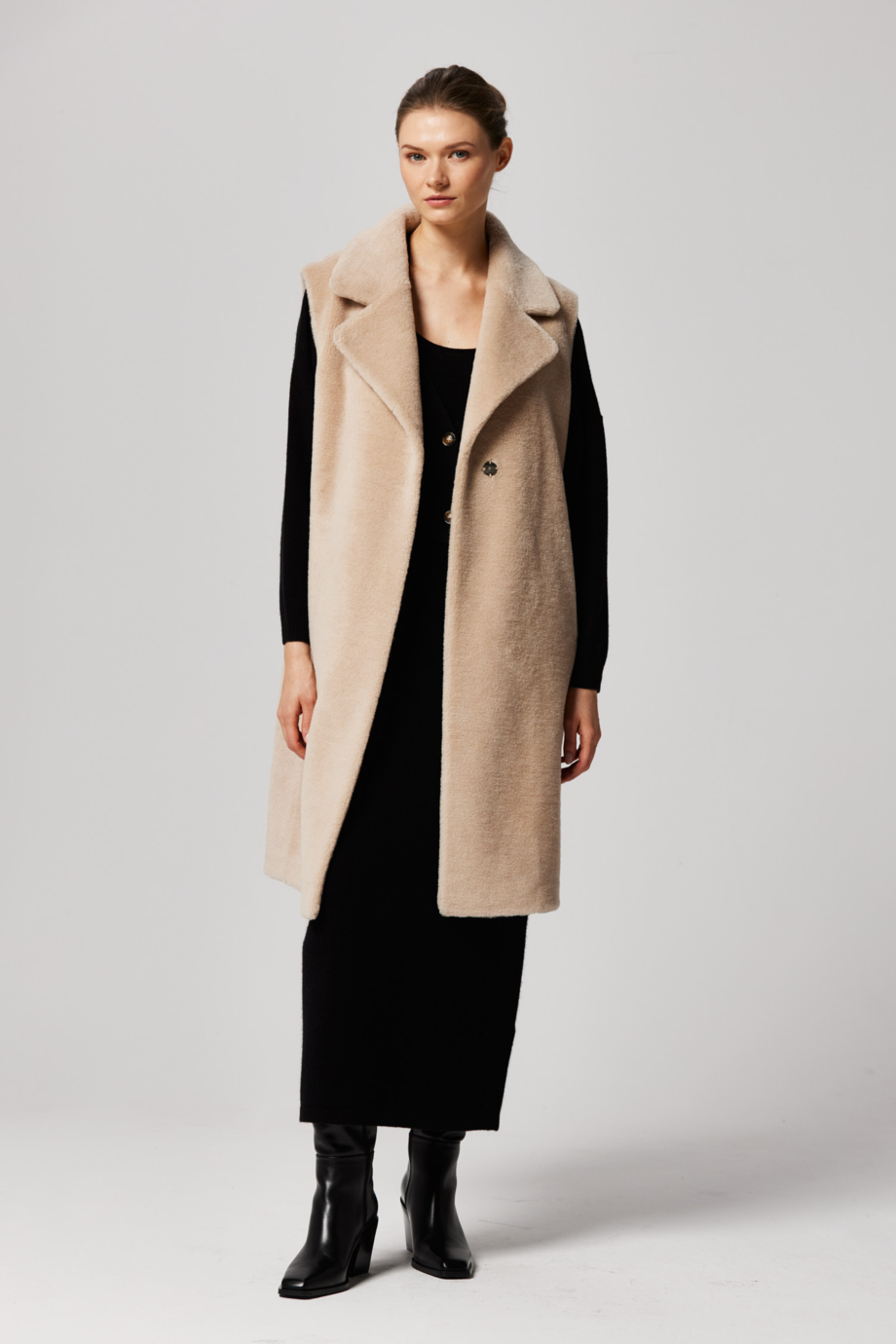 Vestă lungă bej din lână teddy bear