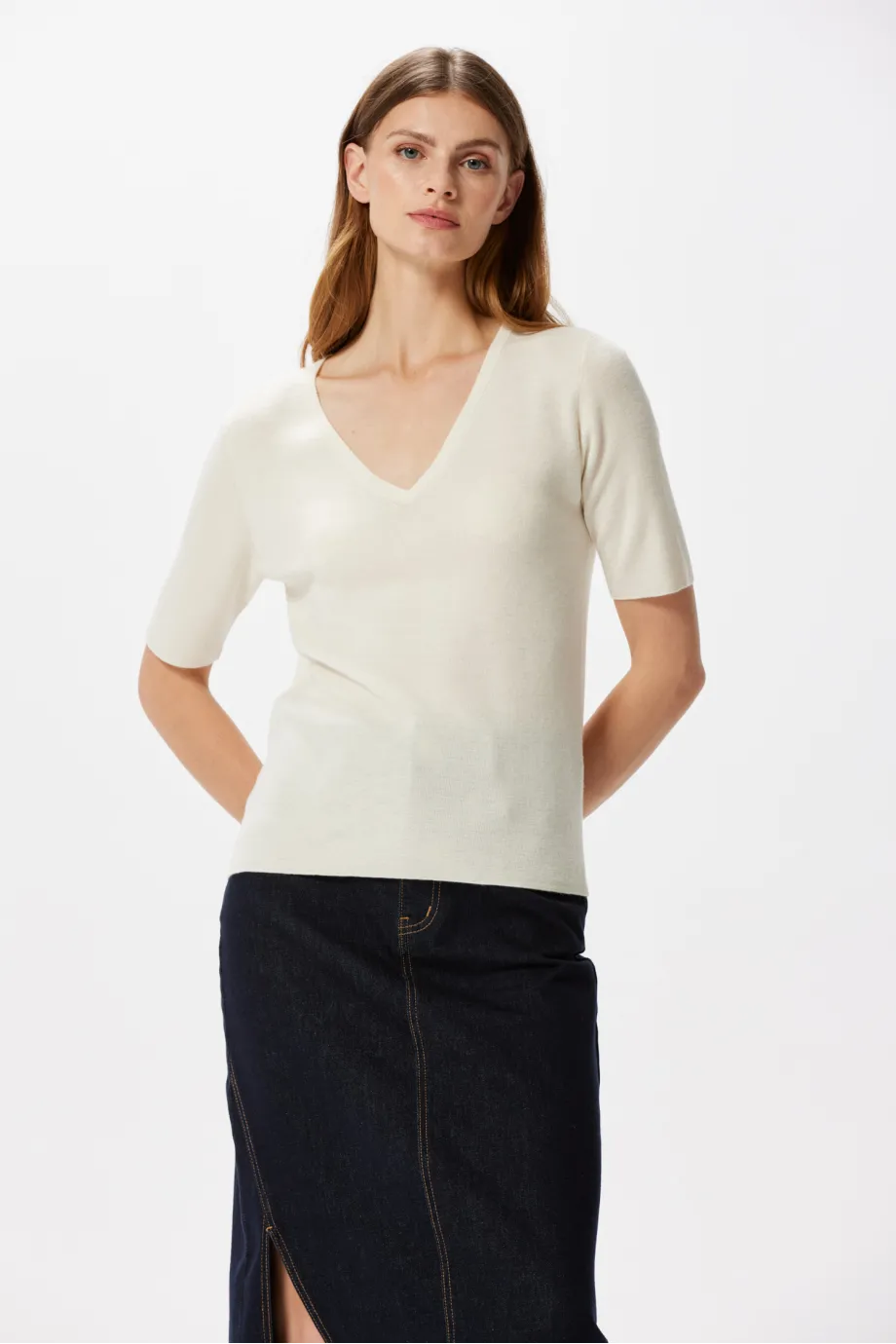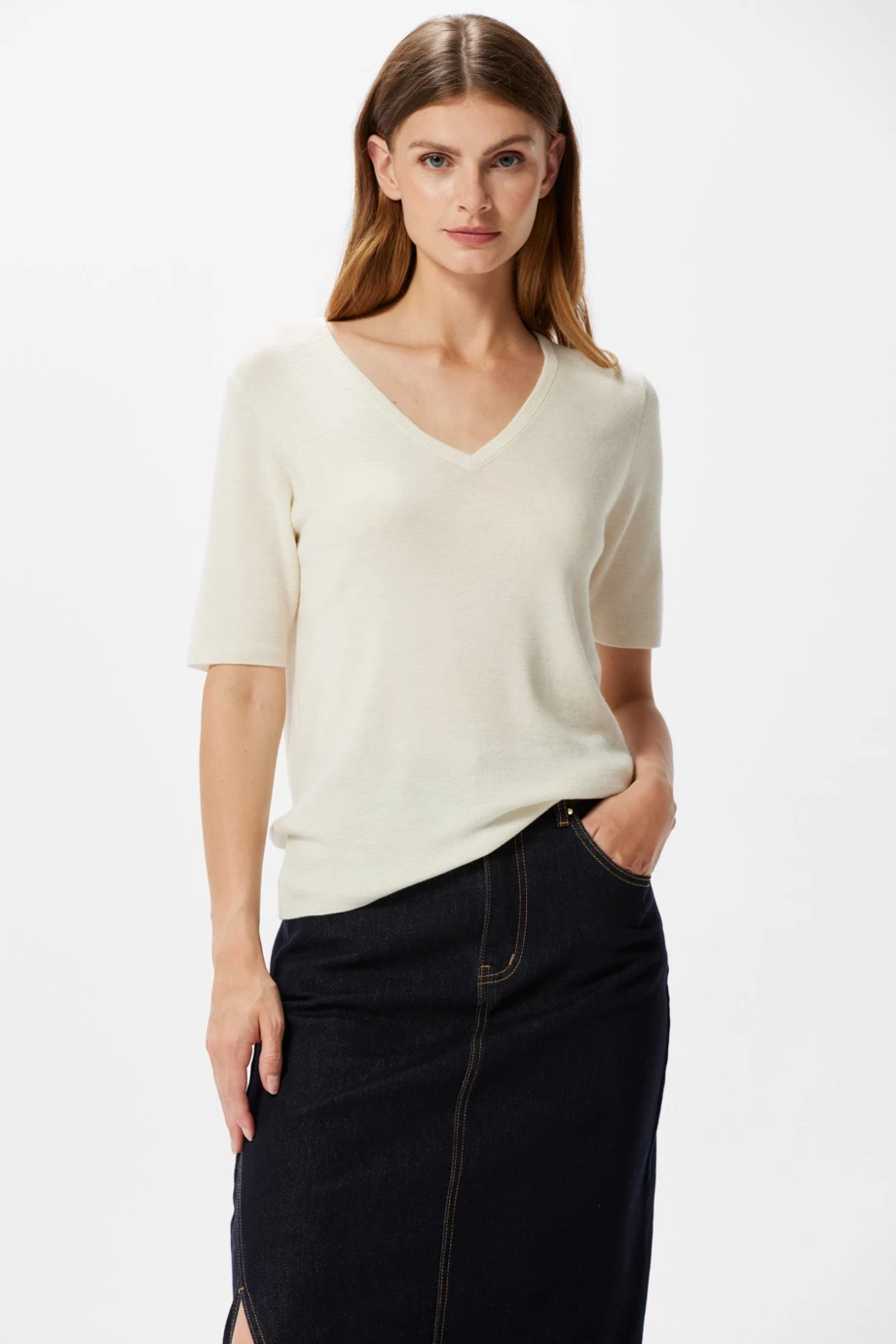 Cauți o bluză care îmbină finețea, stilul clasic și eleganța discretă? Această bluză alb-crem cu cașmir este alegerea ideală pentru femeile care apreciază tricoturile de calitate superioară și designul atemporal. O piesă de bază elegantă, potrivită atât pentru ținute de zi, cât și pentru apariții elegante – descope