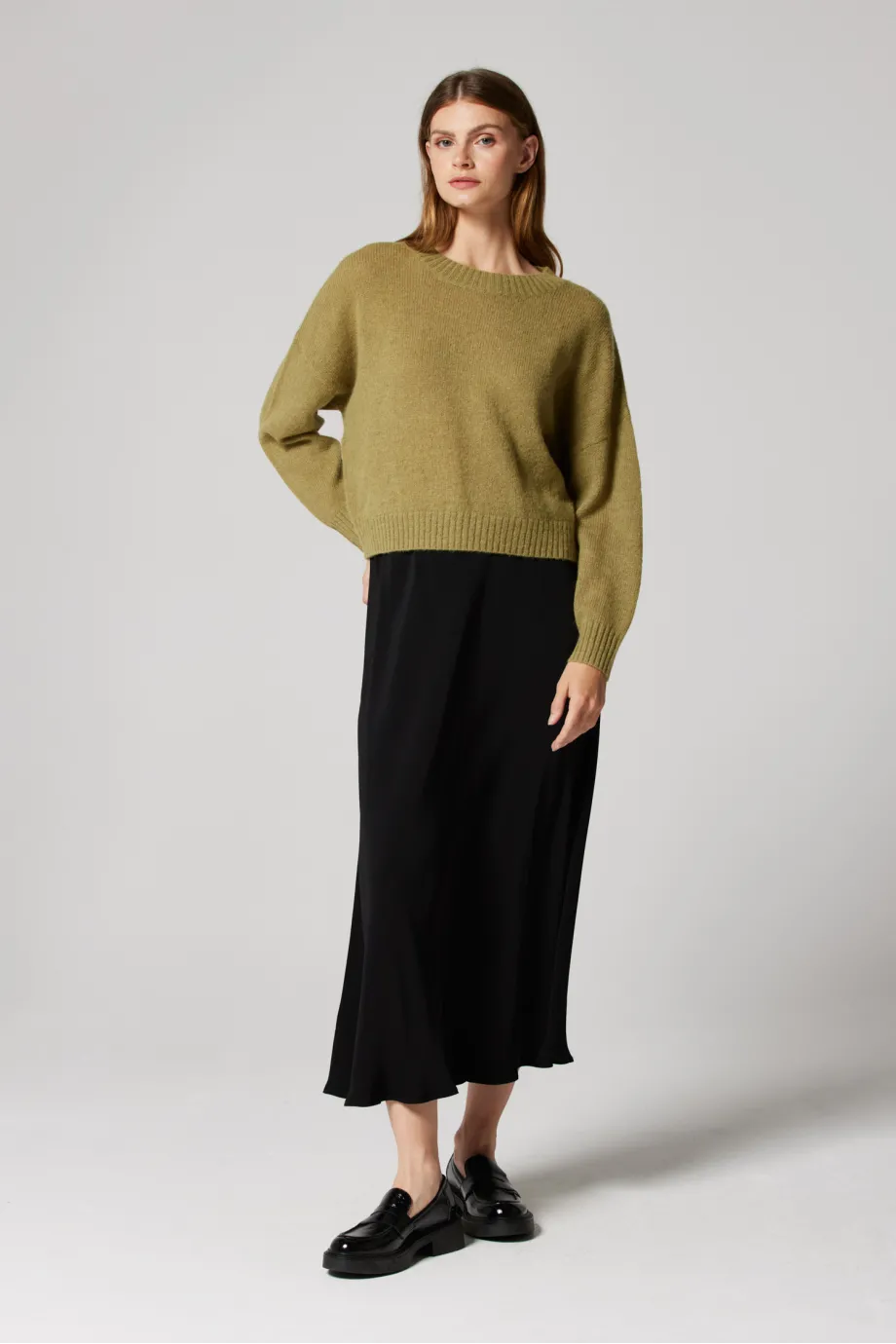 Pentru toate iubitoarele de culorile îndrăznețe, texturilor confortabile și fineții catifelate, avem o adevărată bijuterie – un pulover călduros din lână pentru femei, într-una dintre cele mai la modă nuanțe de verde. Acest pulover discret, cu decolteu rotund, poate deveni baza celor mai sofisticate ținute de zi cu zi de toamnă și iarnă.