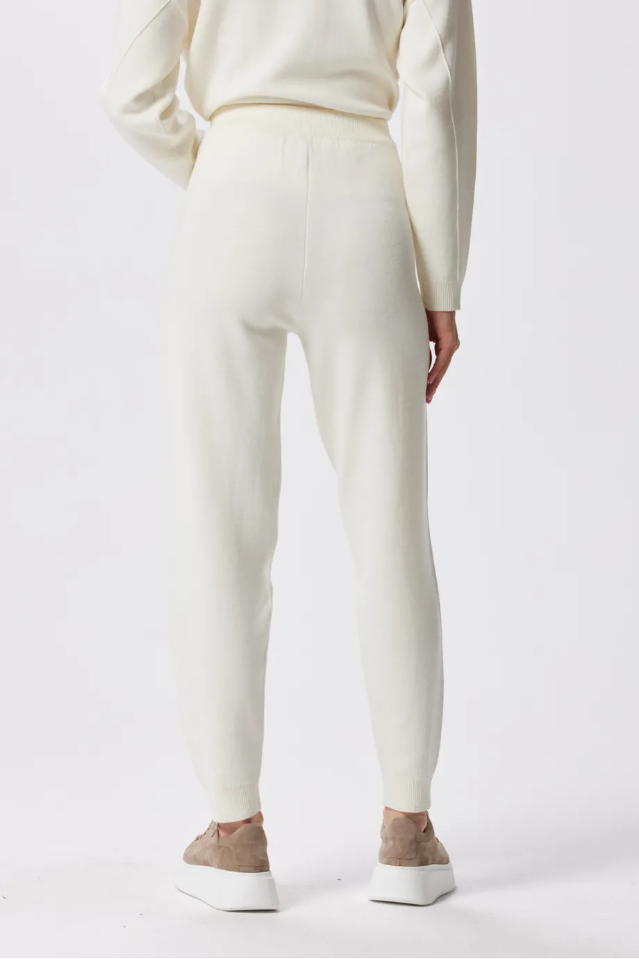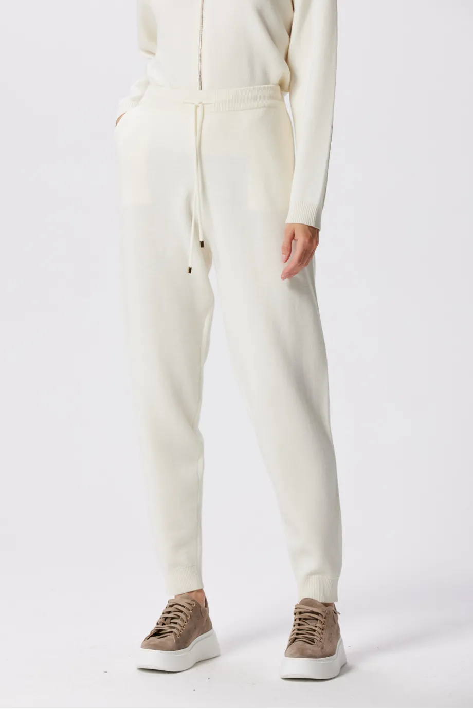 Croiala pantalonului ușor conic spre bază, terminat cu manșetă elastică
