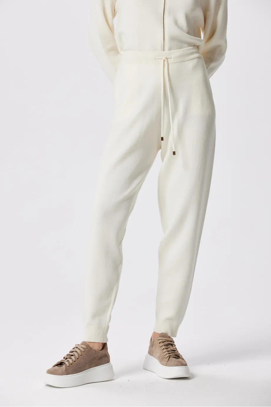 Pantaloni lejeri din lână merinos, crem