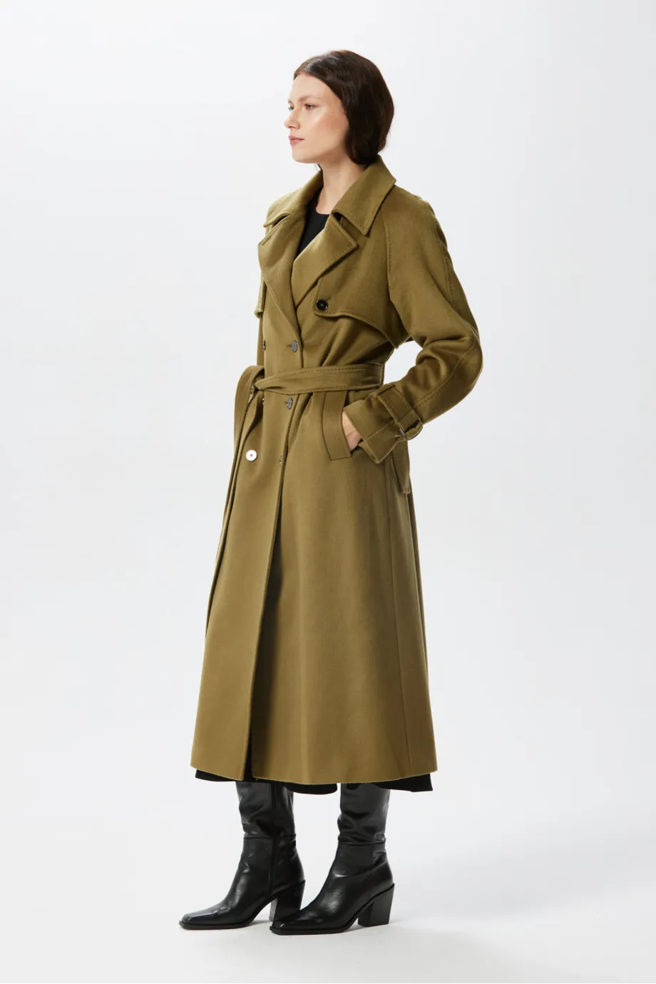Winter Casual se remarcă prin finețe și senzualitate, oferind numeroase posibilități de stilizare. Din această colecție face parte și trenciul verde din mătase și cașmir, cu un luciu subtil. Stilul său este greu de încadrat, ceea ce îl face extrem de rafinat. Acest trenci midi îmbină lejeritatea cu o notă de nonșalanță, în timp ce conturează delicat silueta feminină. Descoperă întregul său potențial.