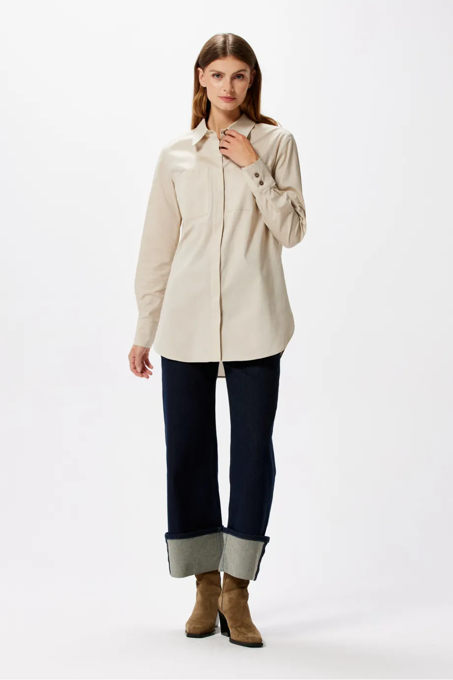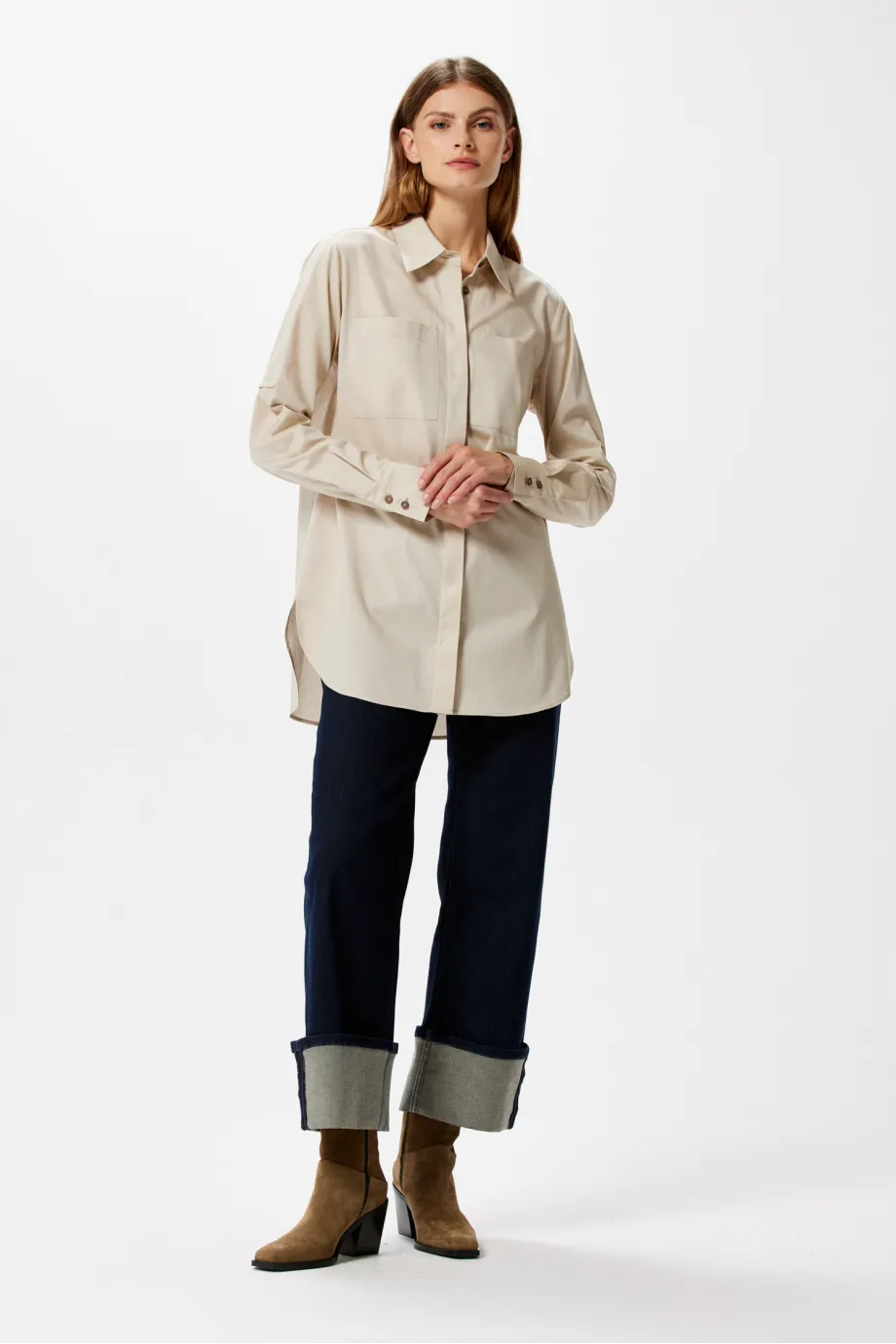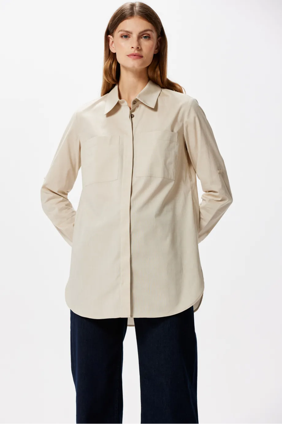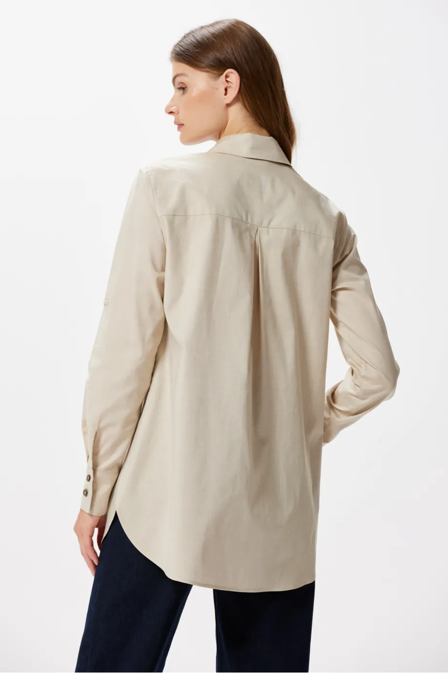 Există piese vestimentare inspirate din moda masculină care pot deveni, printr-un singur gest, extrem de feminine și senzuale. Un exemplu este această cămașă lejeră cu mânecă lungă ce poate fi prinsă. Modelul are un potențial stilistic foarte mare și permite crearea unor ținute elegante și stilate, potrivite atât pentru birou și întâlniri formale, cât și pentru evenimente de business sau vacanțe.