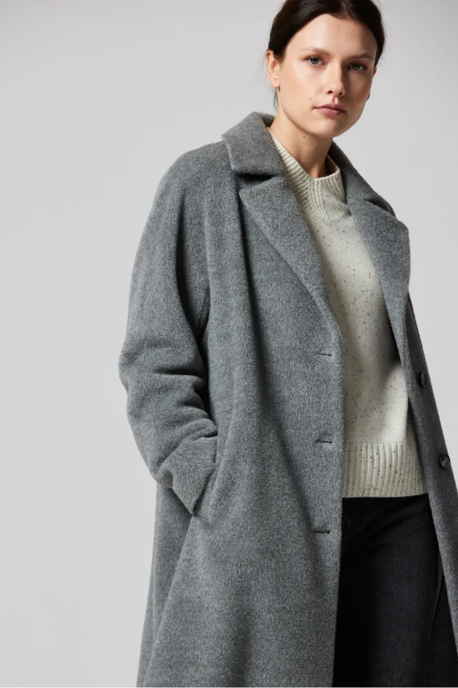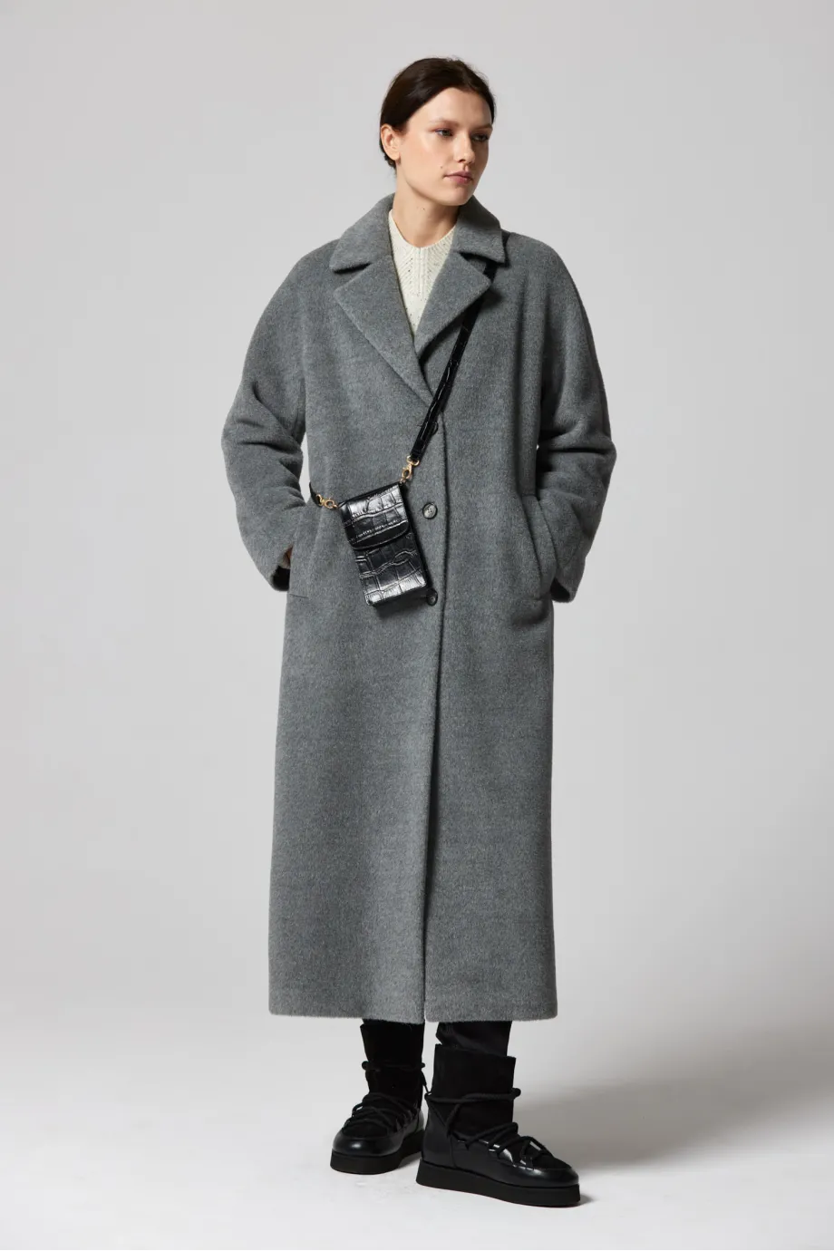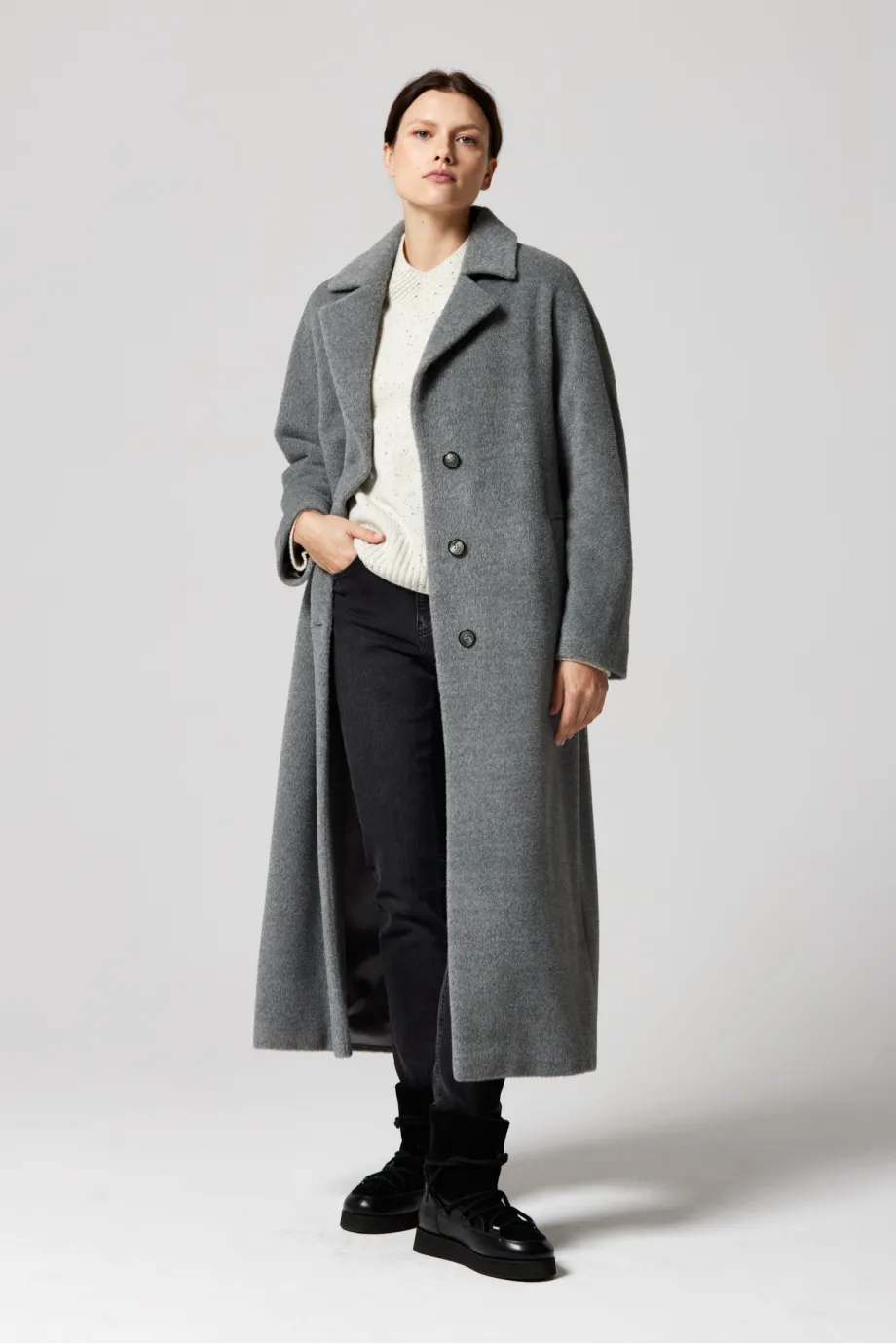 Acest palton gri din lână pentru femei este unul dintre cele mai sobre modele din colecția noastră. Croială simplă, minimum de detalii evidențează eleganța și rafinamentul. Totuși, paltonul gri cu curea Patrizia Aryton impresionează prin textura sa și nuanța melanjată, cu efect vizual puternic. Este imposibil să treci pe lângă el fără să-l remarci!