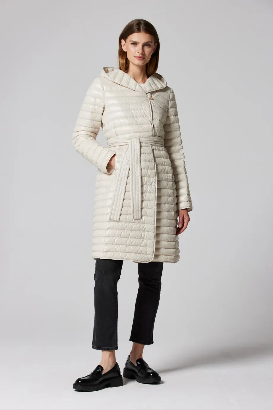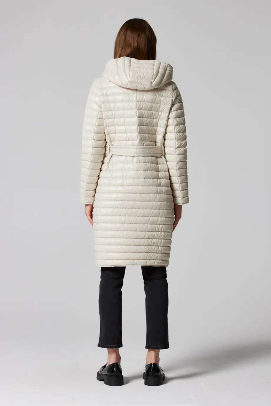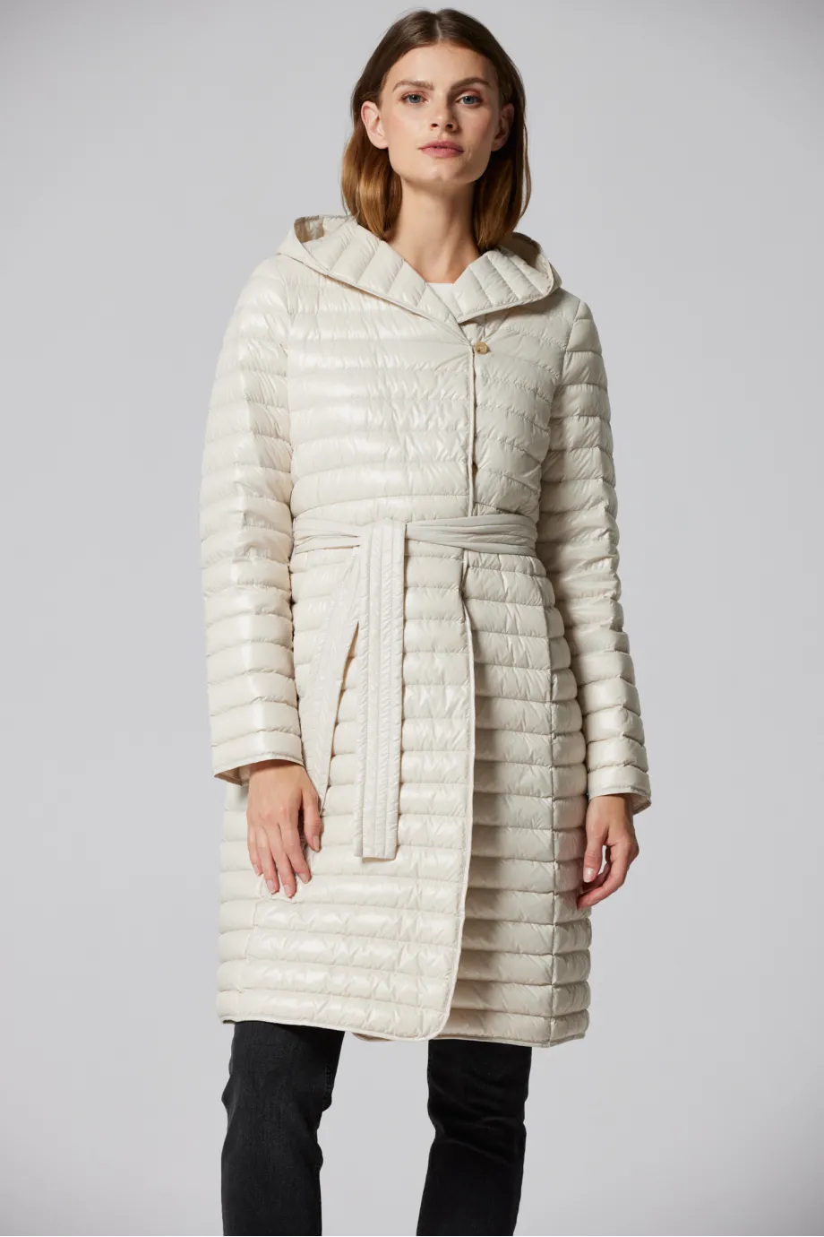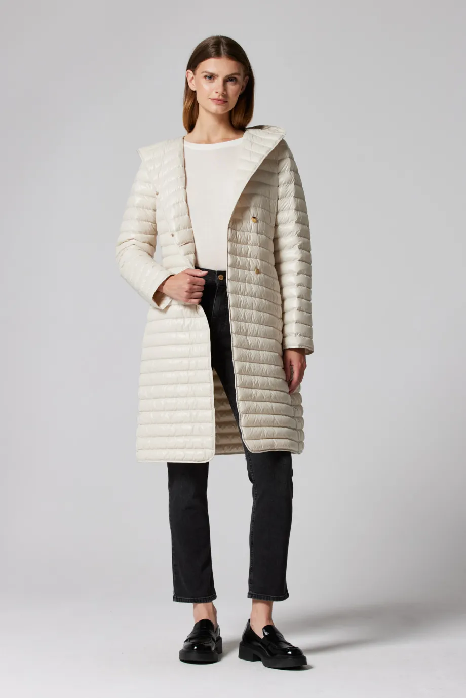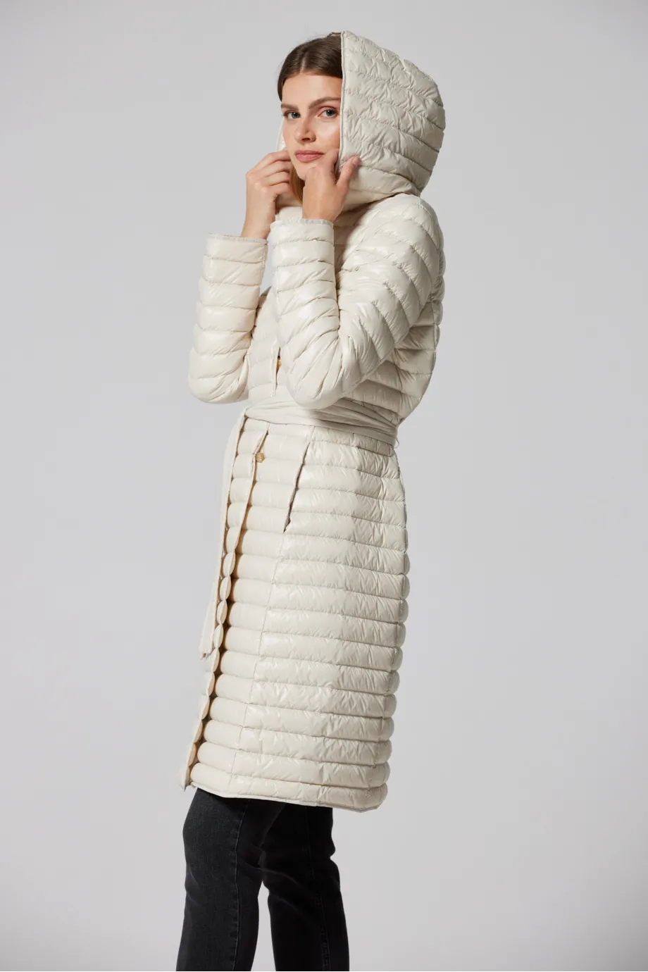 Geacă Mila bej, ușoară, din puf, cu glugă