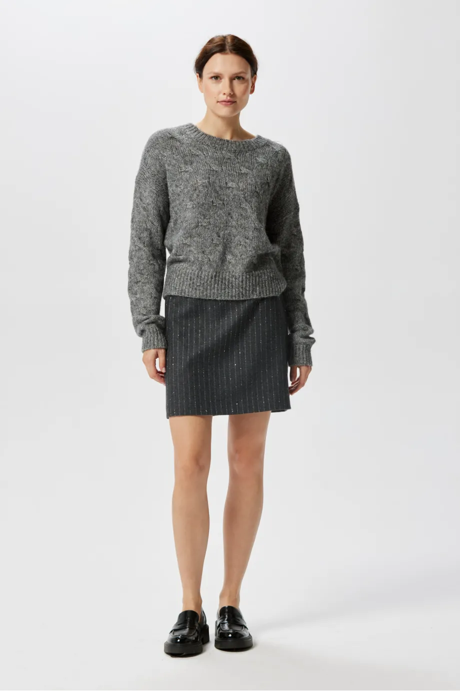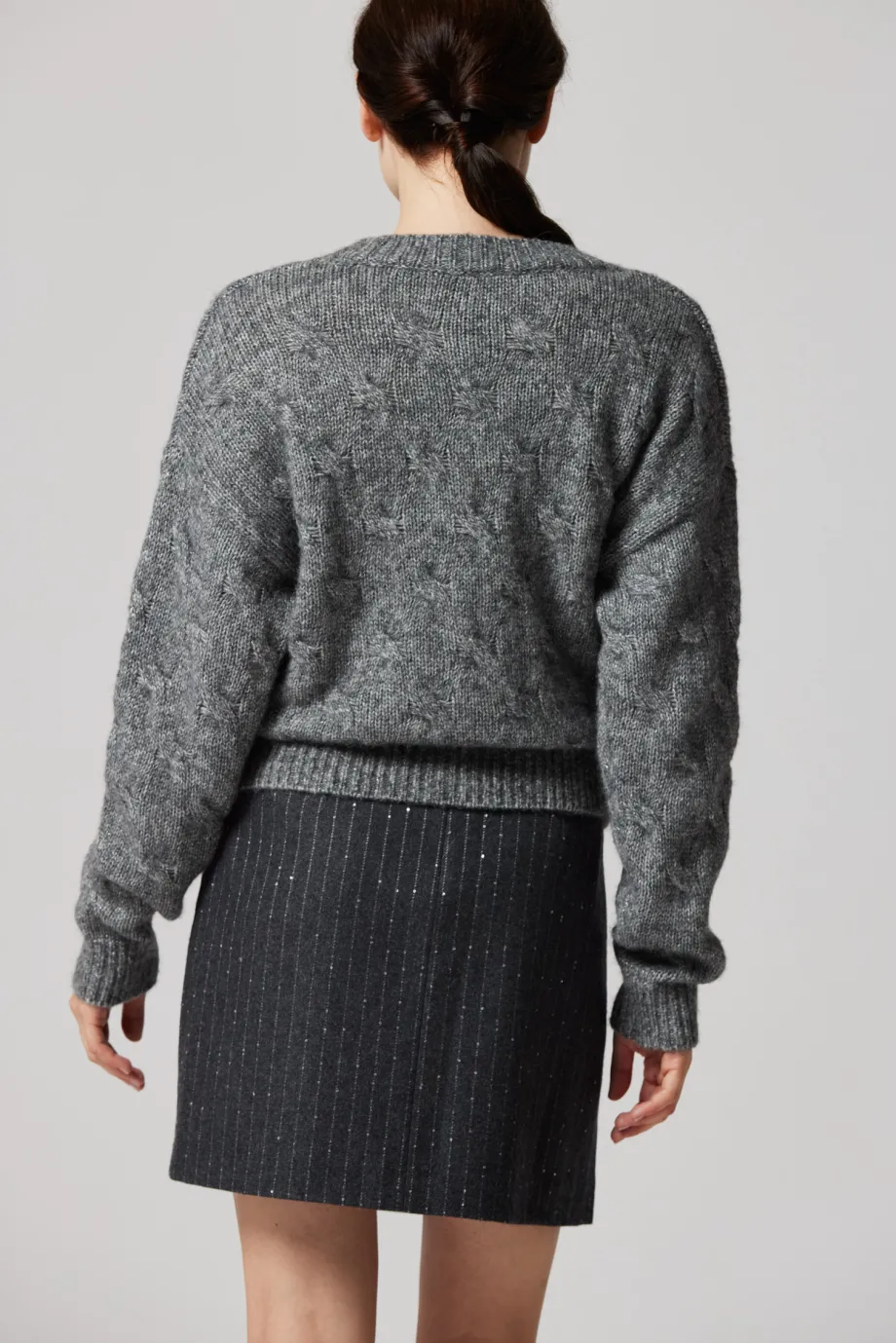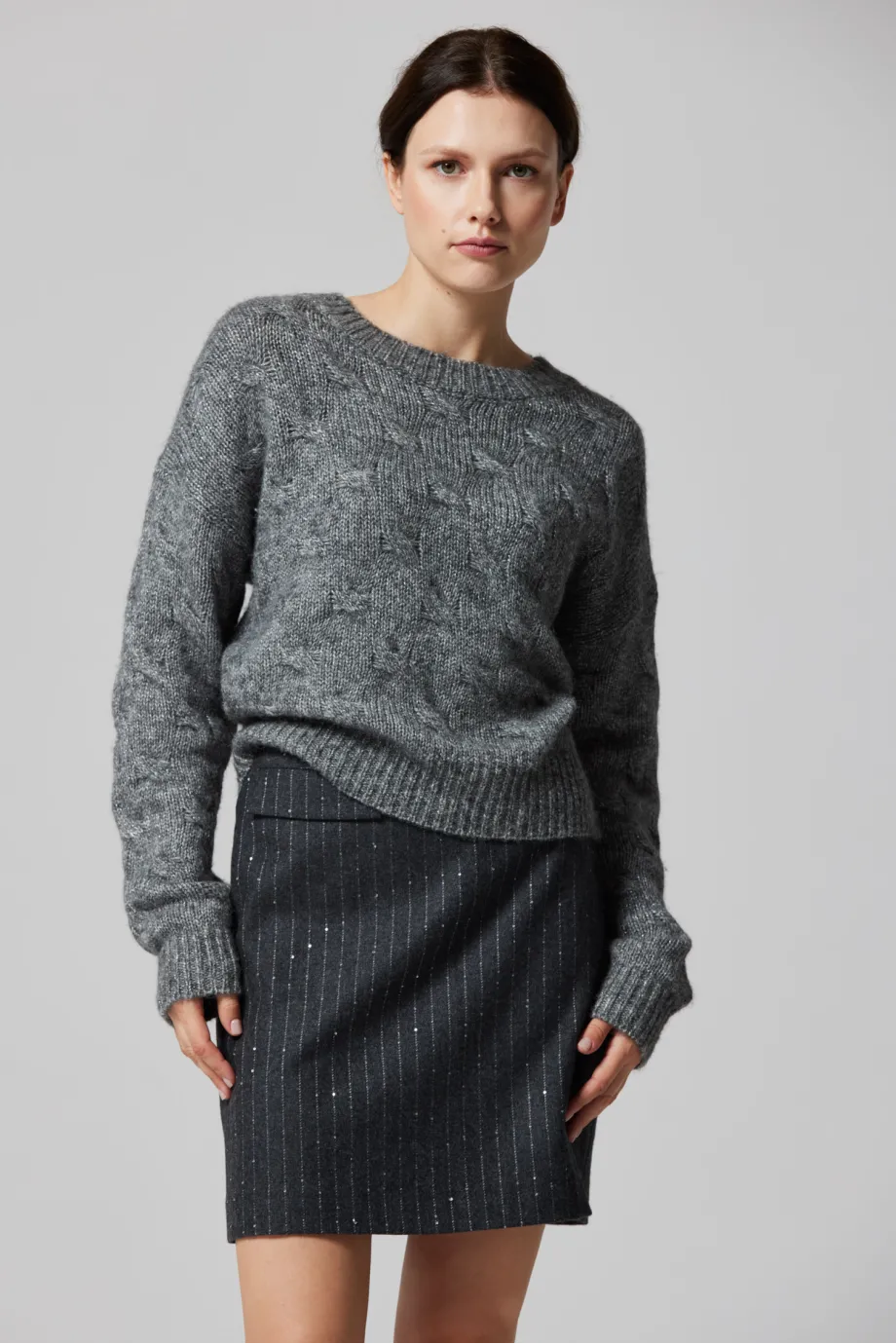 Puloverul tricotat cu mânecă lungă este o piesă care nu ar trebui să lipsească din garderoba unei femei. Acest pulover gri scurt din lână de alpaca se remarcă prin croială, culoare și compoziția sa inedită. Două tipuri de lână nobilă se îmbină cu bumbac plăcut și sunt completate de un discret efect strălucitor. Descoperă unul dintre produsele emblematice Winter Casual, care aduce toamnei și iernii un plus de eleganță, rafinament și confort.