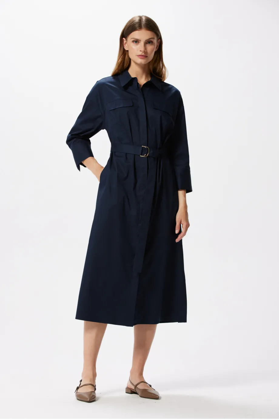Rochia-cămașă, concepută inițial ca piesă pentru ținute office, poate fi și baza unor stilizări cu totul diferite. Acest model demonstrează că acest tip de articol este o modalitate excelentă de a adăuga rafinament ținutelor femeilor care nu își petrec ziua doar la birou. Îți place eleganța care nu limitează mișcarea? Obișnuiești să ieși la plimbare după muncă? Stilul urban te reprezintă? Atunci această rochie-cămașă din bumbac Patrizia Aryton ar trebui să își găsească locul în garderoba ta.
