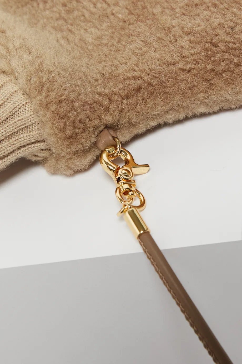 Mănuși camel din lână teddy bear