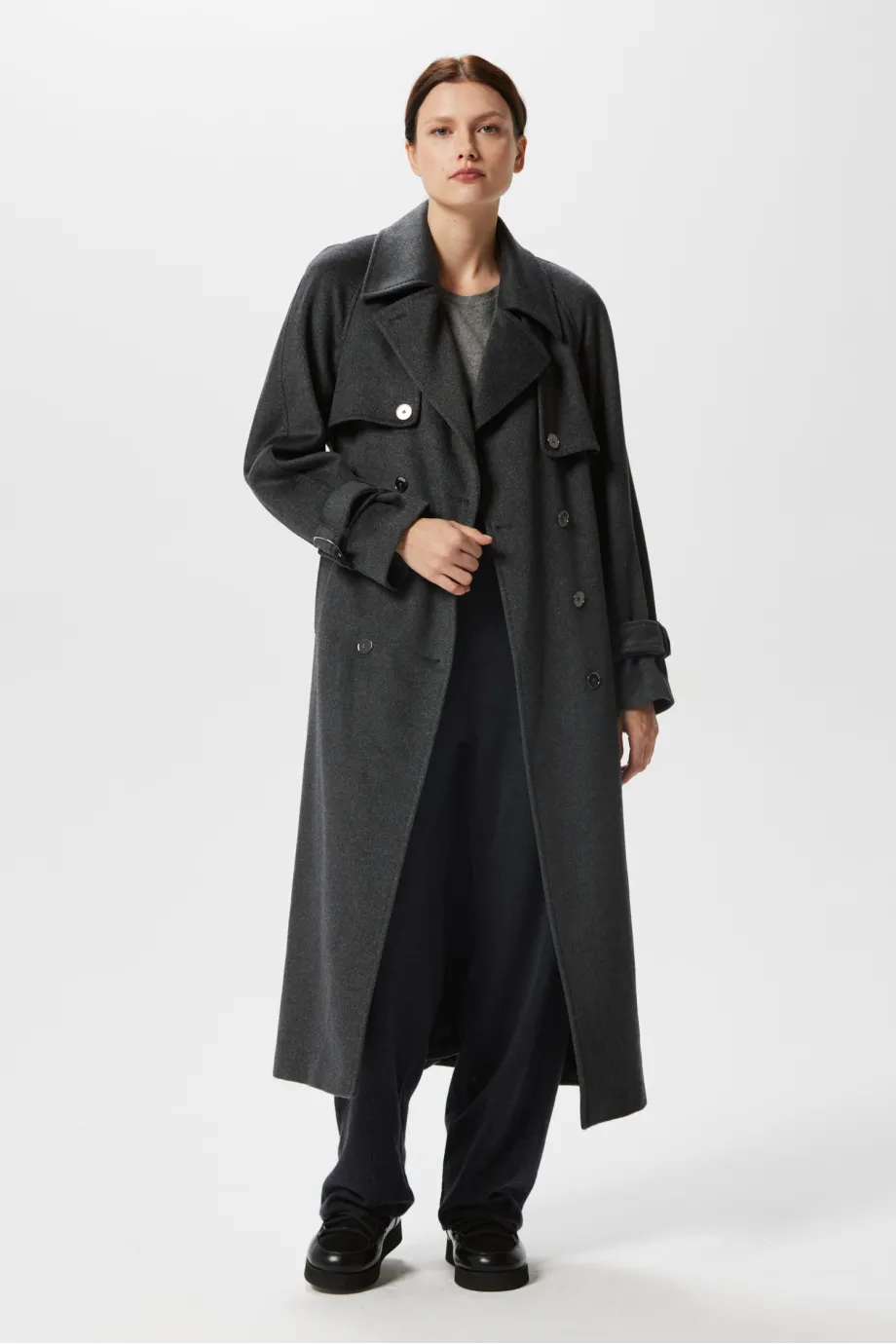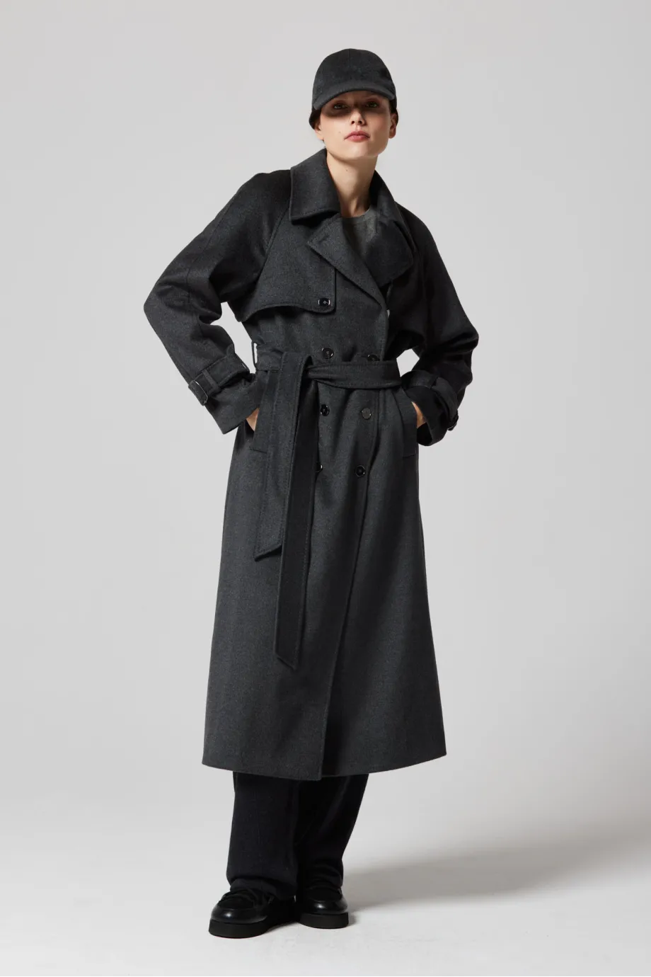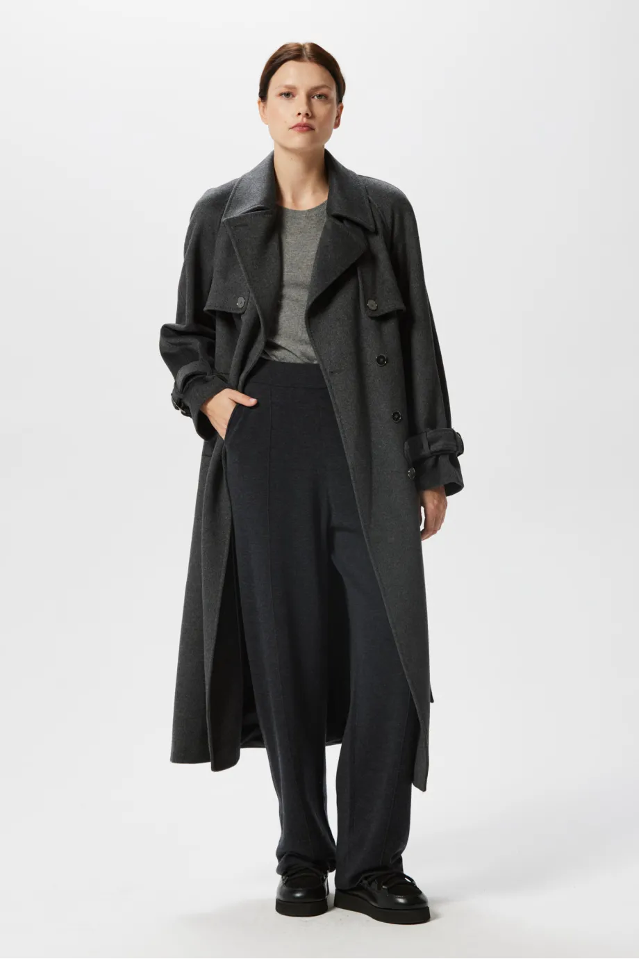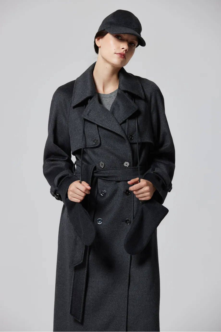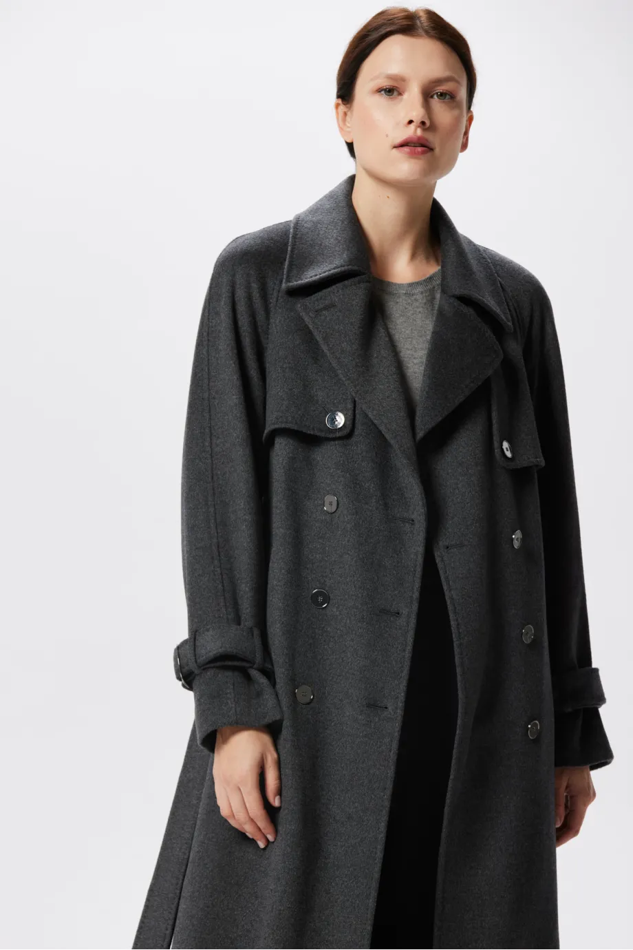 Trenci midi din lână cu mătase și cașmir, gri