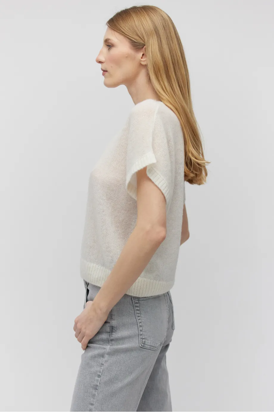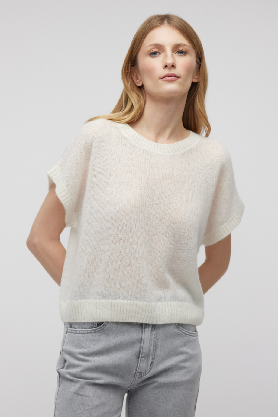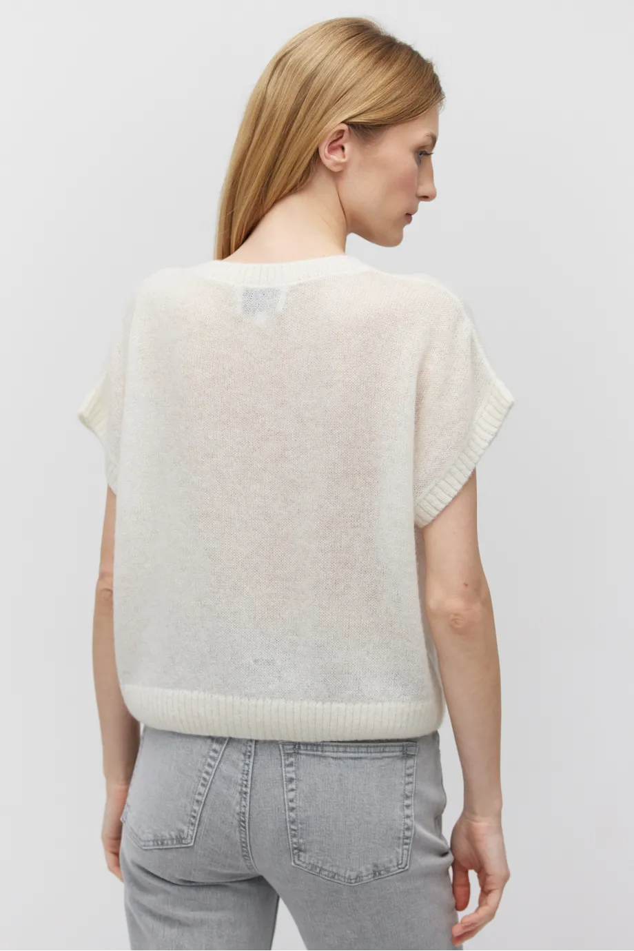 Bluză cu mânecă scurtă și decolteu rotund, din lână