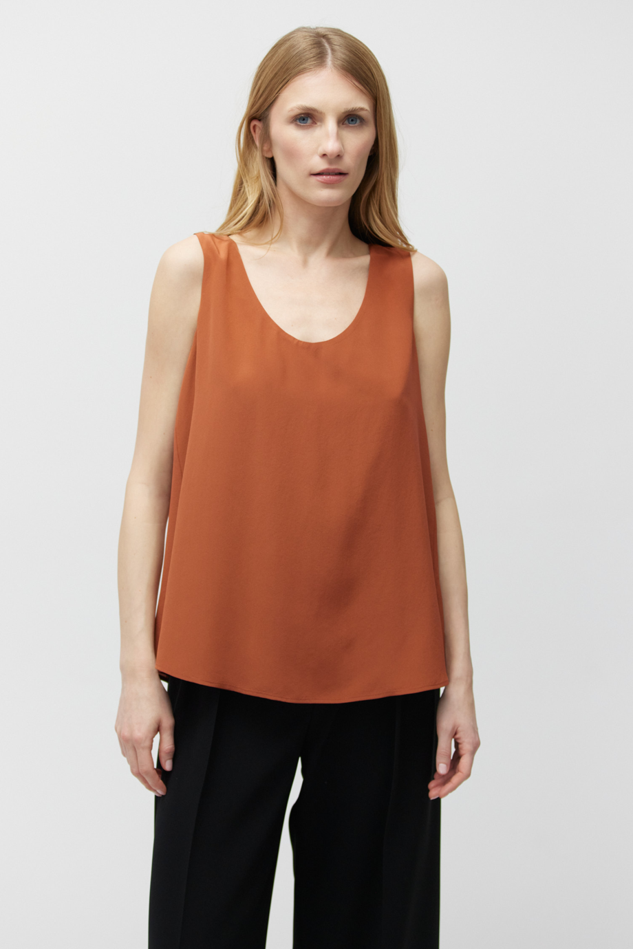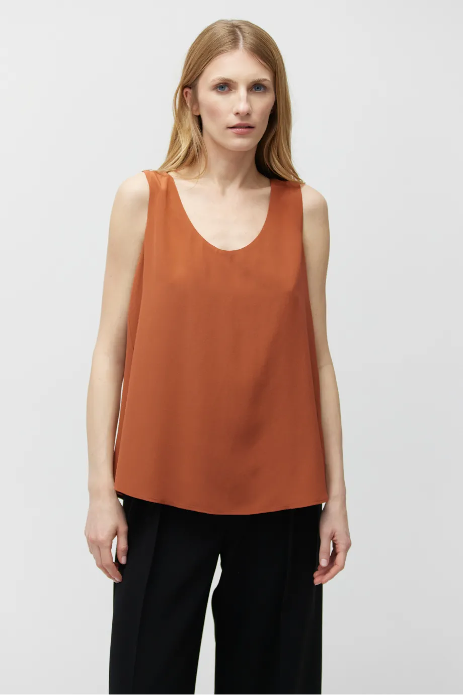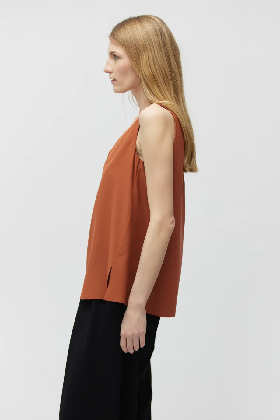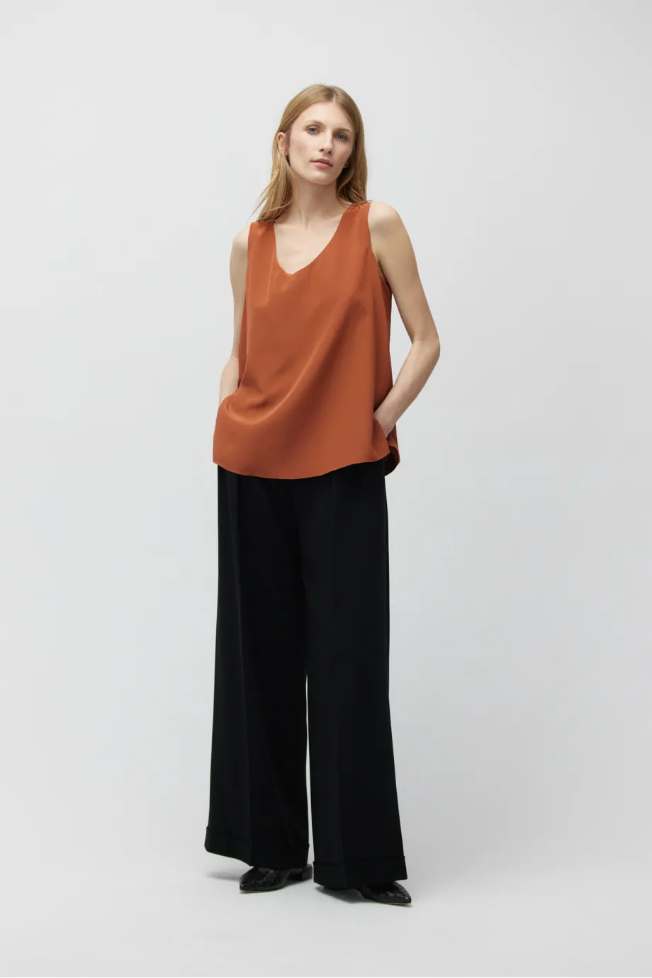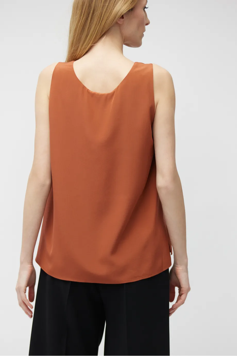Bluză roșu cărămiziu din mătase, cu bretele late