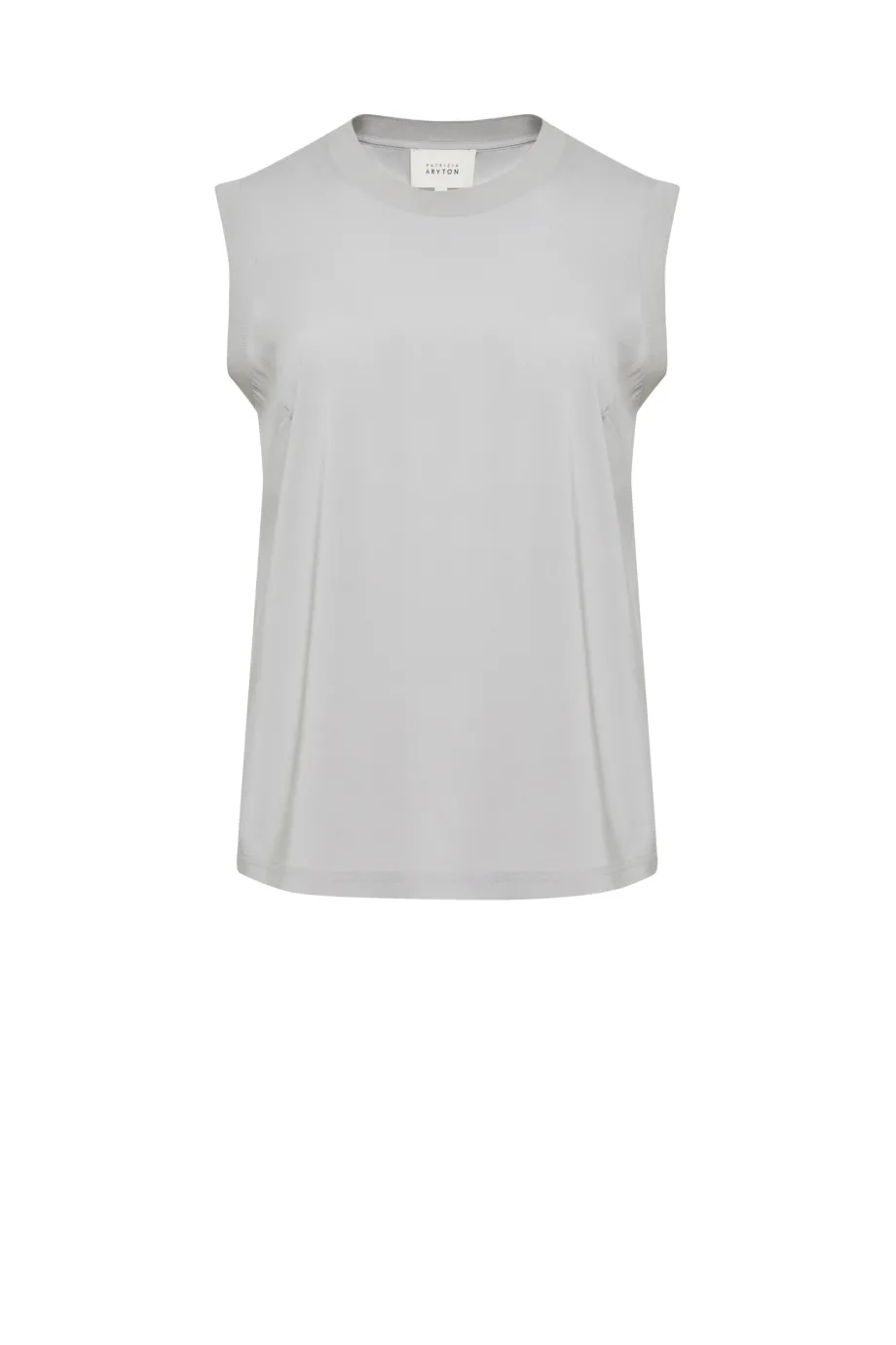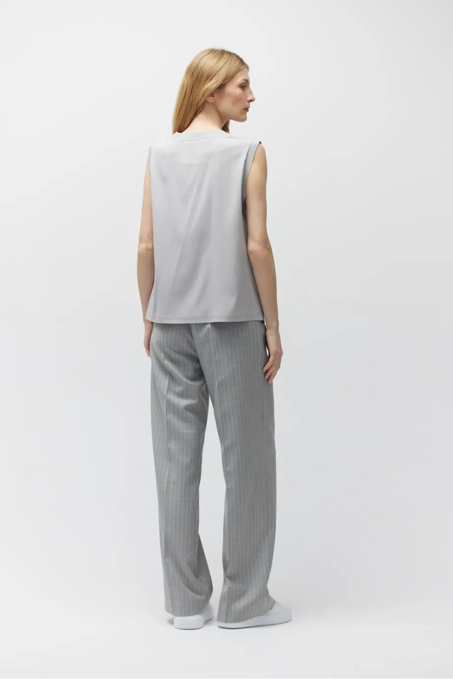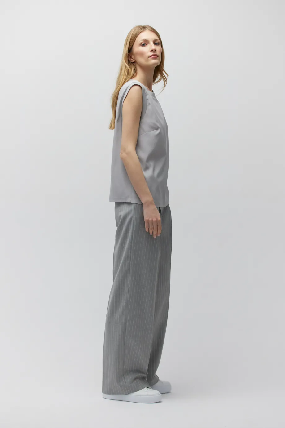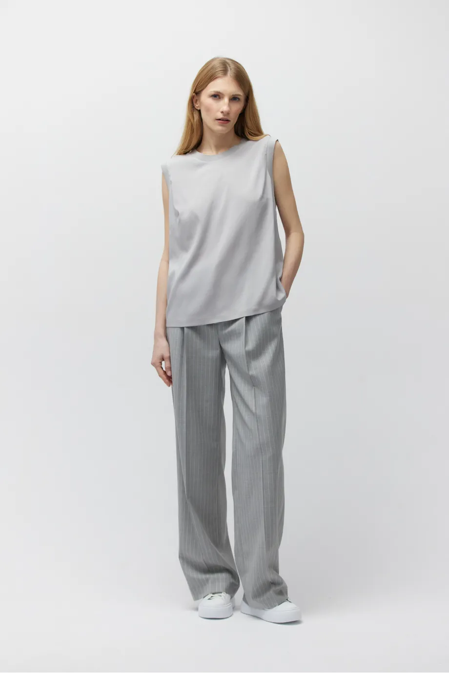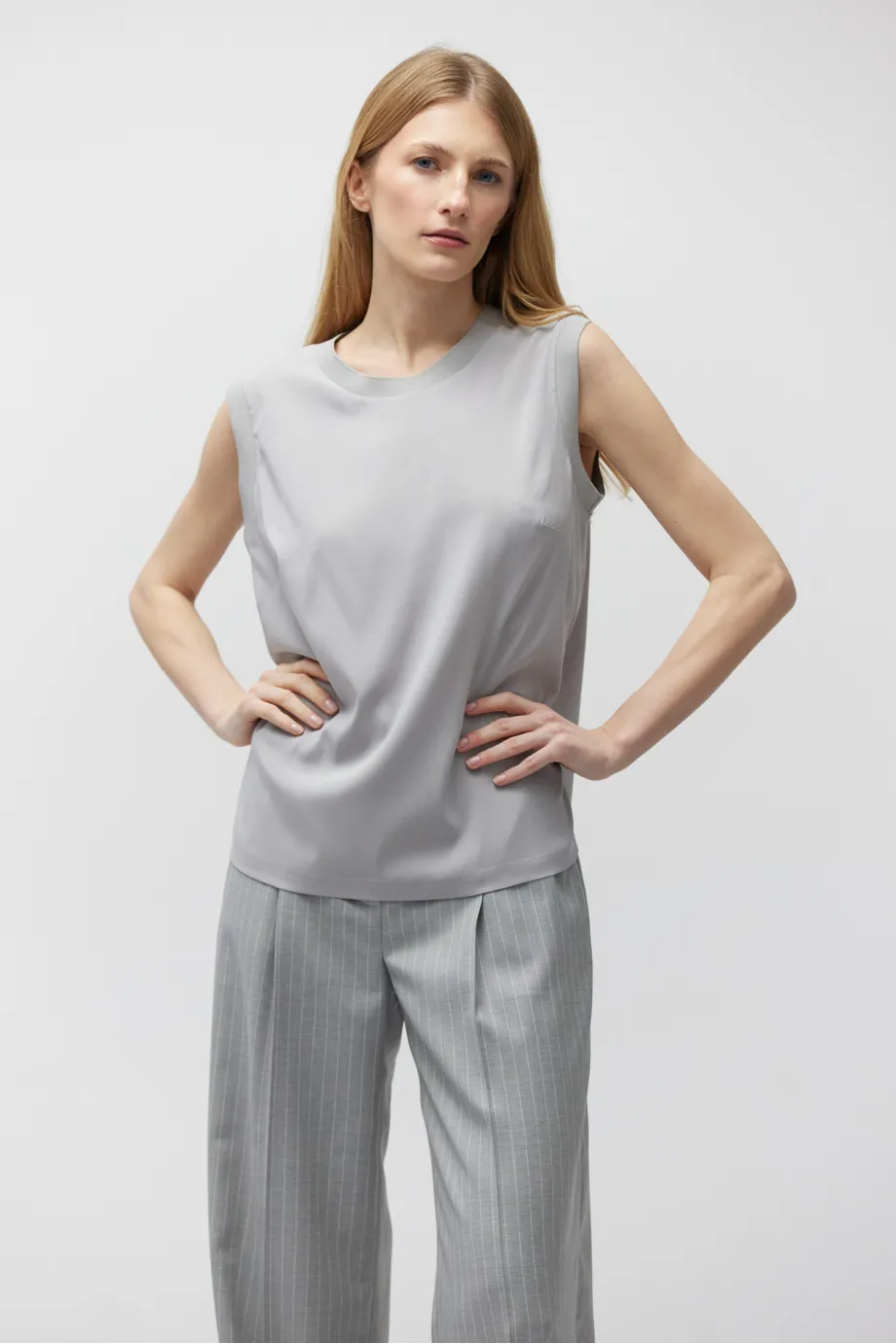 Bretele largi, decolteu rotund, formă dreaptă și lejeră.