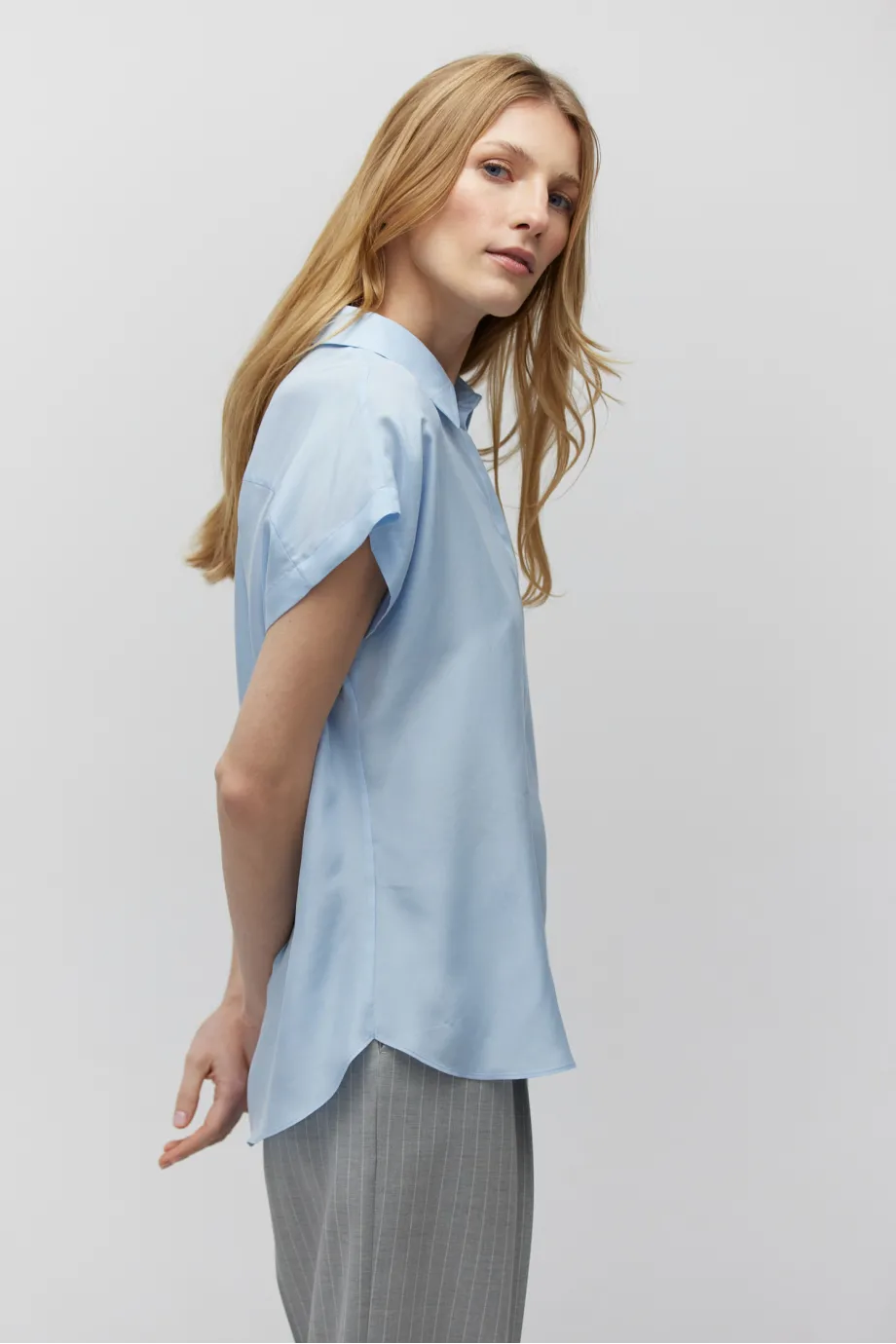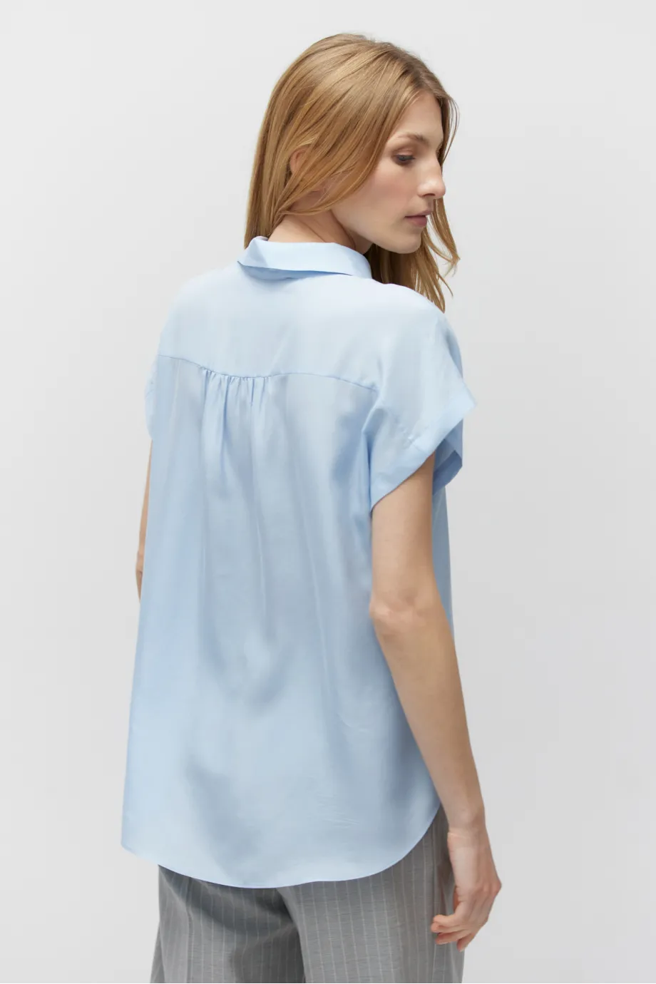Bluză tip cămașă din mătase, cu mânecă scurtă